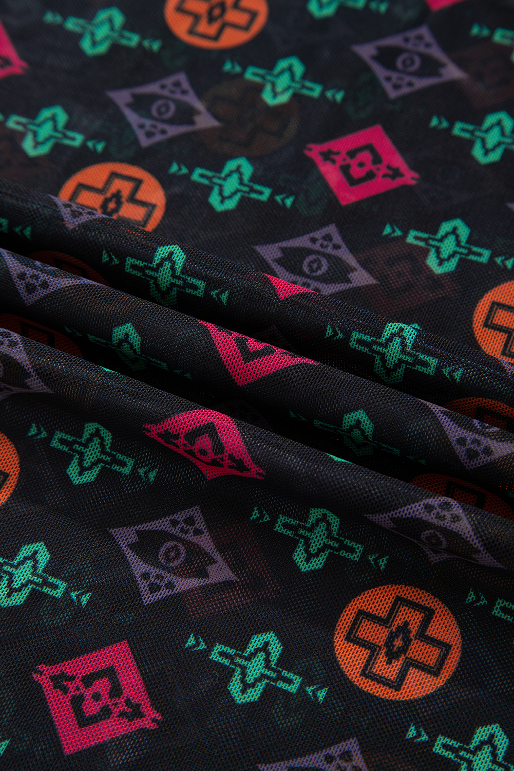 1. **Stylish Western Print**: The Black Western Aztec Printed Long Sleeve Mesh Top features an eye-catching Western print design that embodies a unique Southern Belle style, perfect for making a fashion statement.