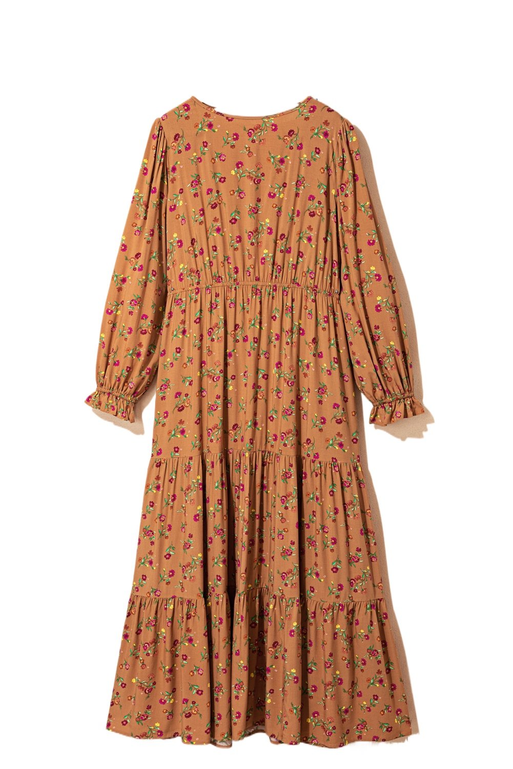 1. **Elegant Floral Design**: The Brown Plus Size Floral Split V Neck Ruffled Sleeve Tiered Maxi Dress features a stunning floral pattern that embodies a southern belle style, perfect for adding a touch of romance to your wardrobe.