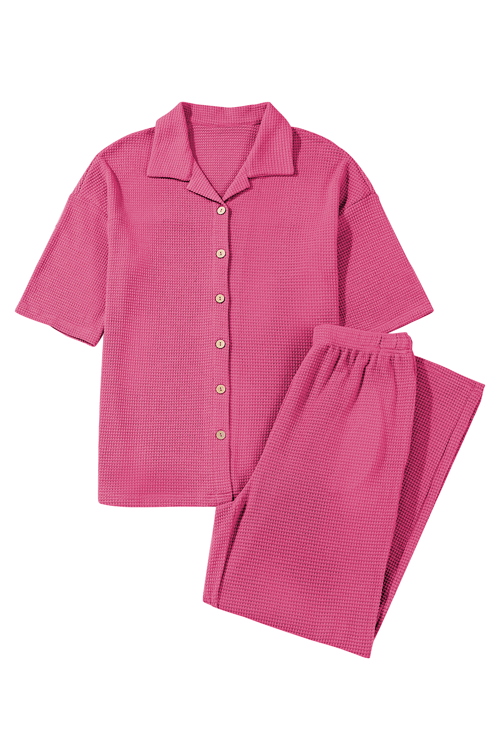 Casual Women's Rose Red Buttoned Shirt & Pants Set – Perfect for Summer OutingsCasual Women’s Rose Red Buttoned Shirt & Pants Set – Perfect for Summer Outings