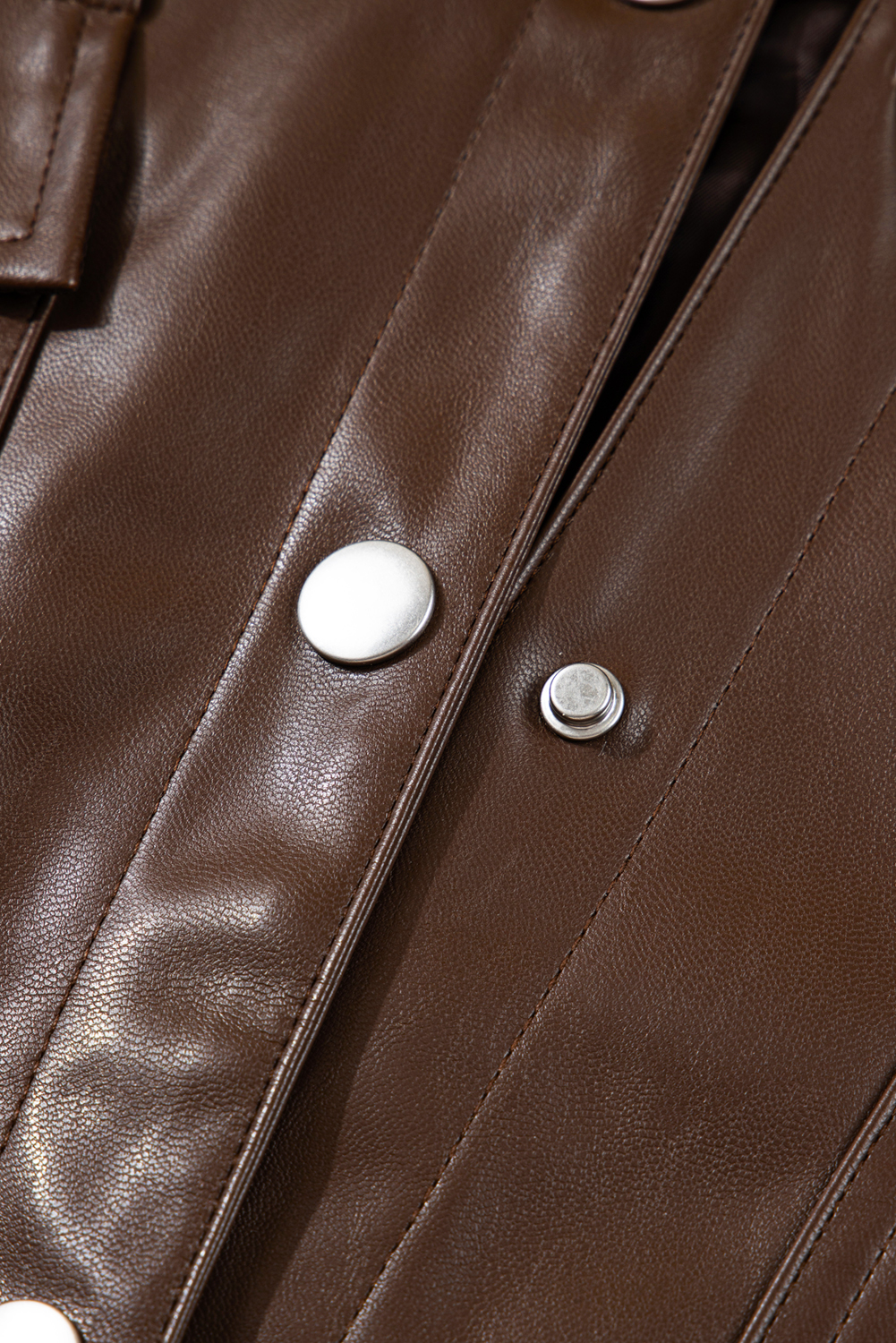 1. **Fashionable Western Style**: The Chicory Coffee Double Flap Pocket Drawstring Hem Leather Jacket is designed with a trendy western flair, making it the perfect addition to your daily wardrobe or vacation ensemble.