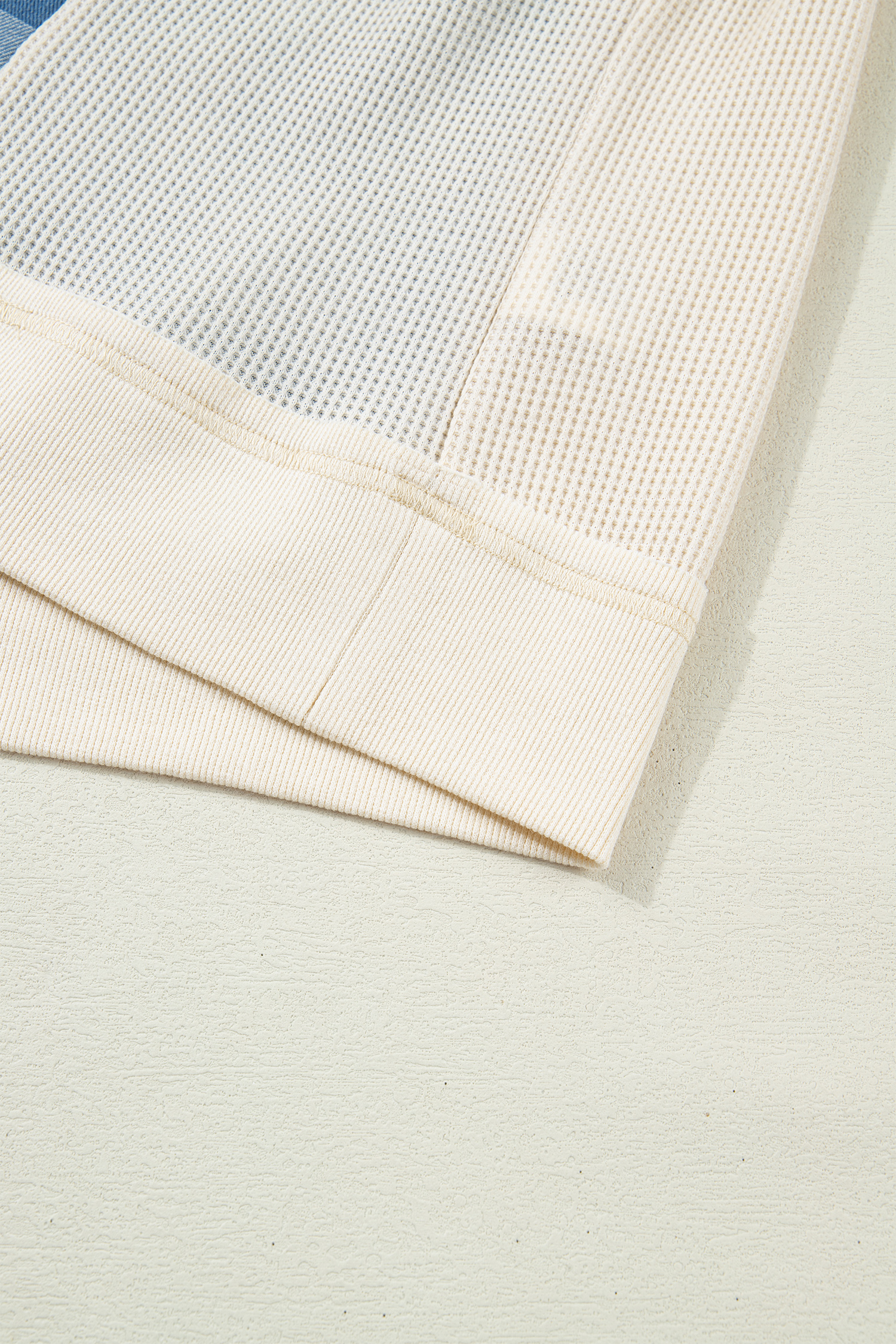 Dusk Blue Checkered Denim Patchwork Top for Women – Casual Short Sleeve Summer Style