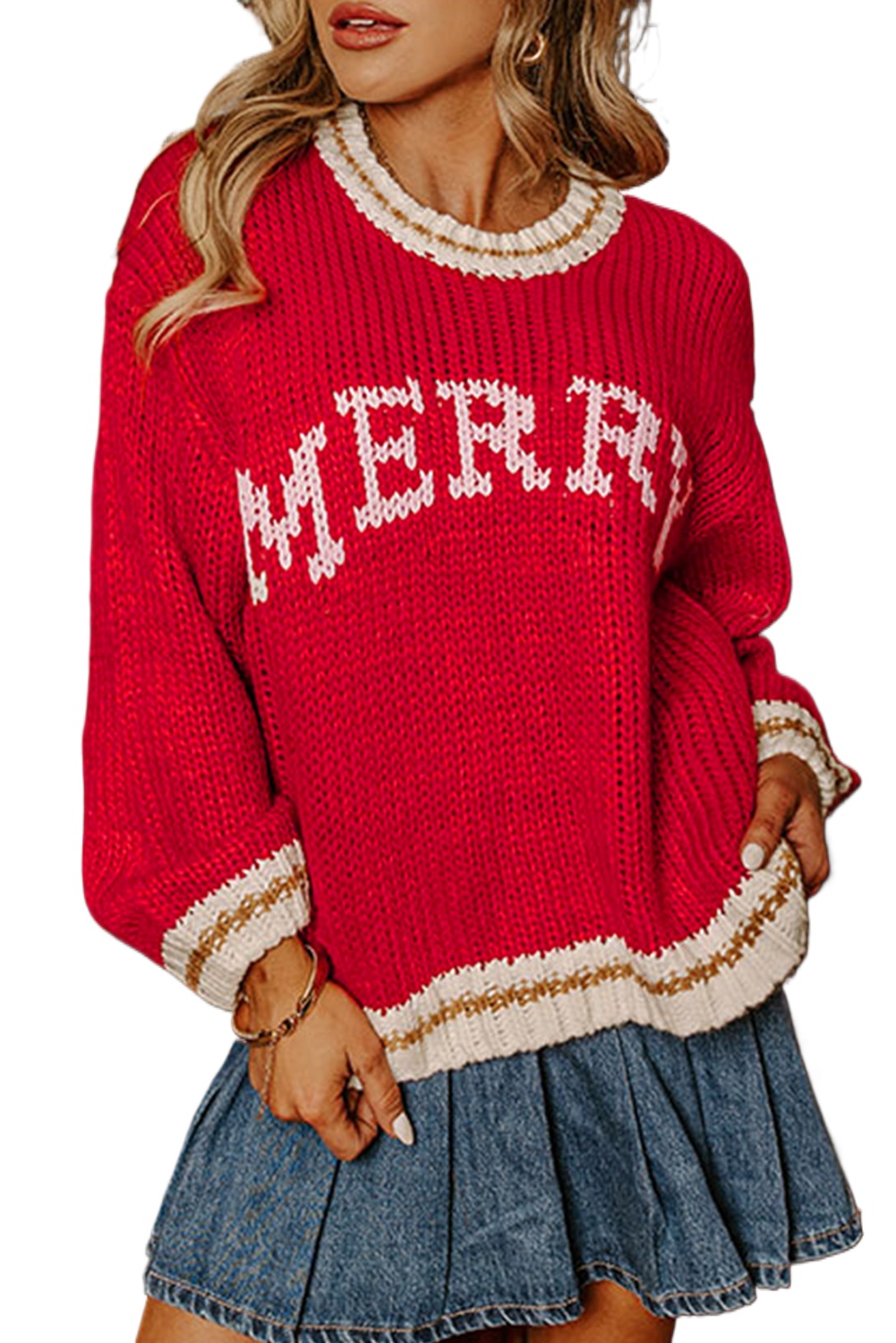 & Free Shipping✓ Festive Design: The vibrant fiery red color and ‘MERRY’ print make this sweater a delightful choice for holiday gatherings and everyday wear.