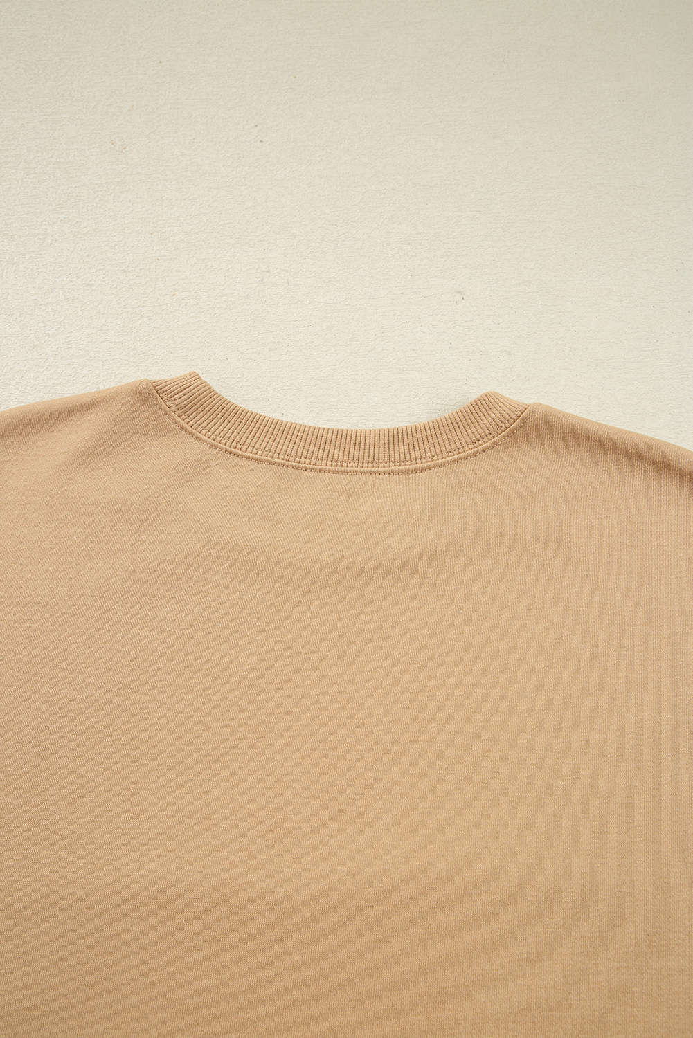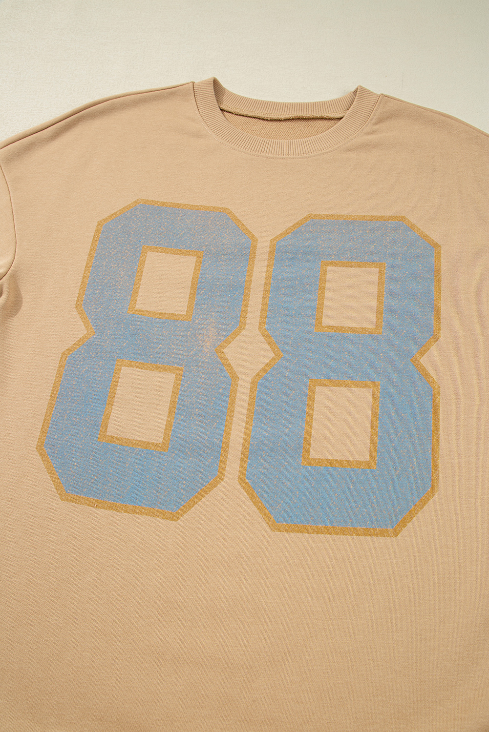 Khaki Oversized Long Sleeve Top with 88 Number Graphic & Drawstring Hemline