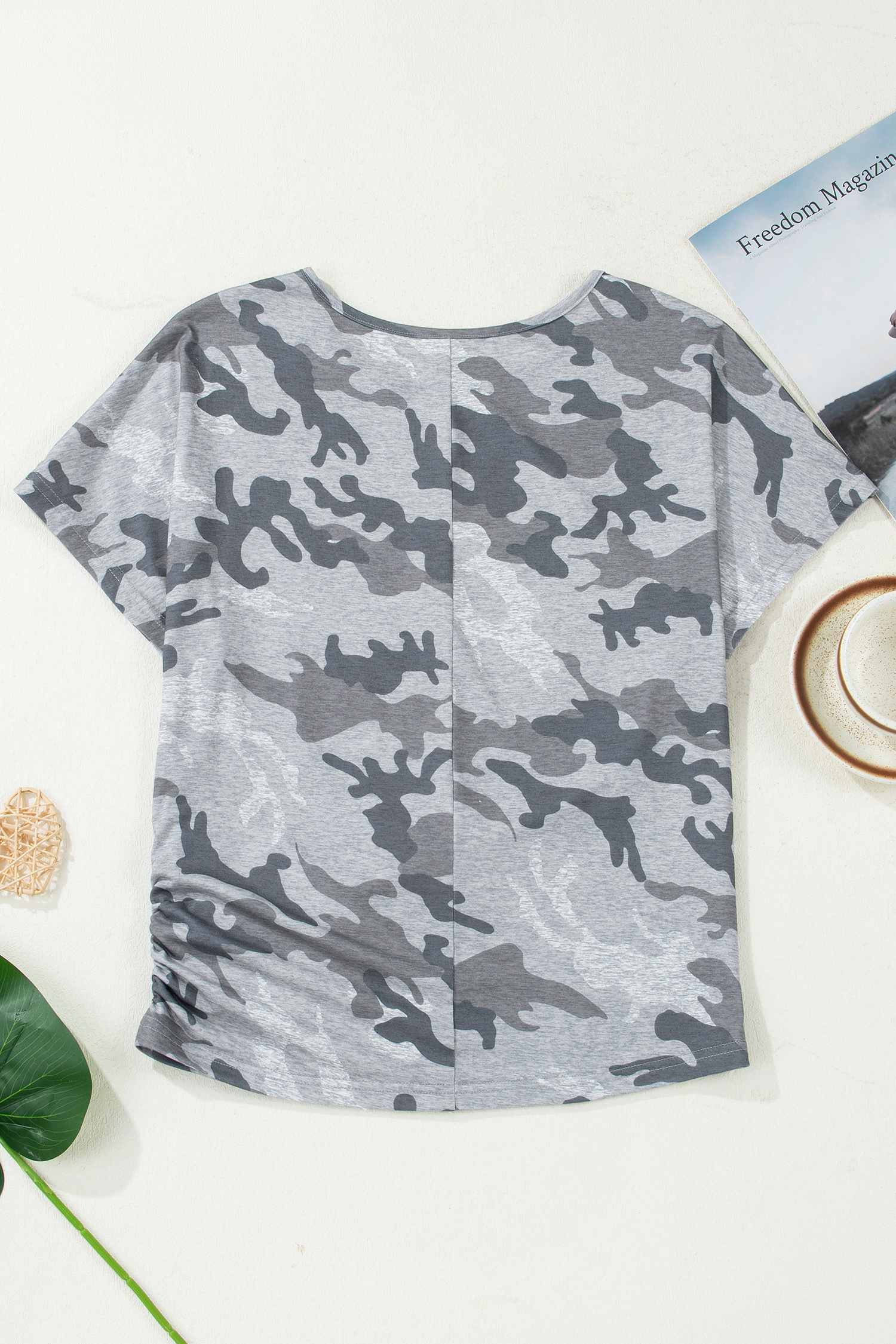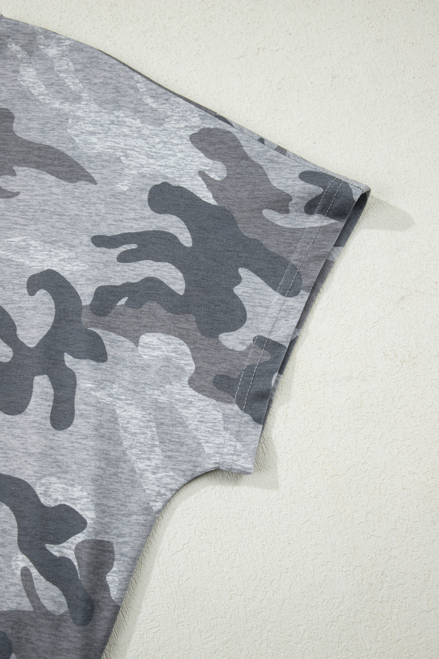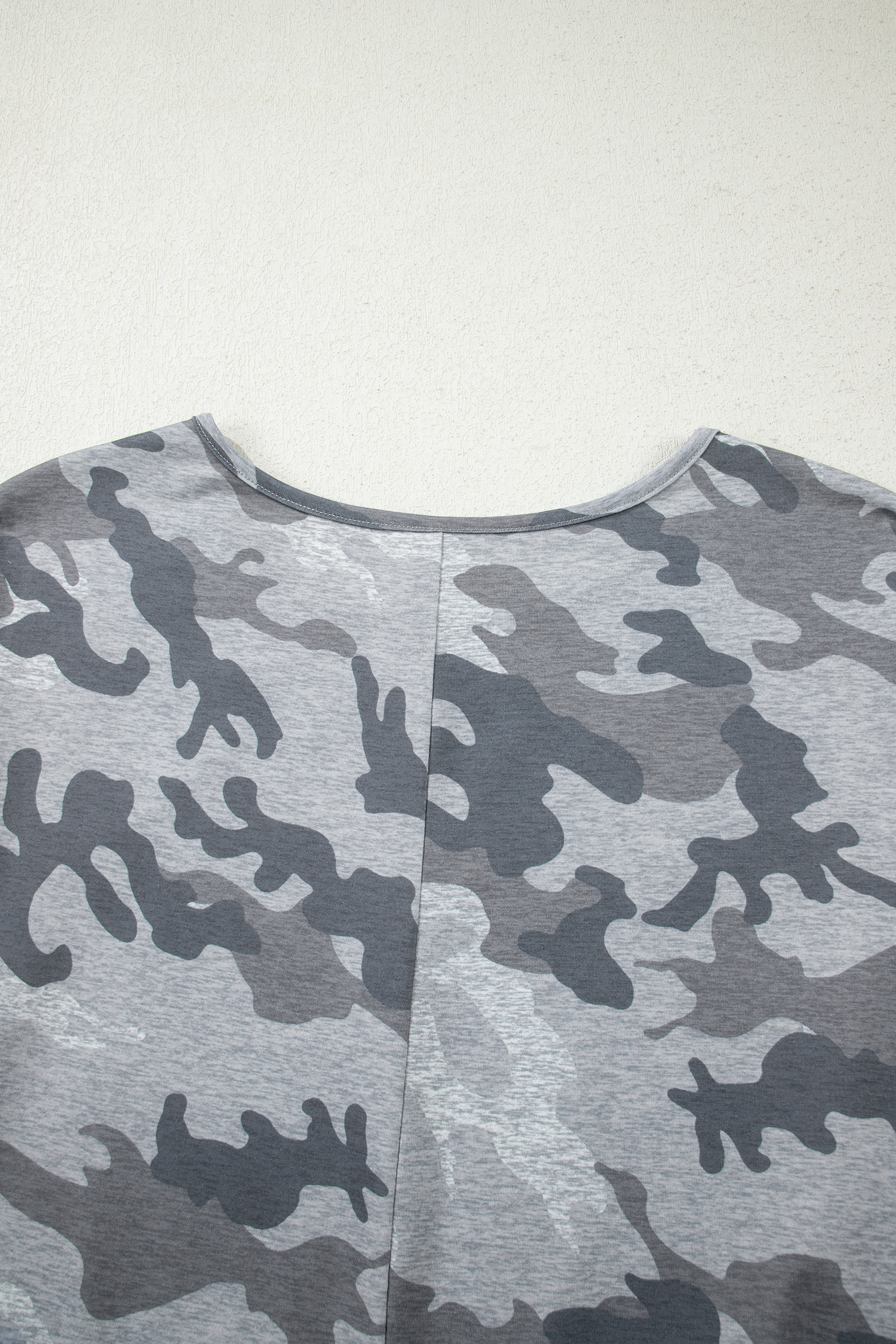 ✓ Stylish Camouflage Print: This casual gray t-shirt features a modern camo pattern, perfect for trendy men looking to enhance their wardrobe.
