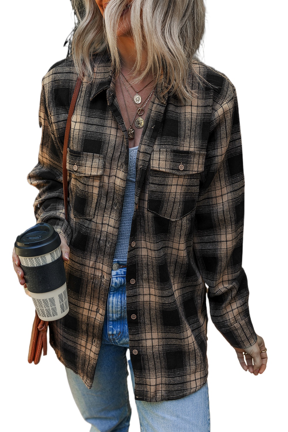 Multicolour Retro Plaid Double Flap Pocket Brushed Shacket for Women