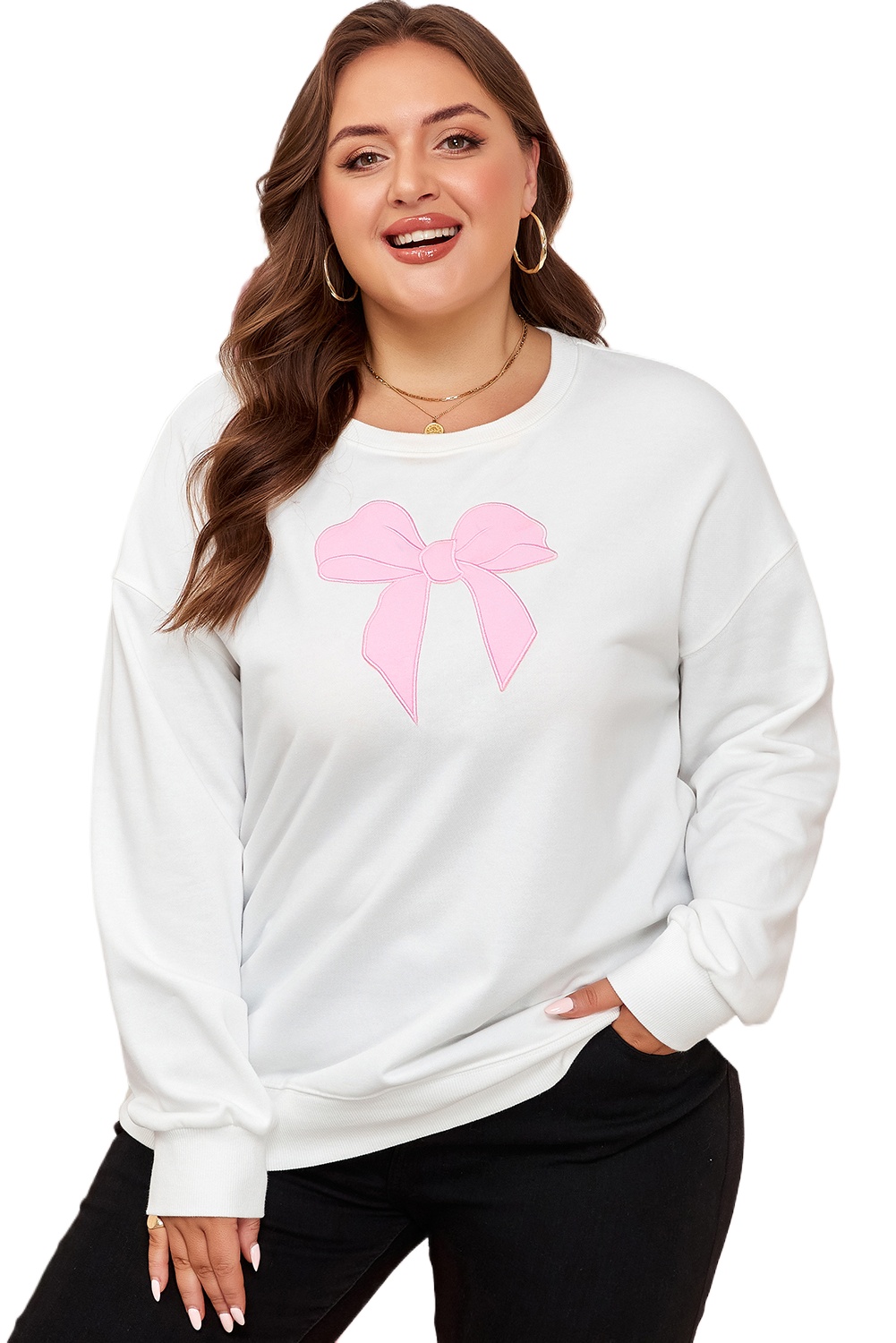 1. Trendy Big Bow Accent: The Beige Big Bow Accent Plus Size Drop Shoulder Sweatshirt features a standout big bow detail, adding a touch of whimsy and elegance to your casual look.