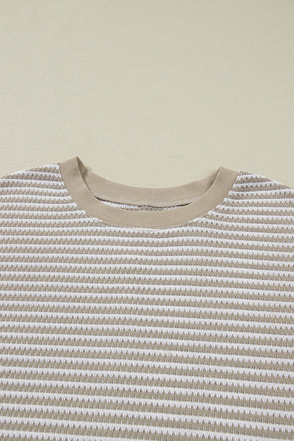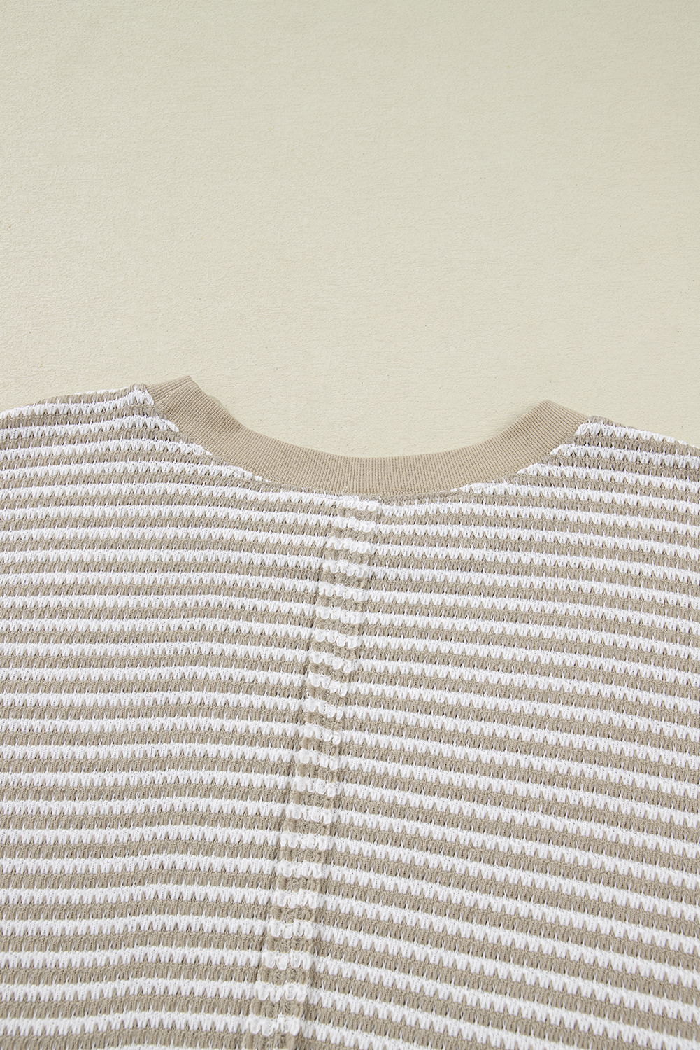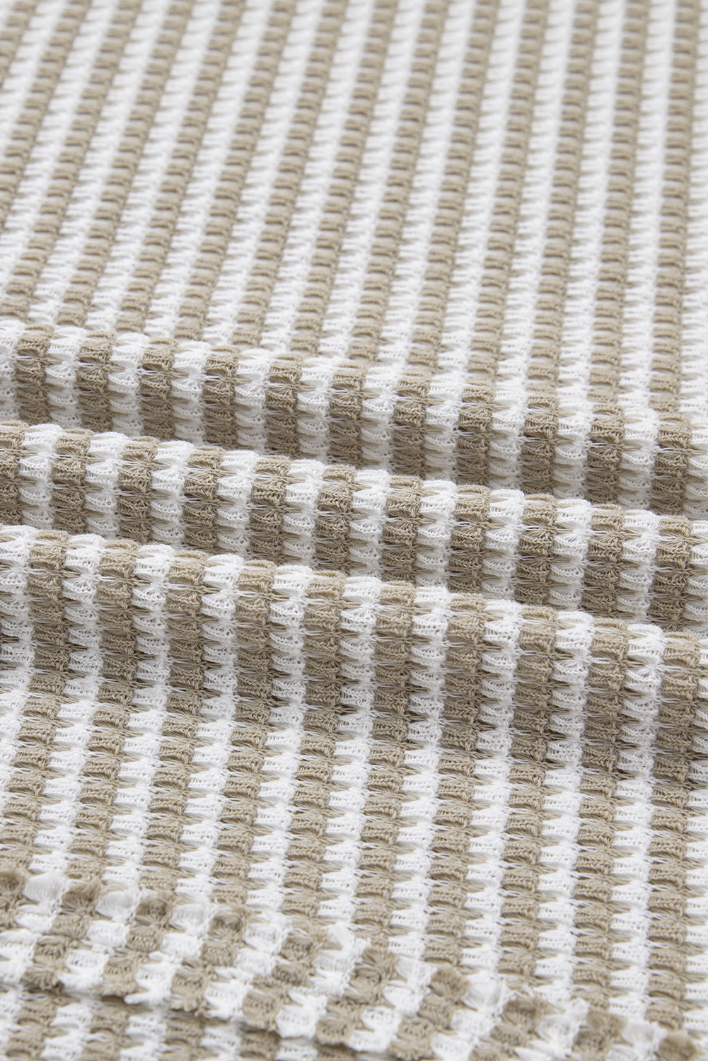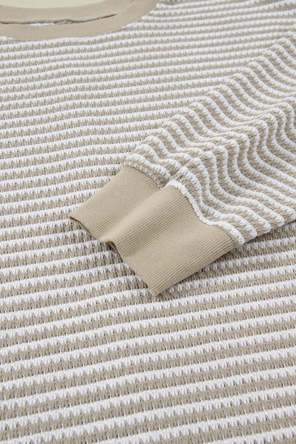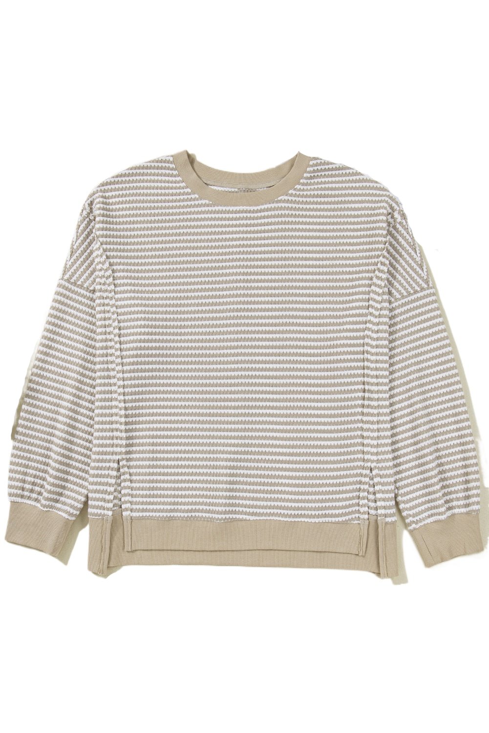 Plus Size Brown Stripe Long Sleeve Top – Breathable Knit with Ribbed Trim