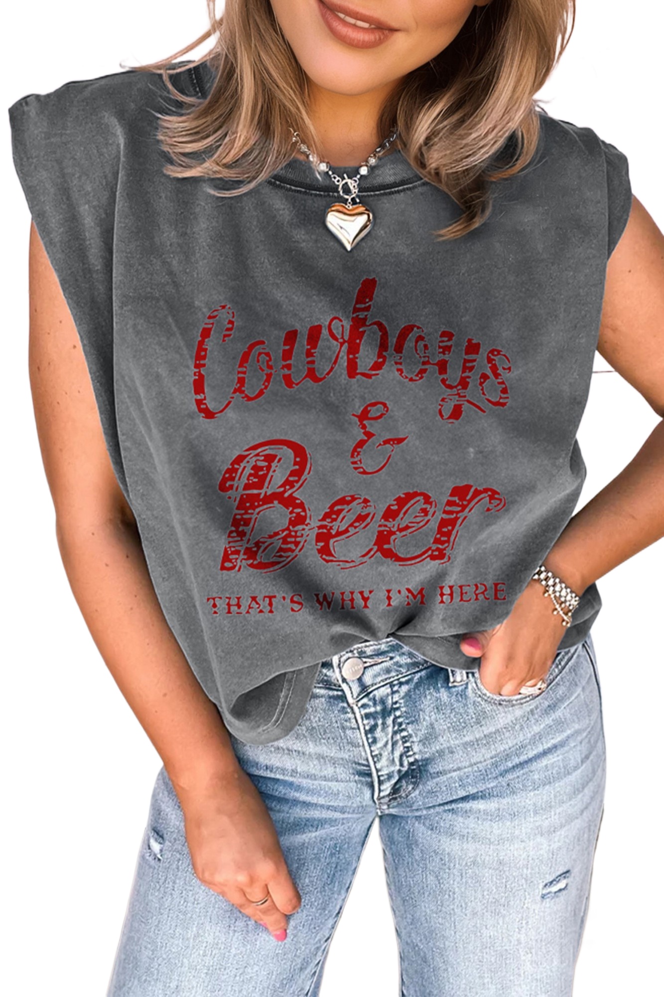 Sleet Cowboy & Beer Graphic Mineral Wash Tank Top – Western Style for Casual Summer Days