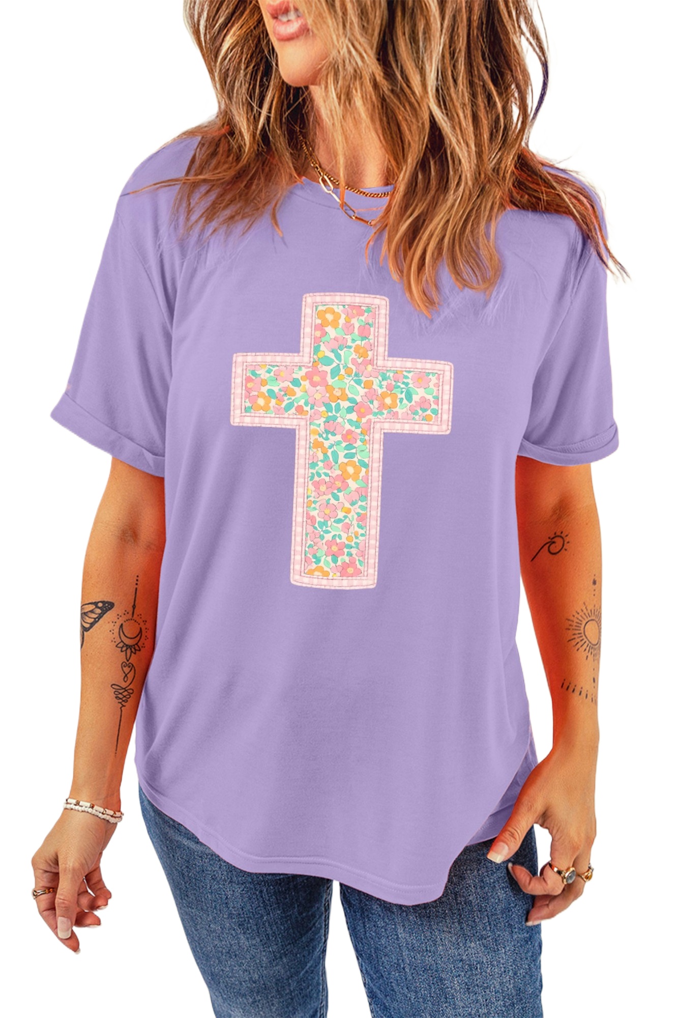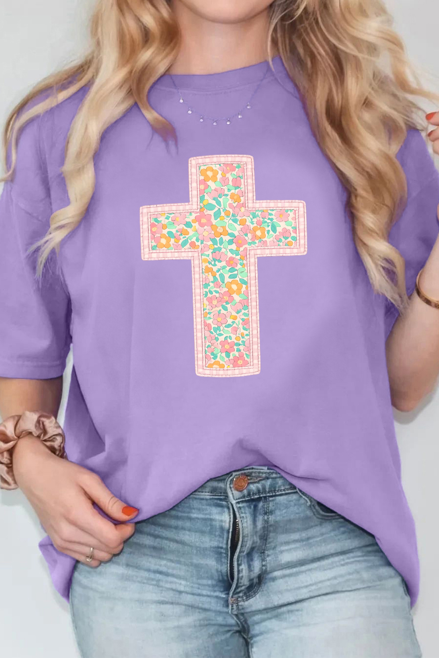 Wisteria Floral Cross Tee for Women – Casual Christian Style for Easter Celebrations