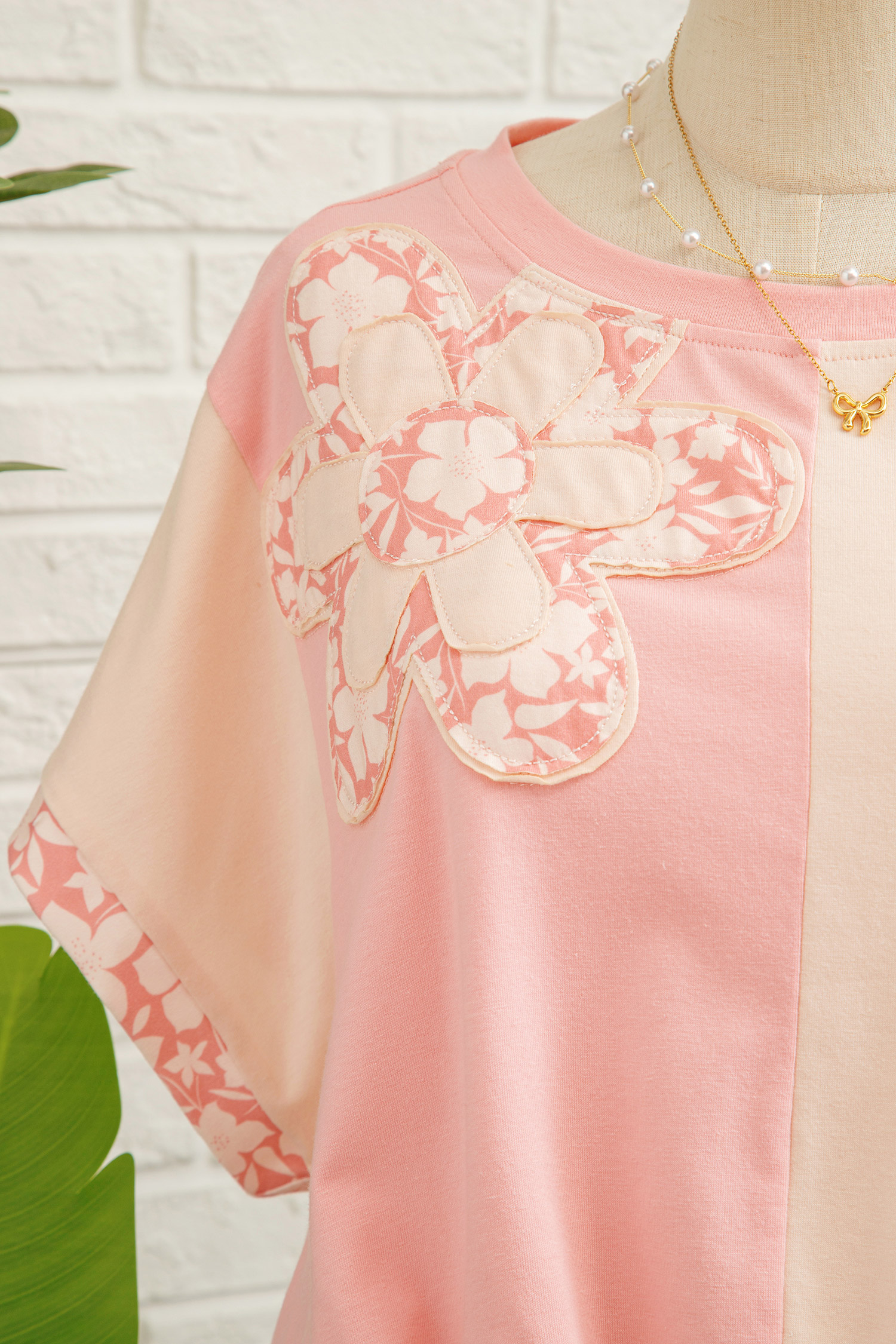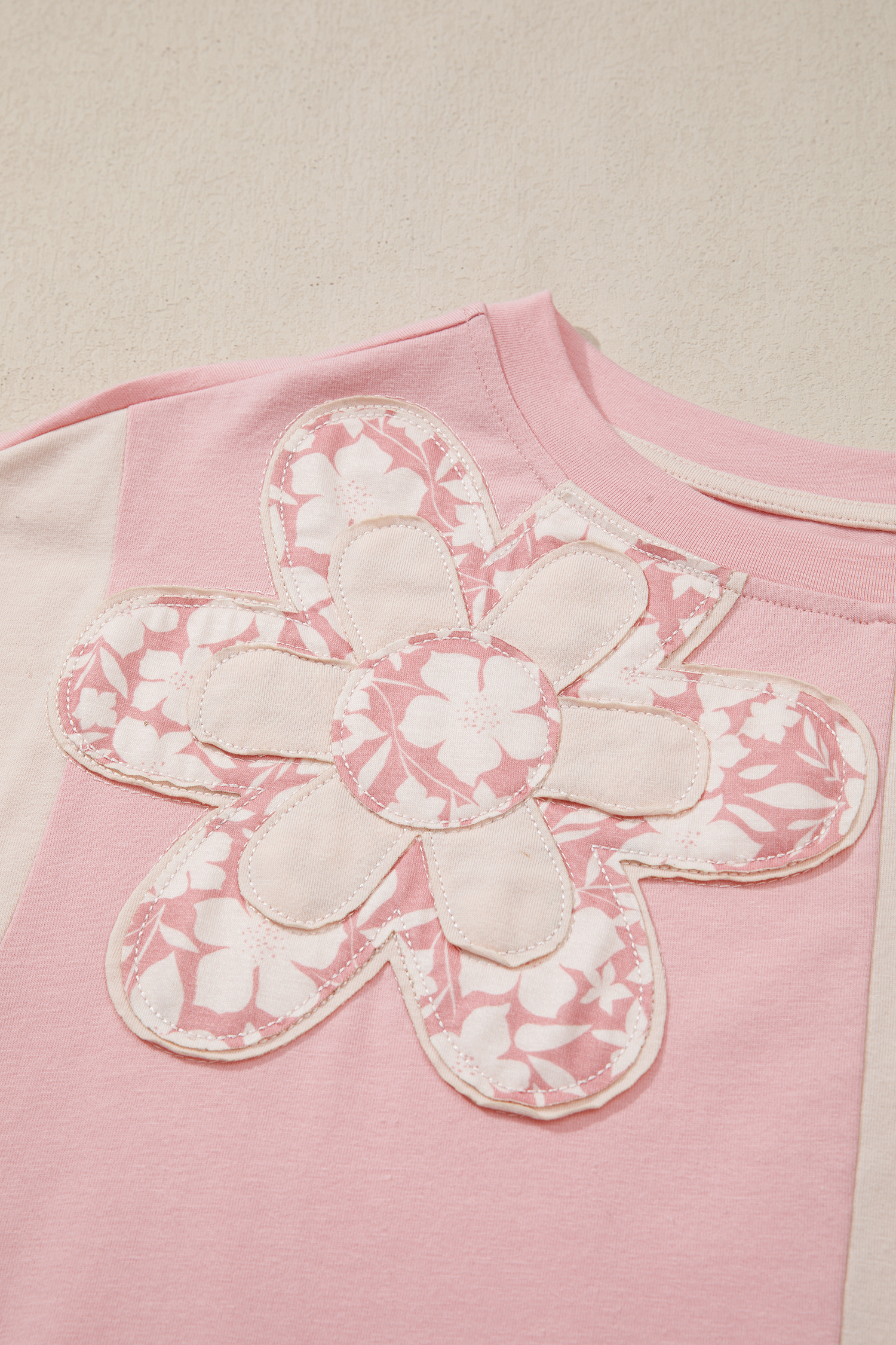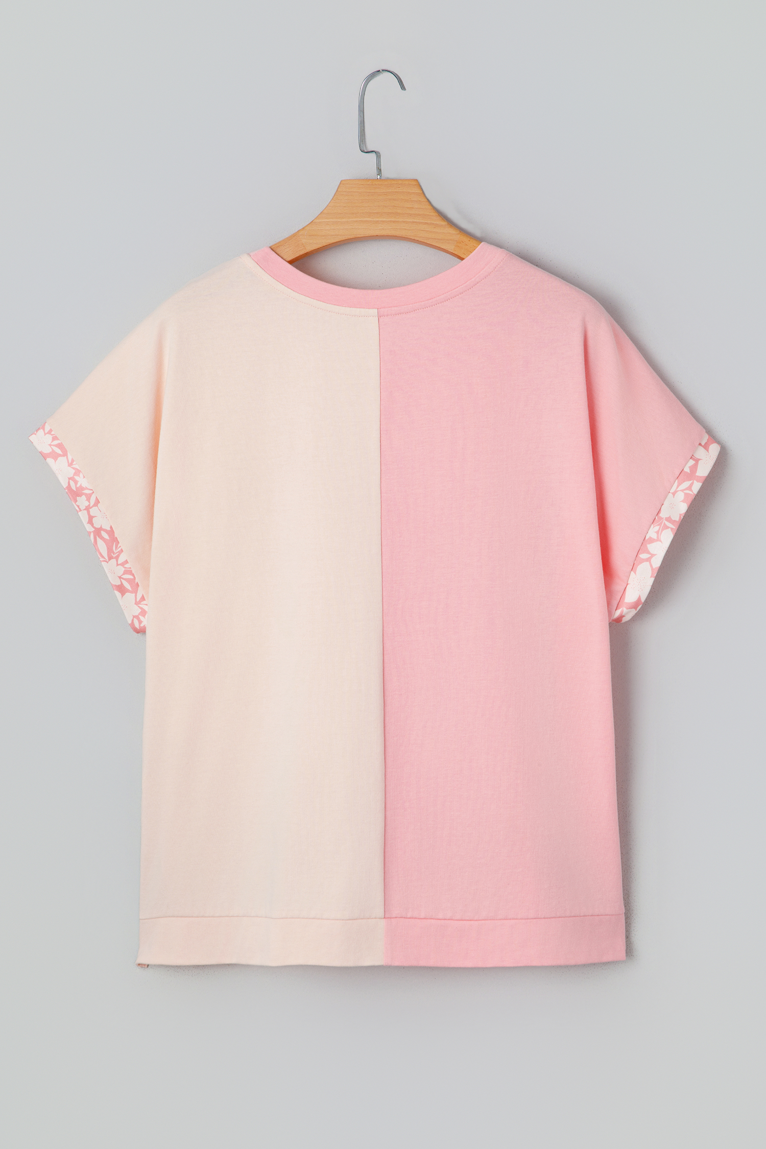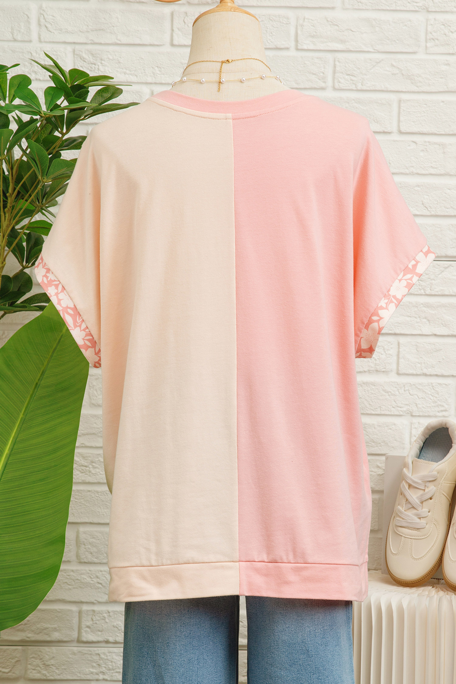 Women’s Apricot Color Block T-Shirt – Floral Patchwork Loose Fit Top for Casual Daily Wear