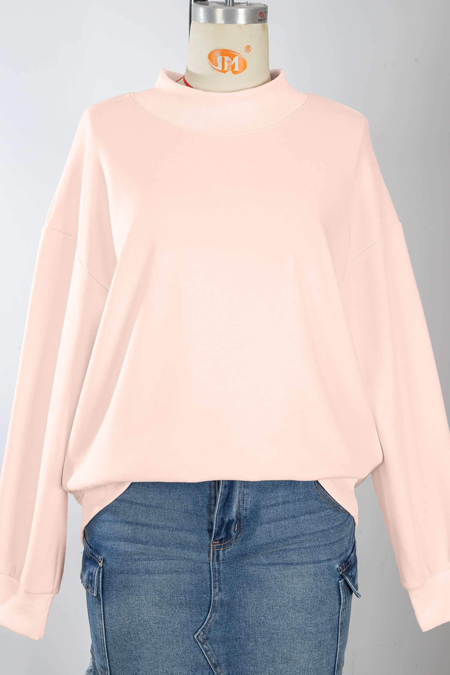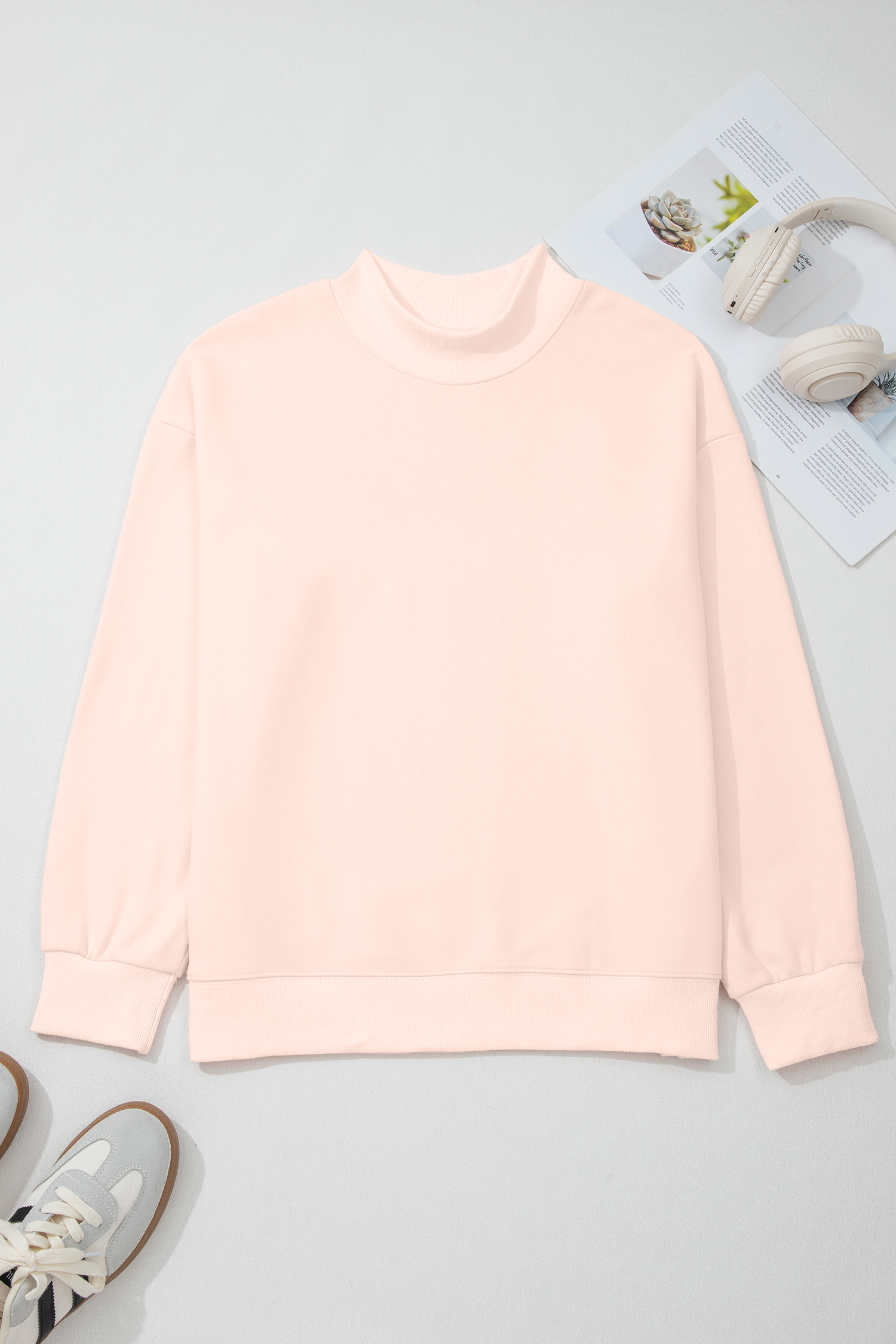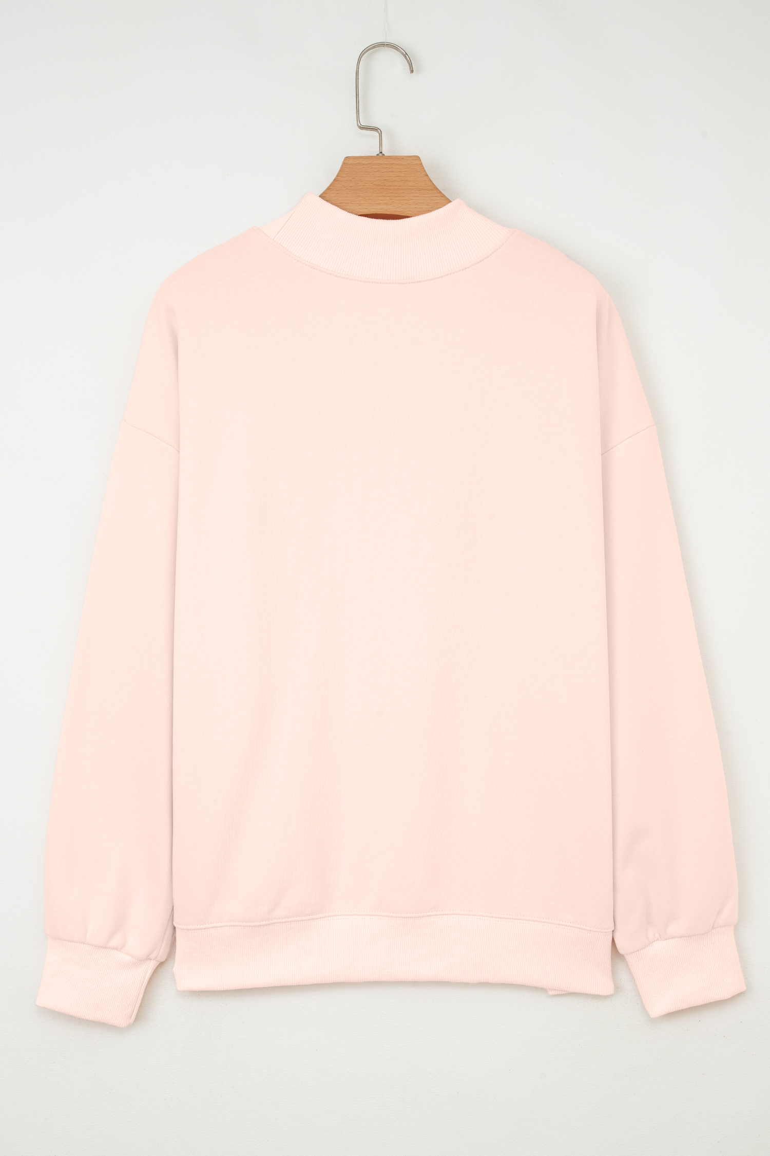 Women’s Apricot Pink Oversized Mock Neck Sweatshirt – Casual Spring Style for Daily Wear