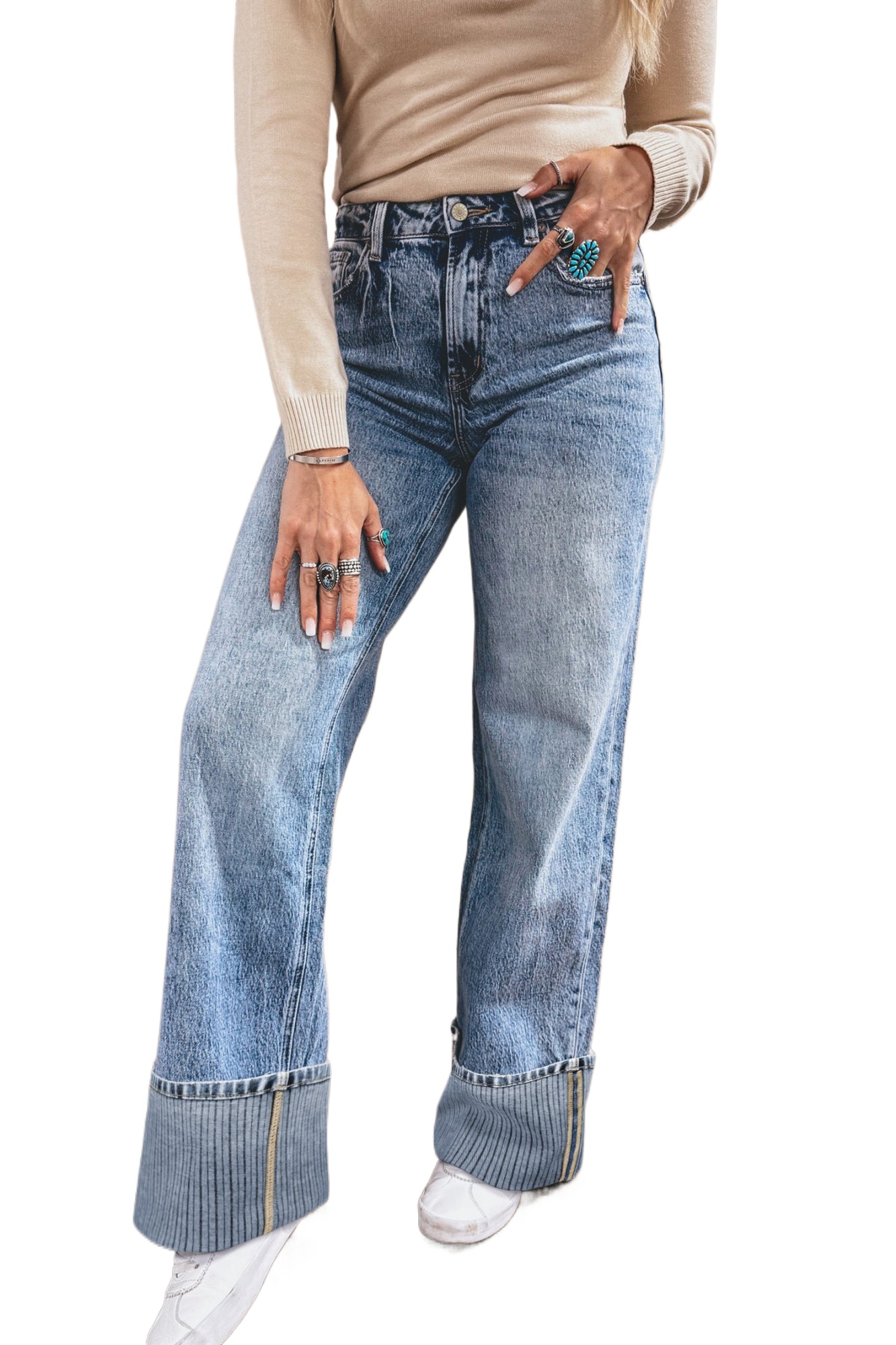 ✓ Trendy Ashleigh Blue Color: Brighten up your wardrobe with these stylish cuffed jeans, perfect for a casual look.