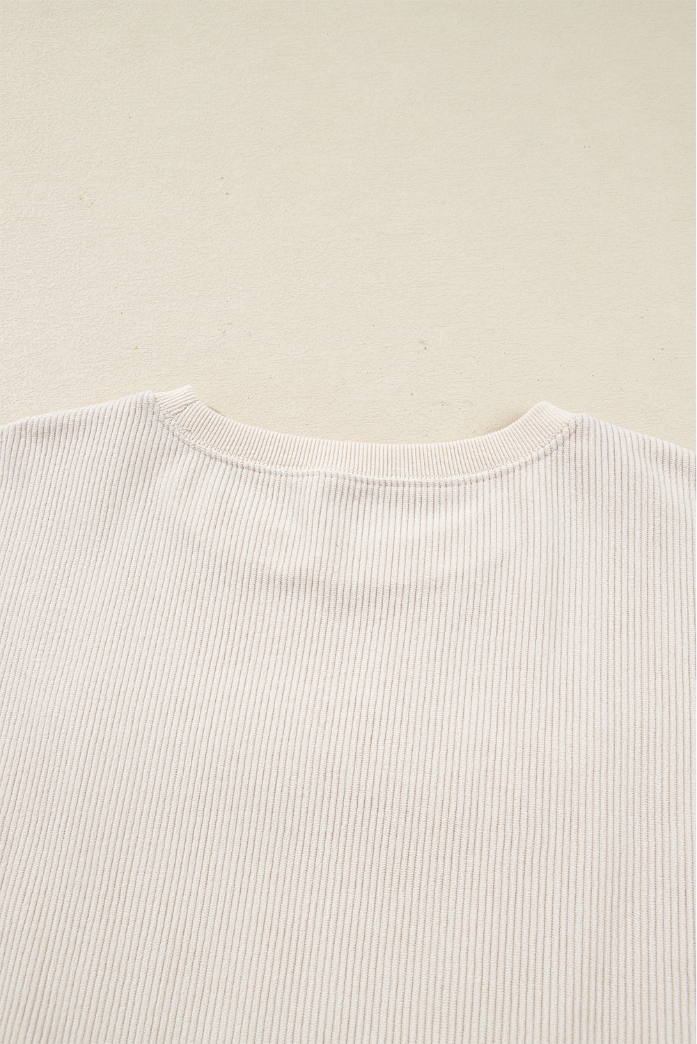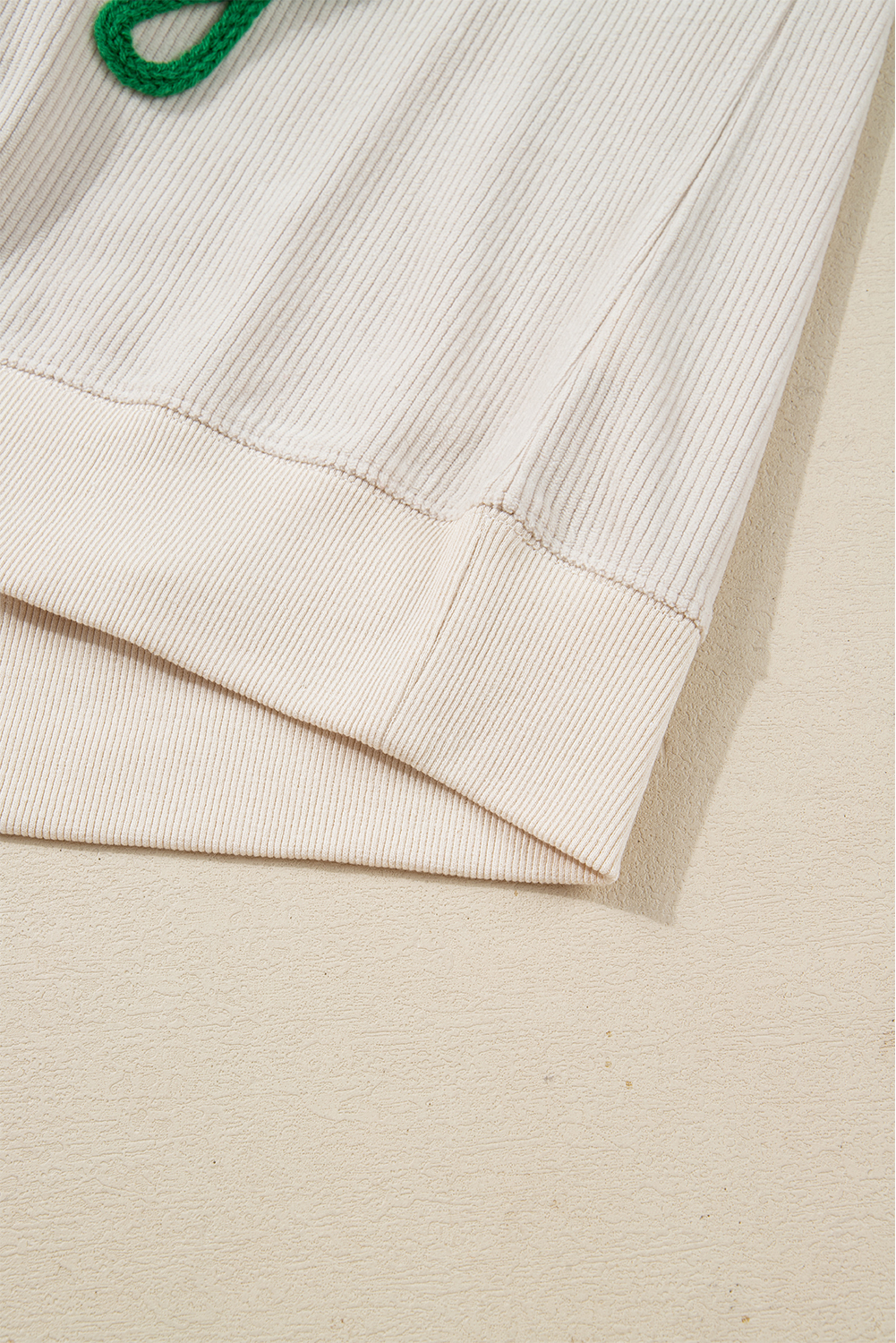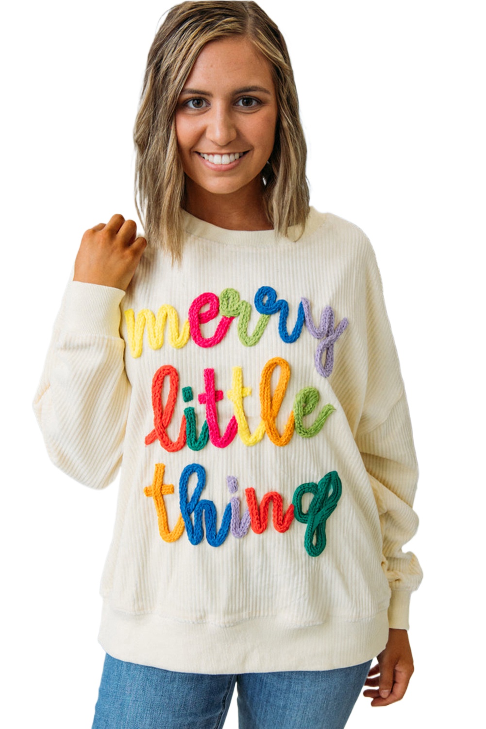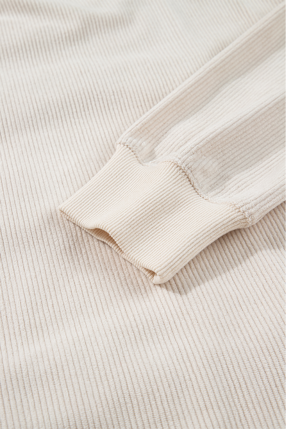 Women’s Beige Corded Letter Graphic Sweatshirt – Casual Chic for Daily Wear