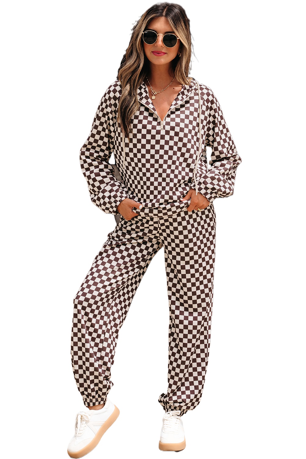 Women’s Black Checkered Athleisure 2-Piece Pants Set – Casual Comfort for Daily Wear