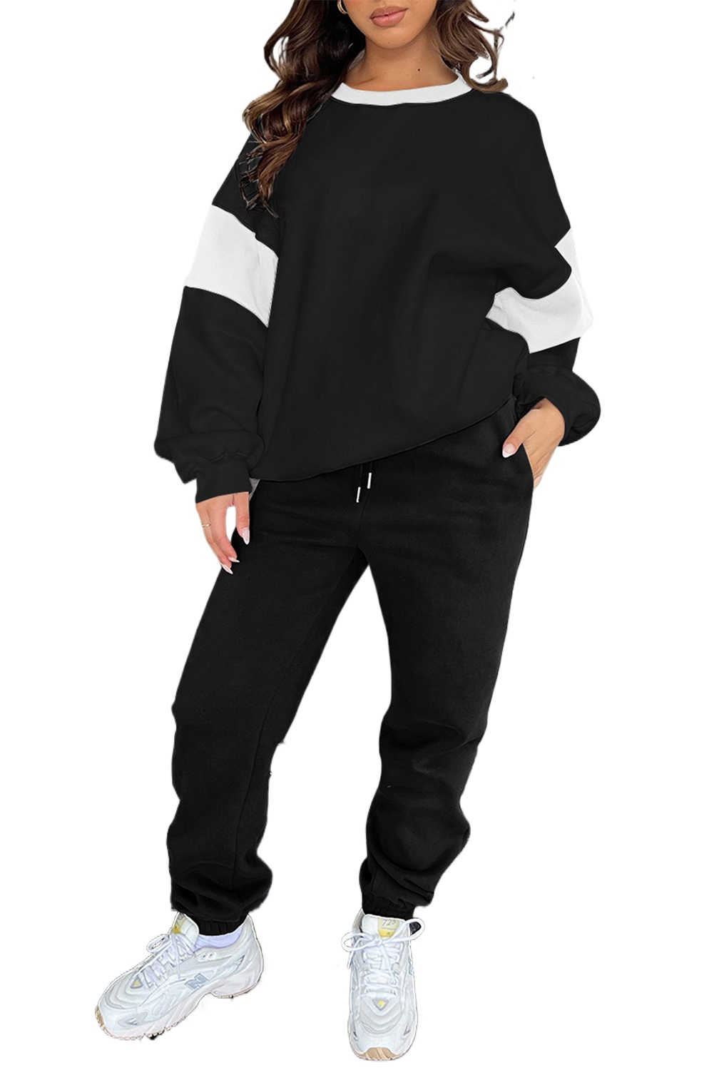 Women’s Black Drop Shoulder Loose Sweatshirt and Joggers Active Set for Fall
