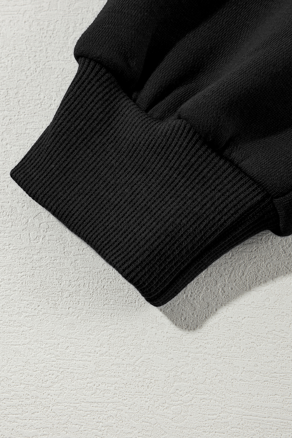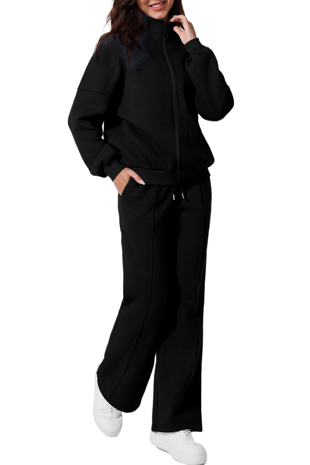 Women’s Black Drop Shoulder Zip Up Jacket and Drawstring Pants Set – Stylish Activewear for Daily Adventures