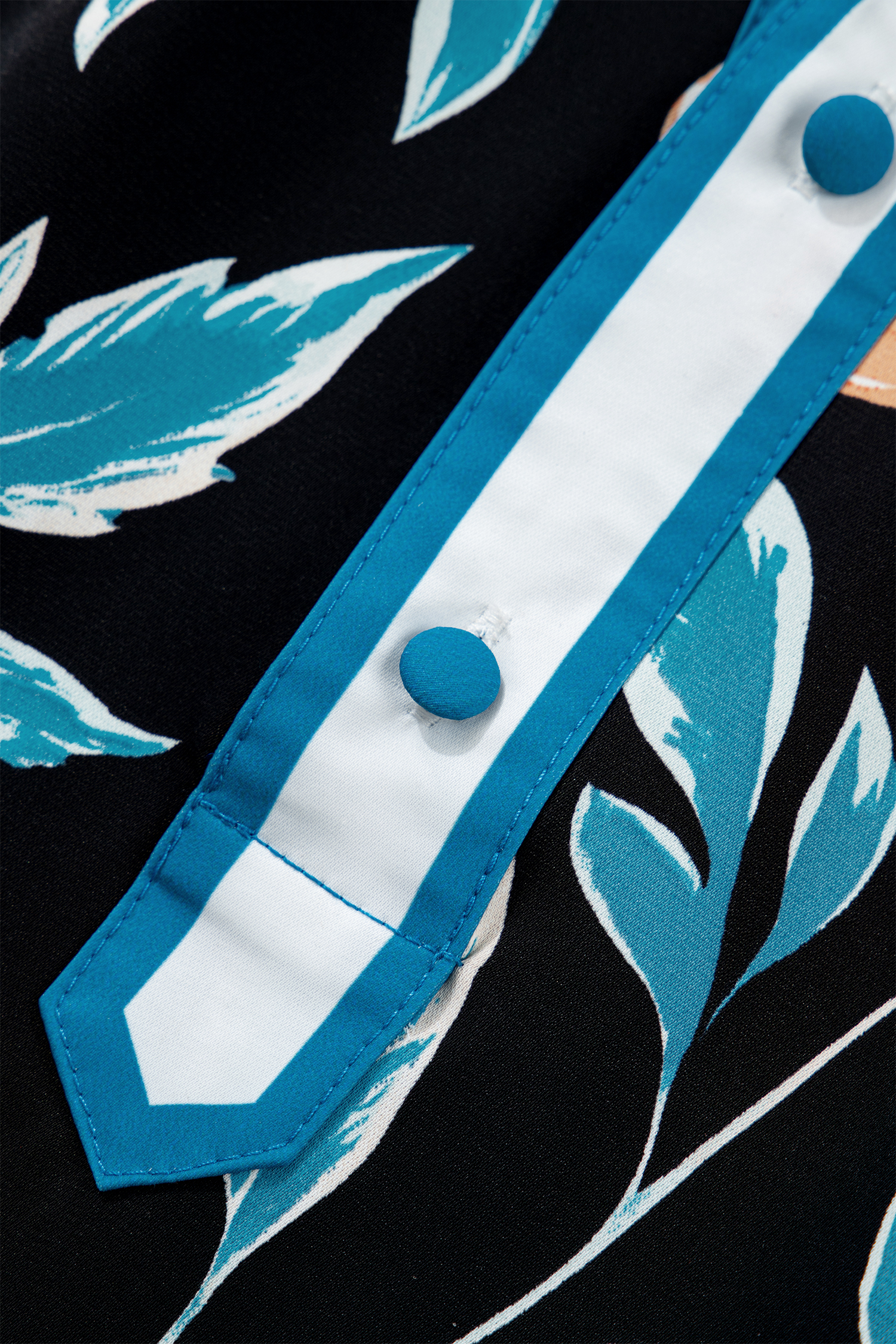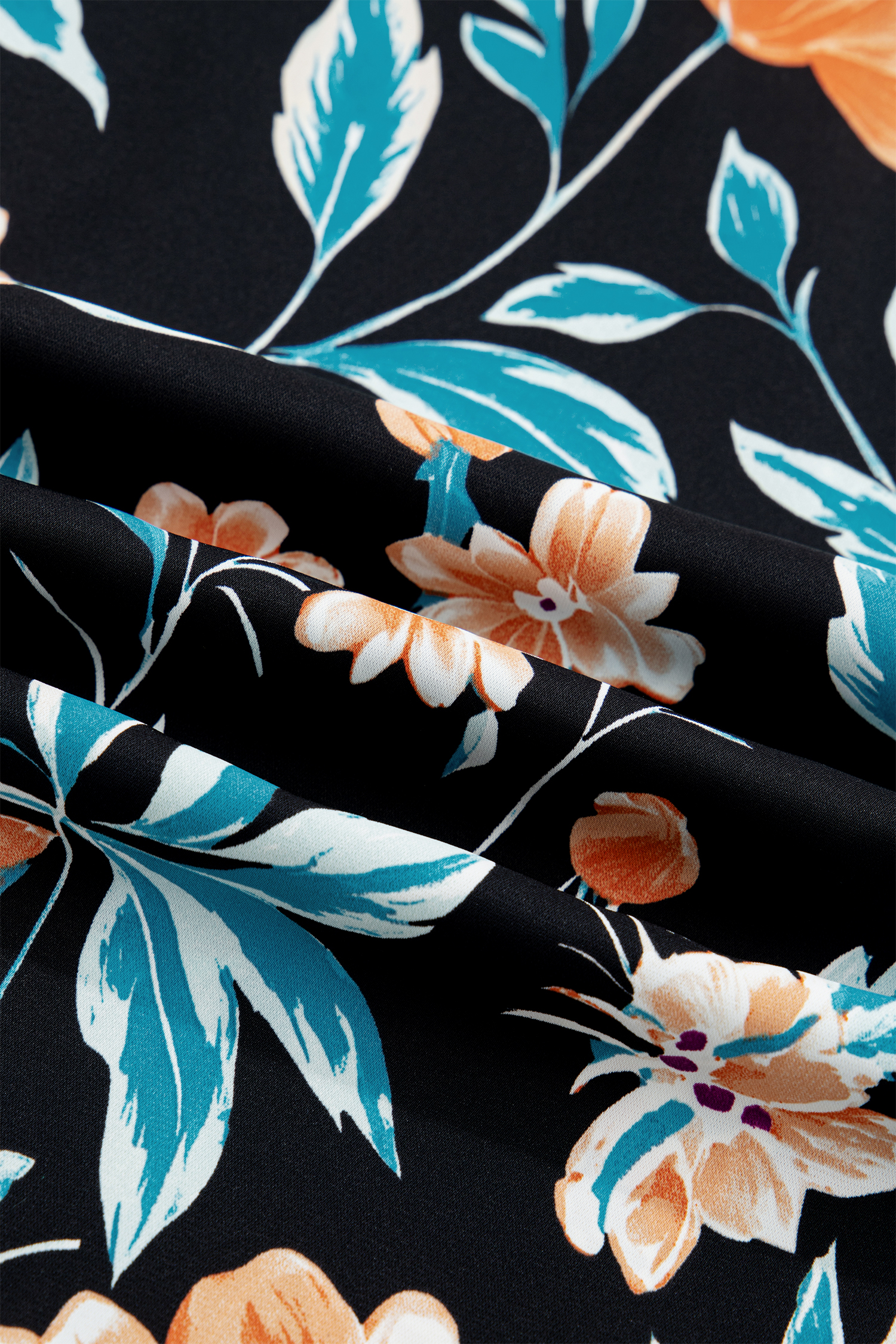 Women’s Black Floral Short Sleeve Blouse – Stylish Vacation Essential with Puff Sleeves
