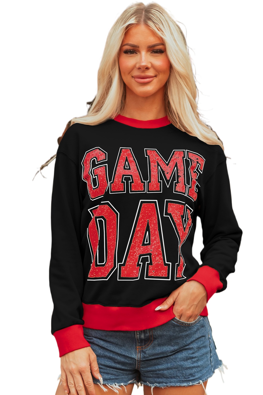 Women’s Black Game Day Letter Varsity Sweatshirt for Casual Daily Wear