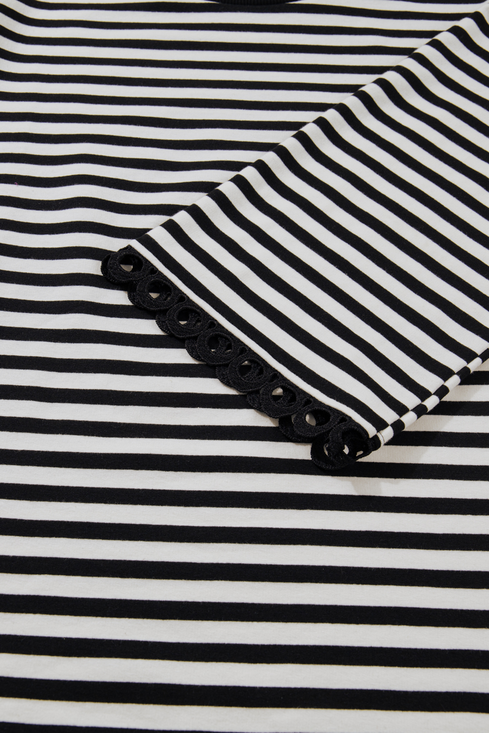 & Free Shipping✓ Striped Black Print with Lace Accents: The subtle striped pattern in black paired with delicate lace trim on bracelet sleeves offers a refined casual look for women seeking effortless style.