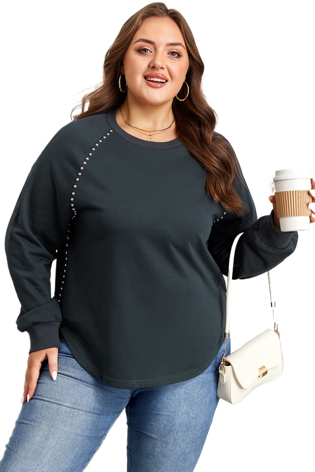 Women’s Black Studded Ribbed Edge Jumper – Casual Plus Size Fall Staple