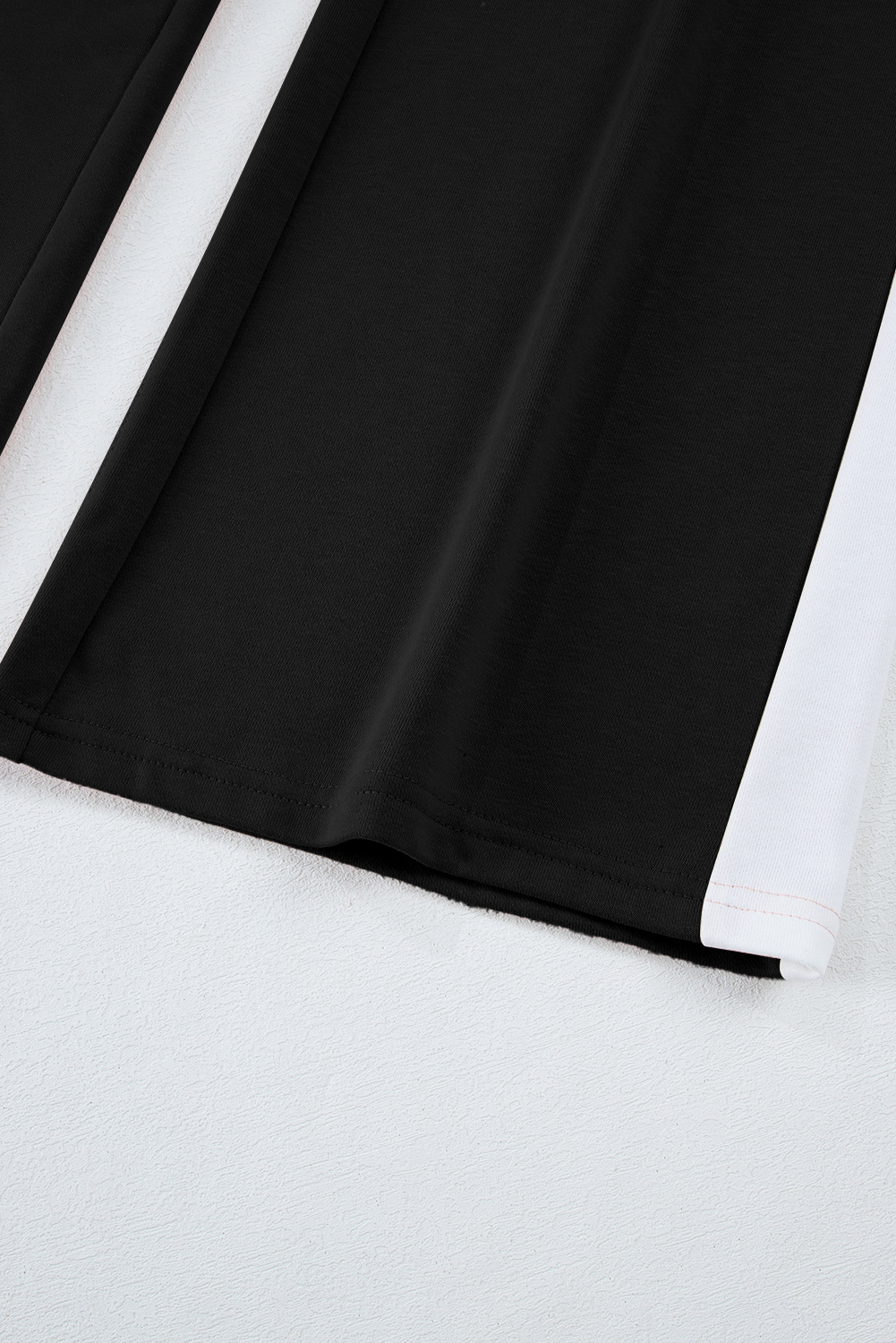 1. Trendy Varsity Style: The Black Varsity Stripe Patchwork Puff Sleeve Pullover Set features a stylish color block design that captures the essence of casual chic, perfect for making a statement in any autumn wardrobe.