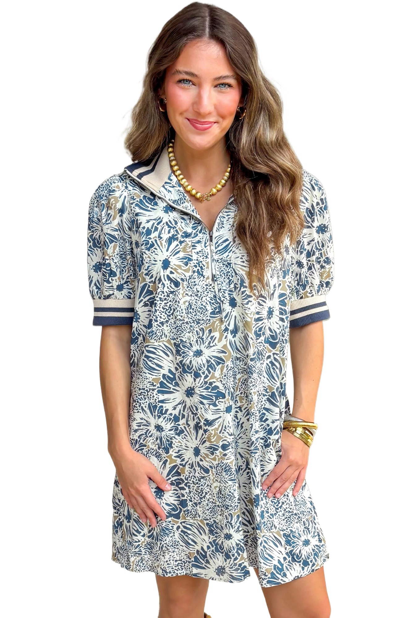 Women’s Blue Floral Mini Dress – Casual Short Sleeve Shift Dress for Summer Outings