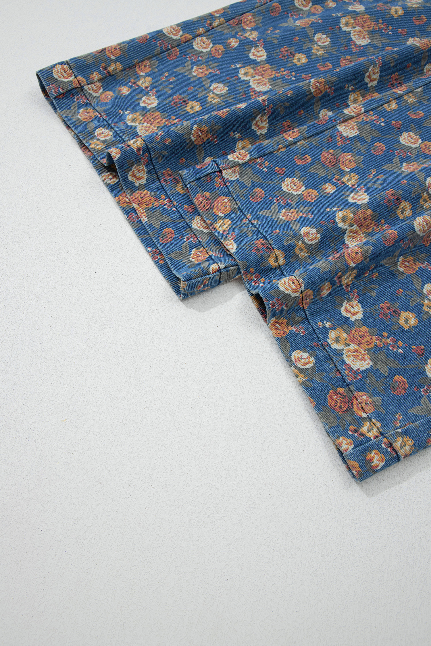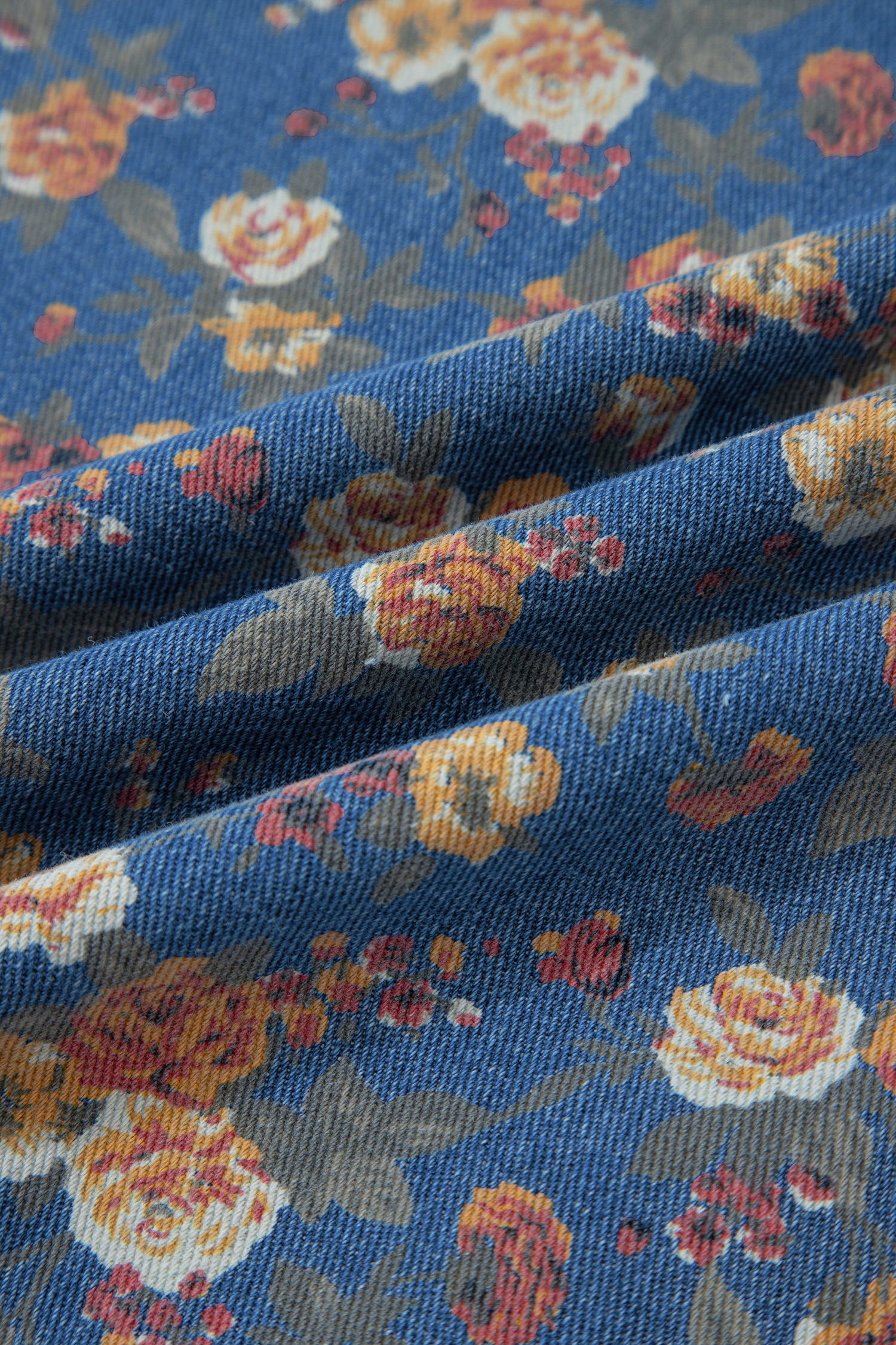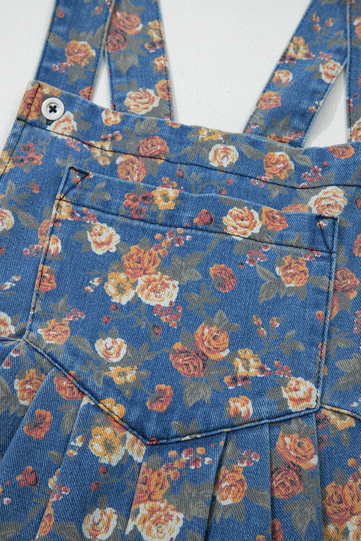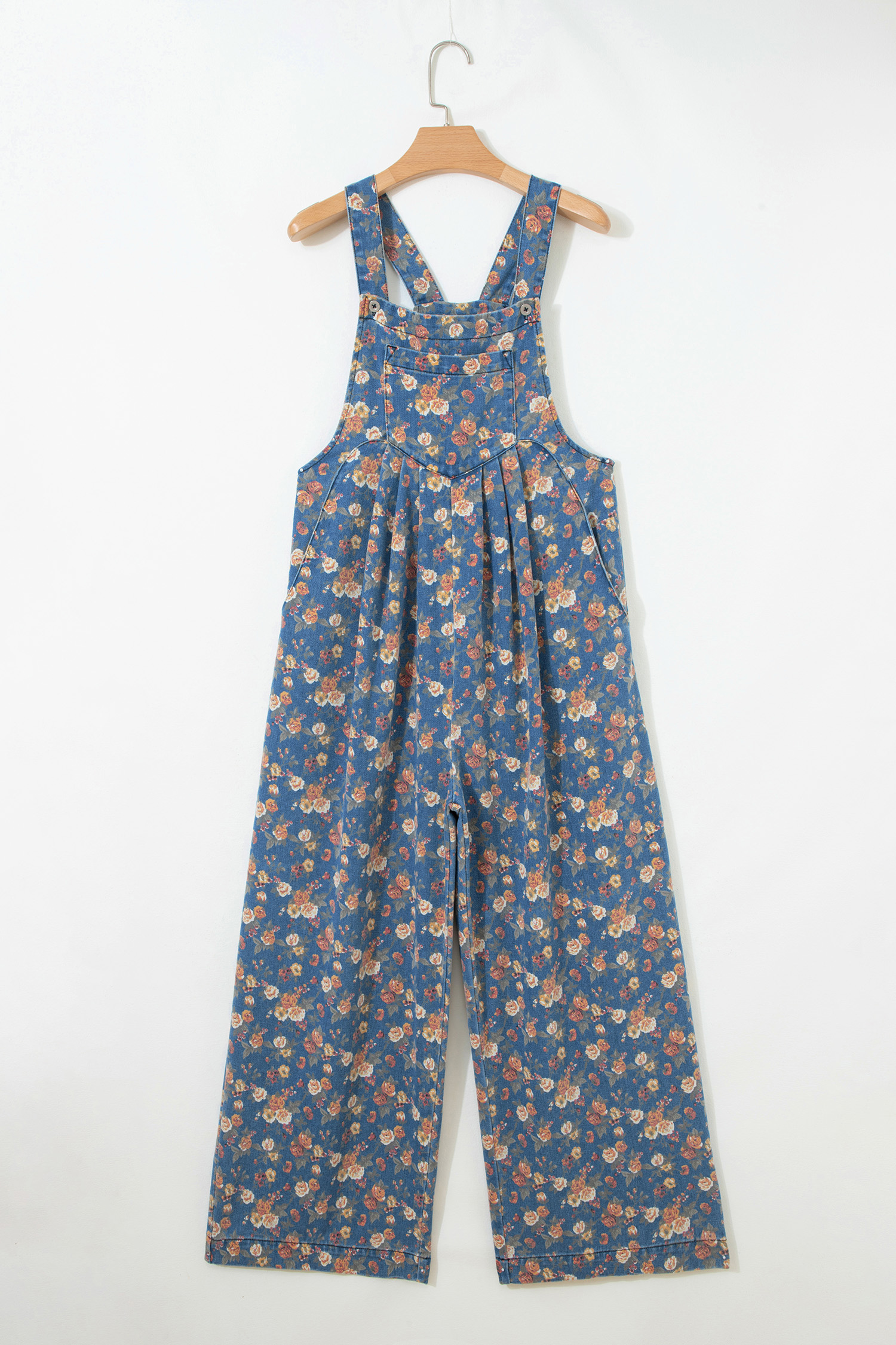 Women's Blue Vintage Rose Printed Denim Overall Jumpsuit – Casual Summer Style for Daily AdventuresWomen’s Blue Vintage Rose Printed Denim Overall Jumpsuit – Casual Summer Style for Daily Adventures