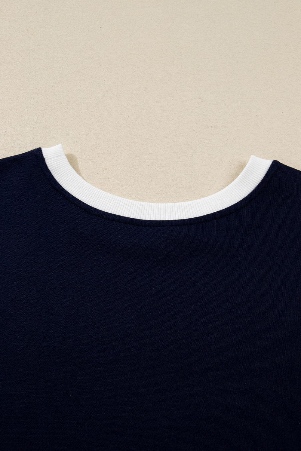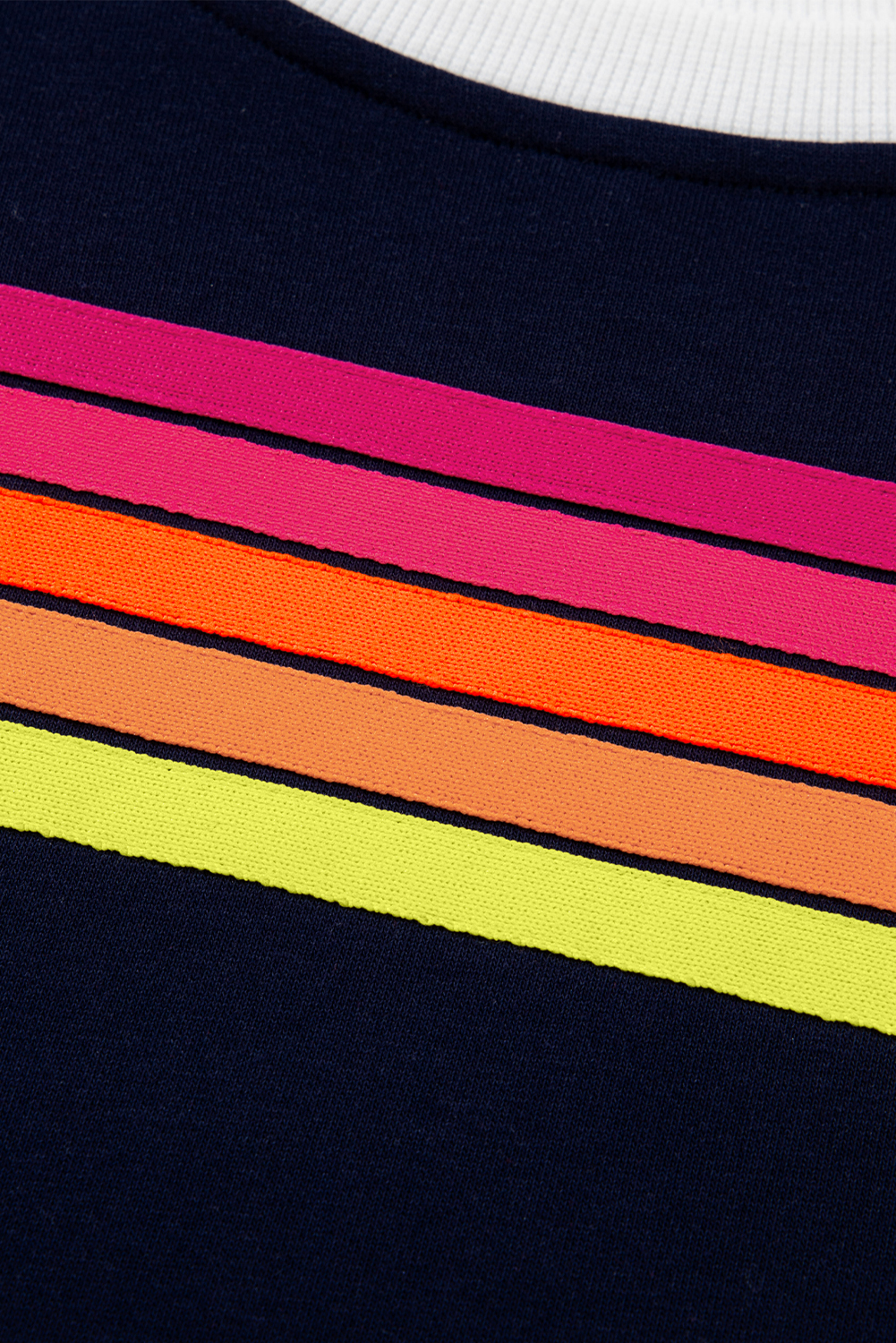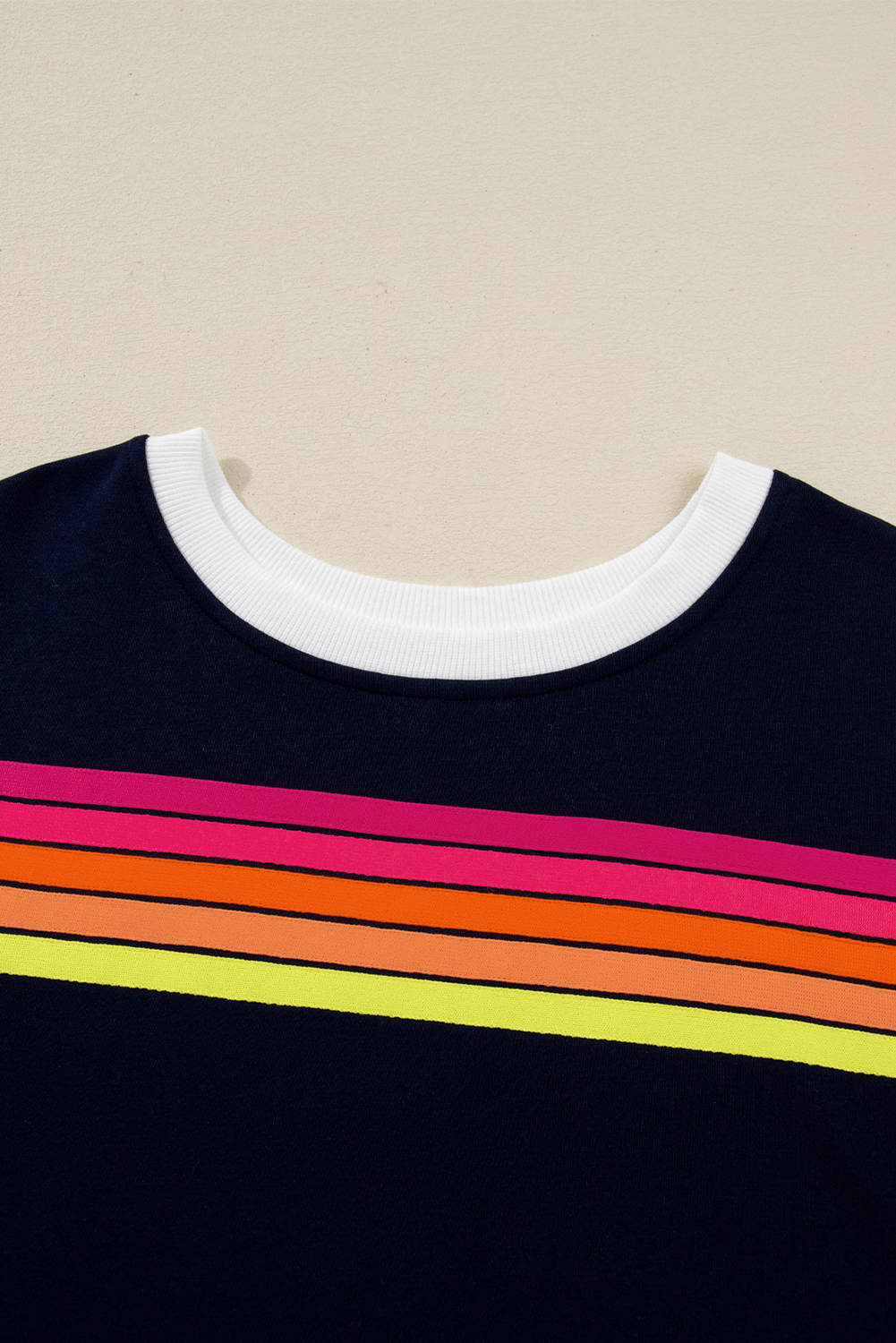 Women’s Bluing Colorful Striped Varsity Long Sleeve Pullover and Shorts Set – Casual Daily Wear for Fall Comfort
