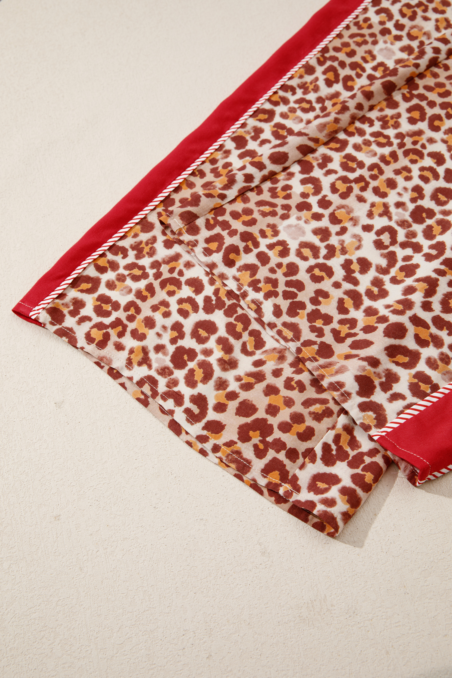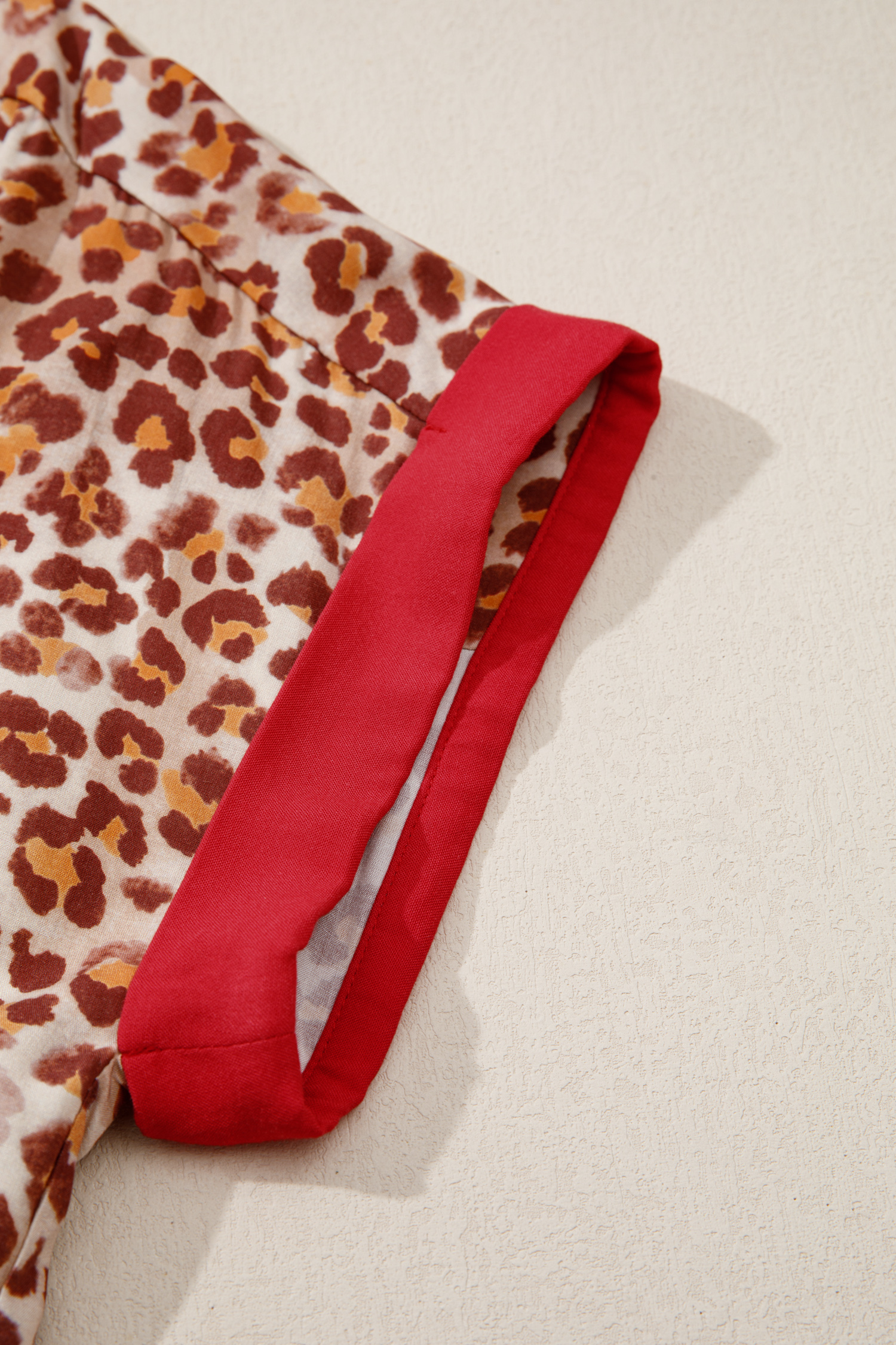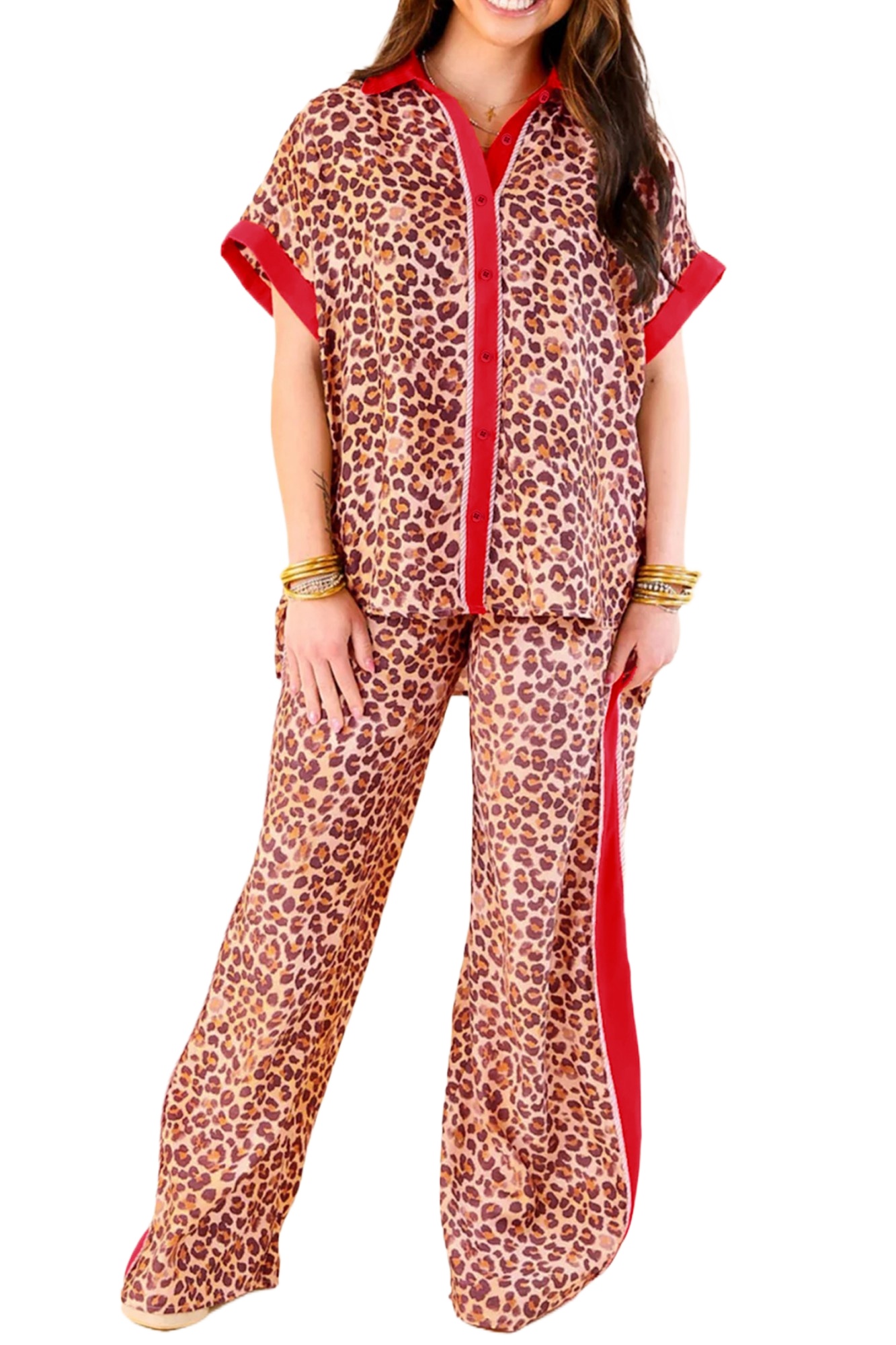 Women’s Brown Leopard Print Top and Pants Set – Casual Summer Outfit with Contrast Trim