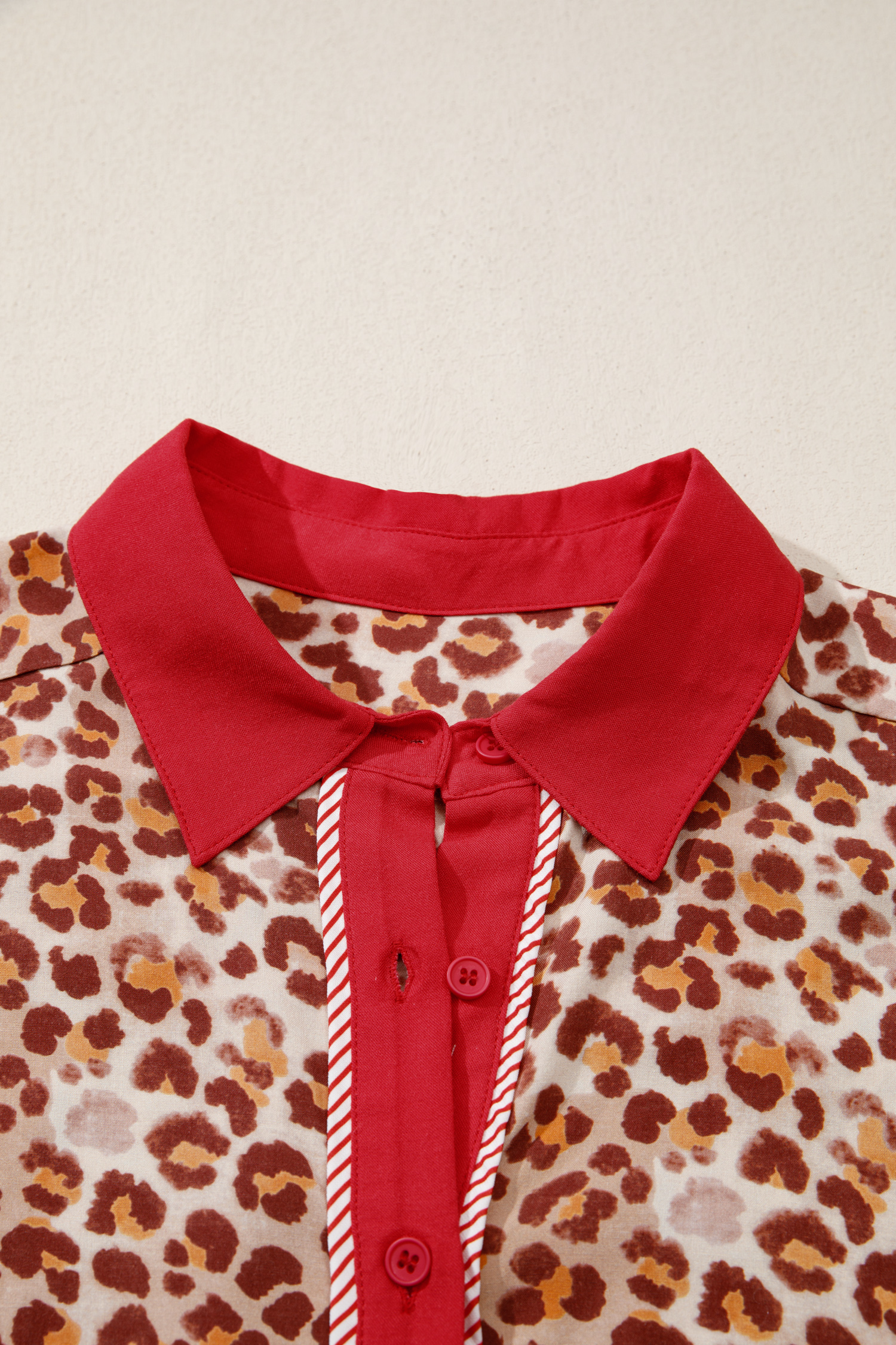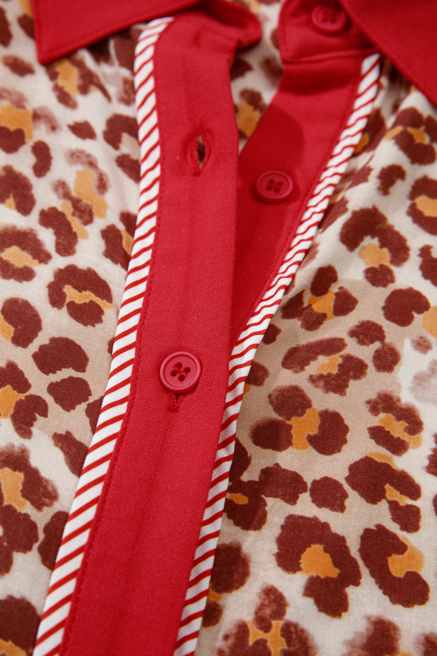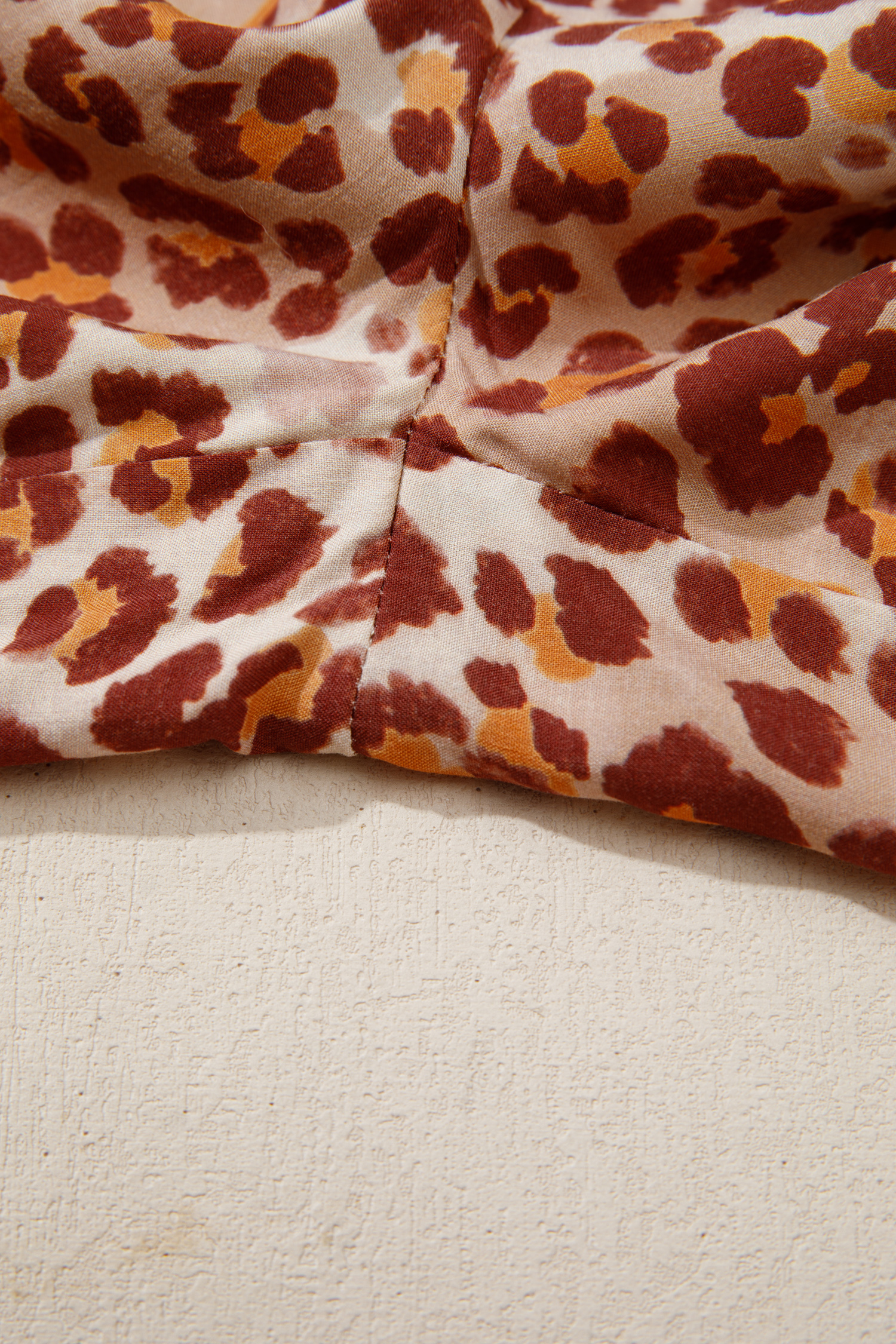 Women’s Brown Leopard Print Top and Pants Set – Casual Summer Outfit with Contrast Trim