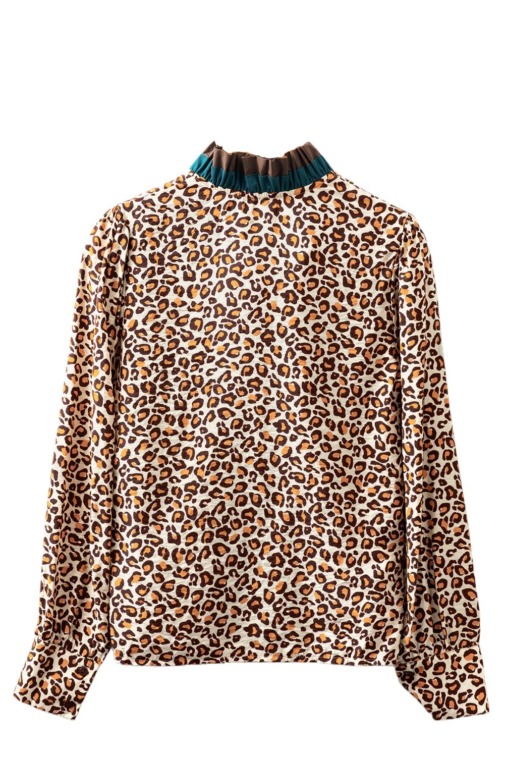 Women’s Brown Leopard Print V-Neck Shirt – Frilled Trim for Office Wear