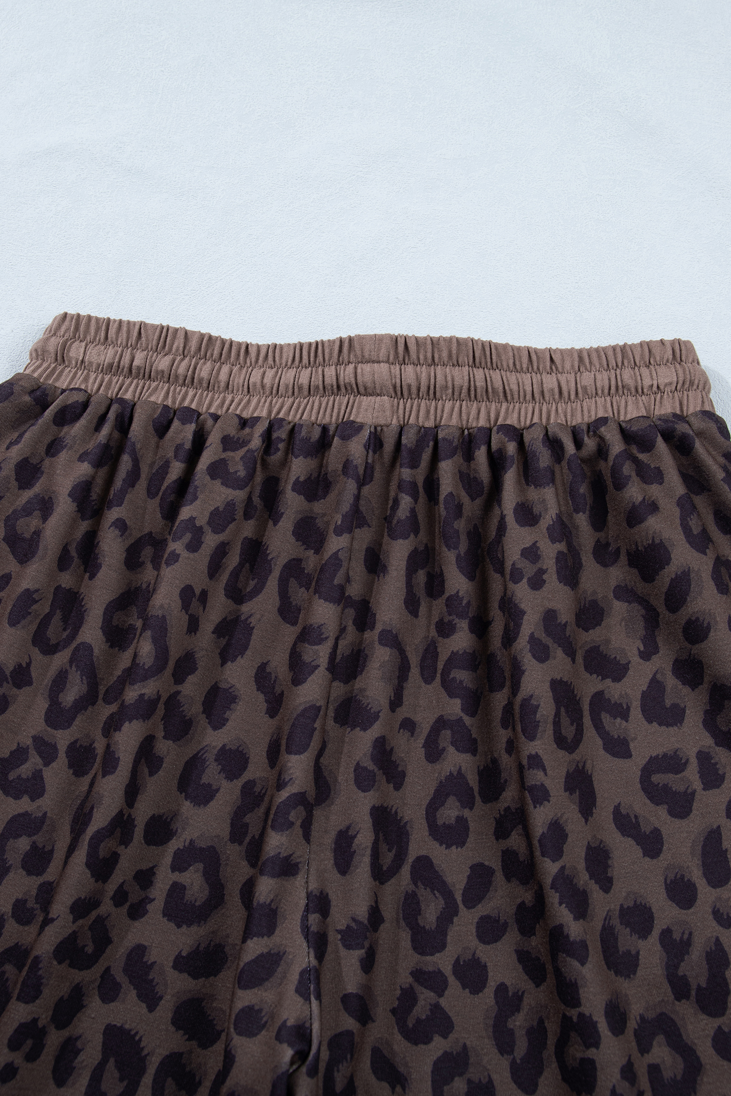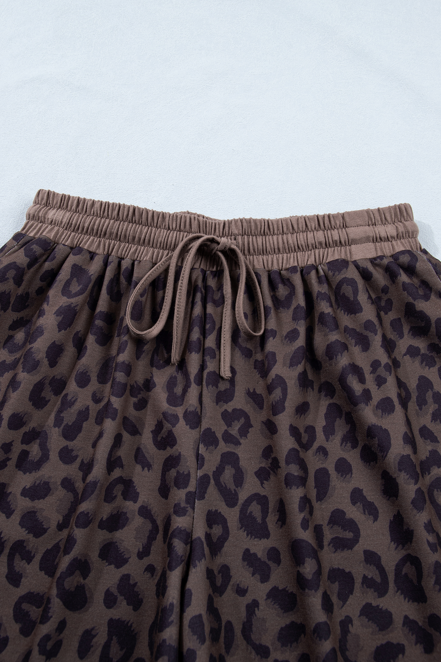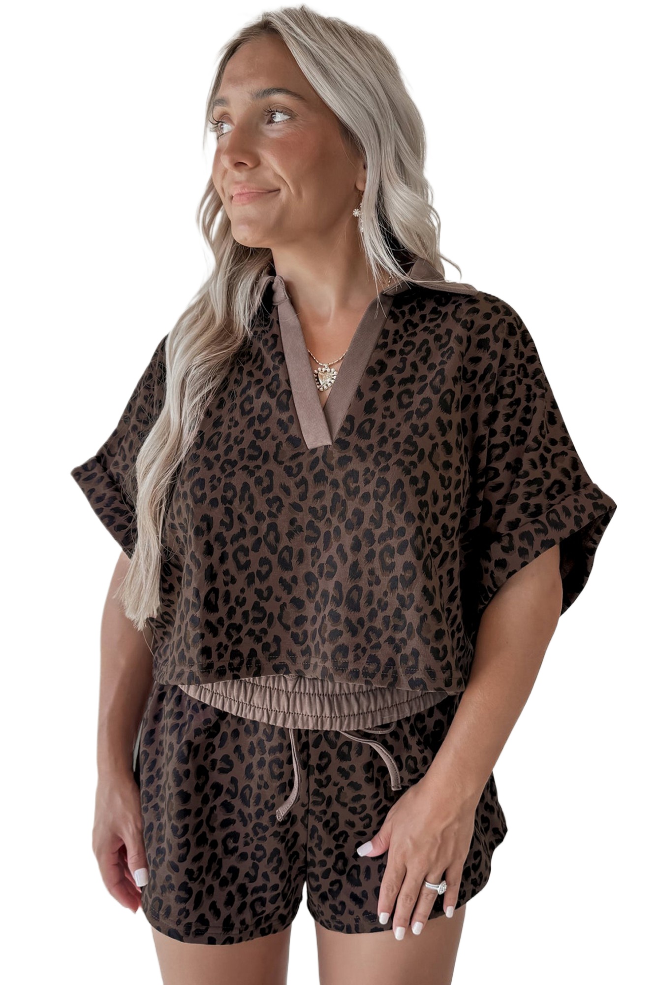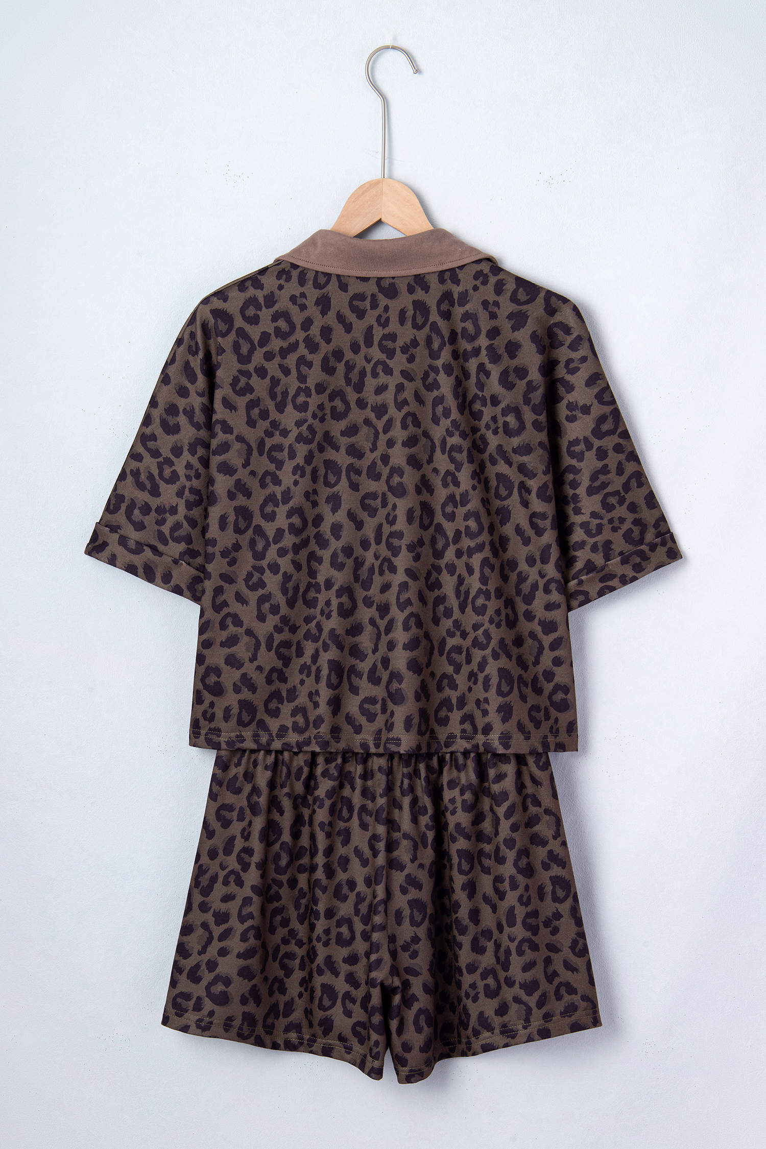Women’s Brown V Neck Collar Leopard Printed 2-Piece Short Set for Casual Summer Days
