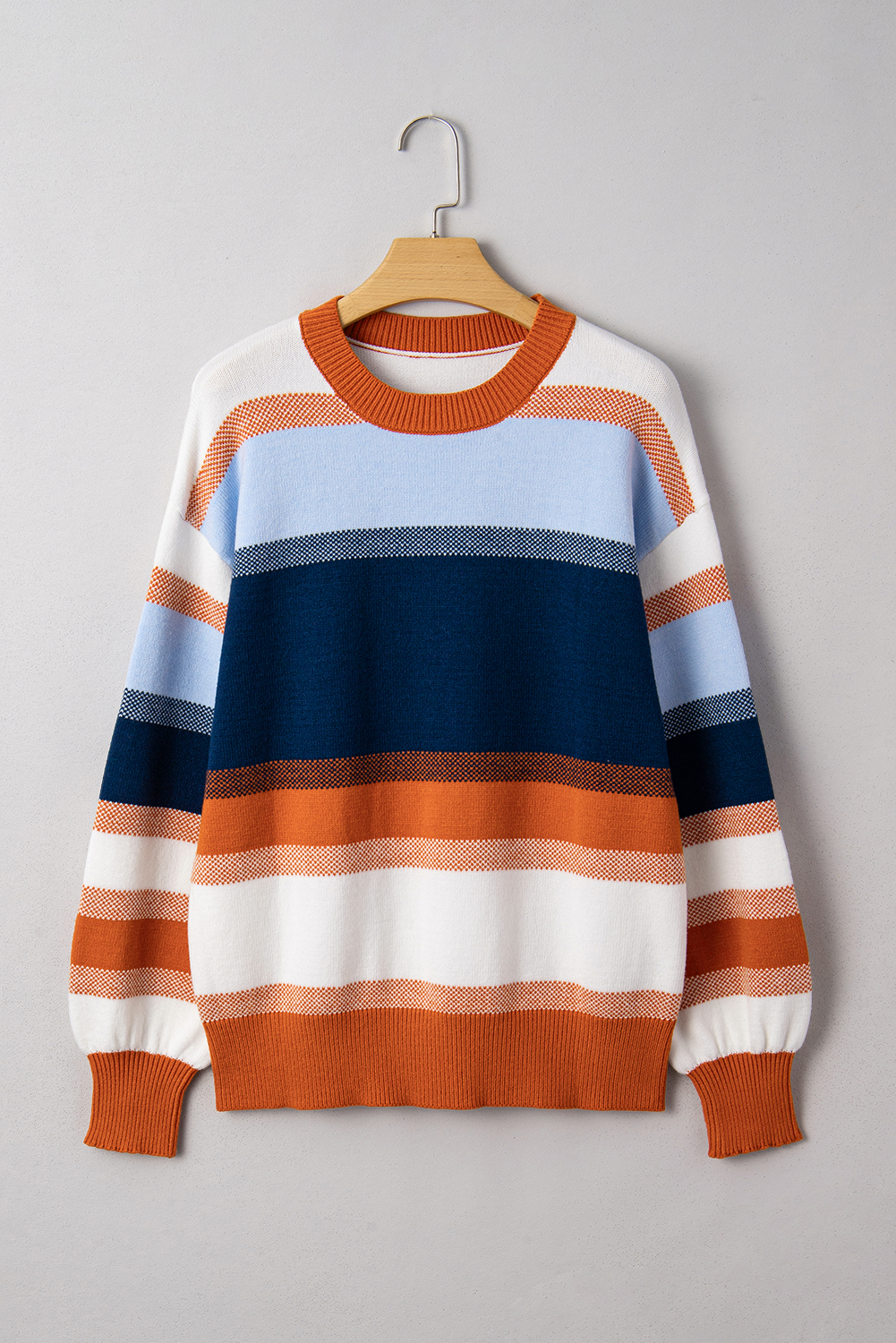 4. Versatile Round Neckline: The classic round neckline adds a timeless touch to this sweater, allowing for easy pairing with your favorite accessories or layered outfits.
