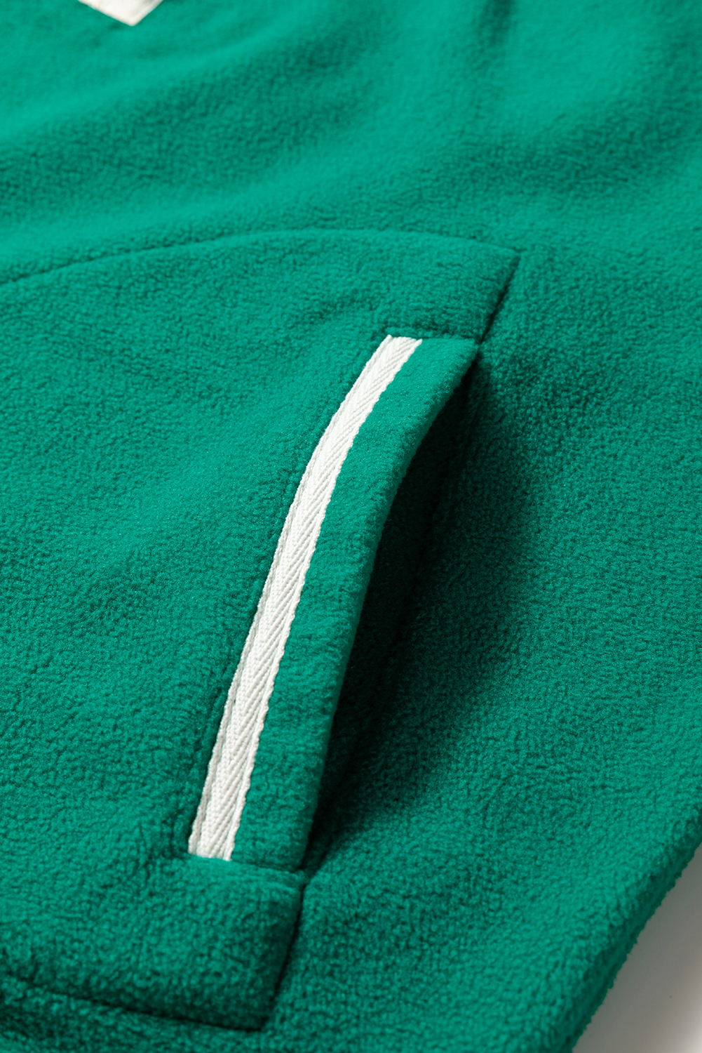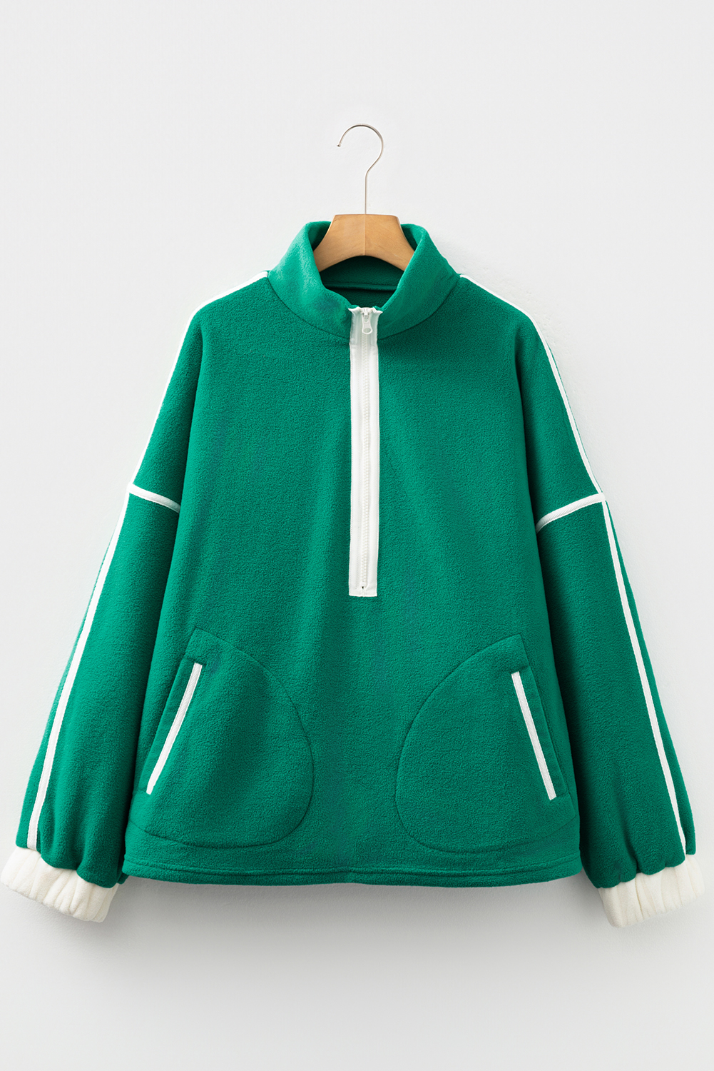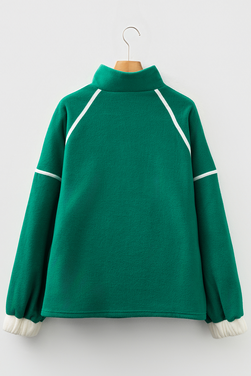 Women’s Dark Green Half Zip Fleece Sweatshirt with Contrast Trim – Casual Daily Wear for Fall