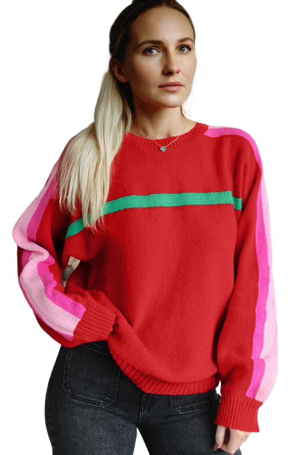 Women’s Fiery Red Holly Christmas Sweater – Casual Holiday Daily Wear