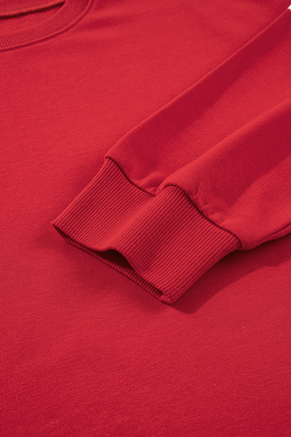 1. Eye-Catching Fiery Red: The Fiery Red Varsity Striped Detail Crew Neck Plus Sweatshirt features a vibrant color that makes a bold statement, perfect for those who love to stand out.