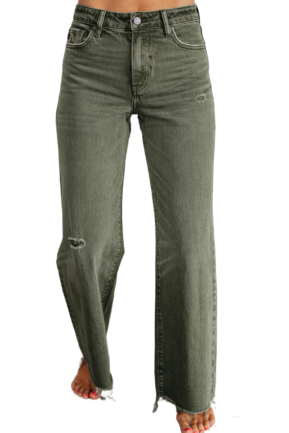Women’s Four Leaf Clover Distressed Wide Leg Jeans – Casual Daily Wear