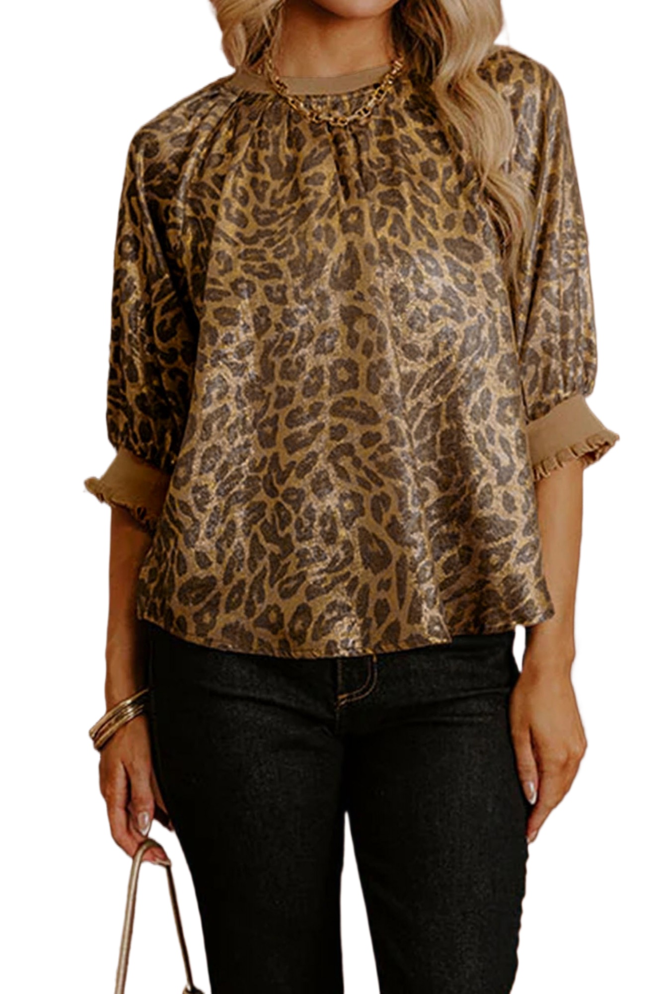 Women’s Gold Metallic Leopard Print Blouse – Stylish Half Sleeve for Office & Casual Wear