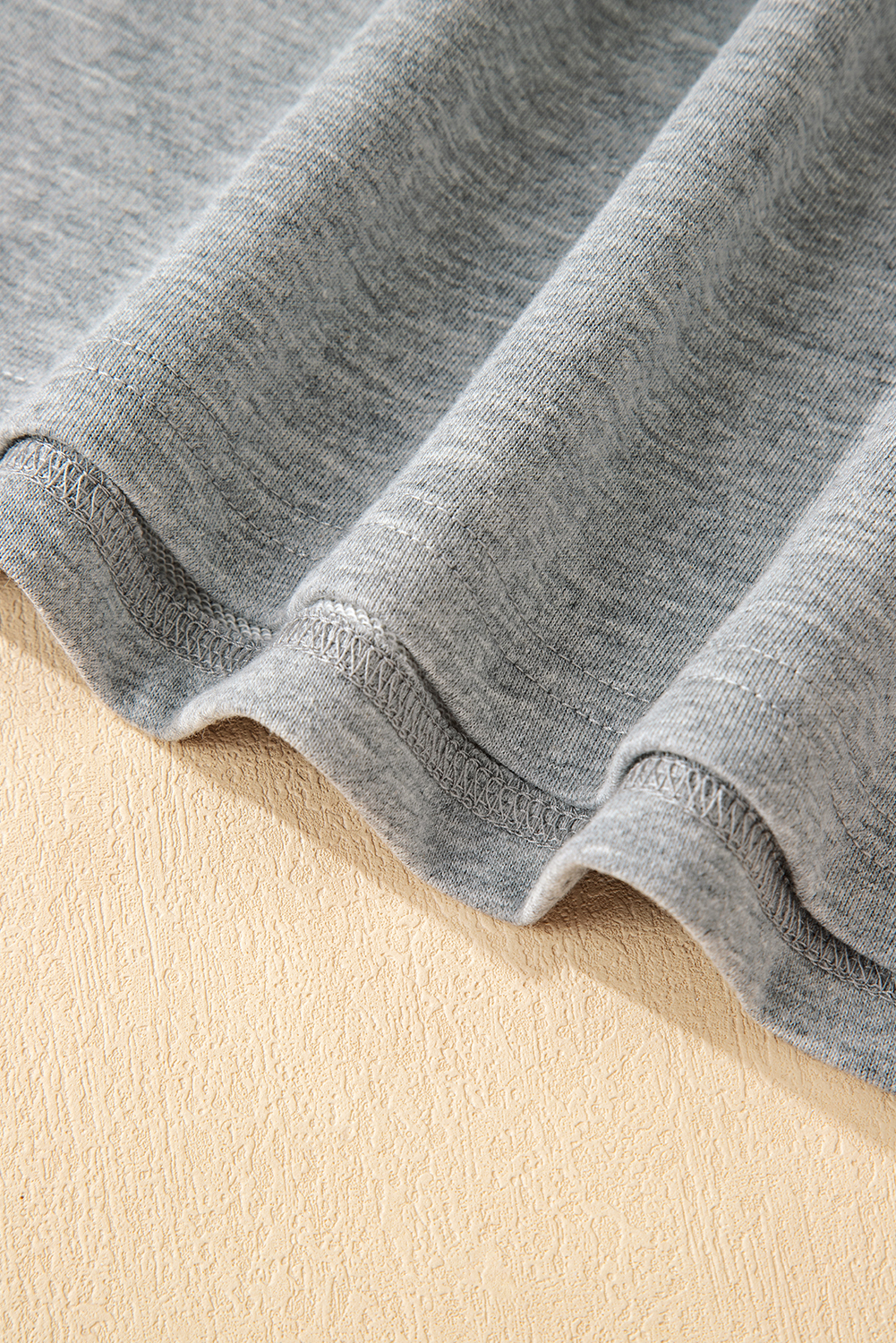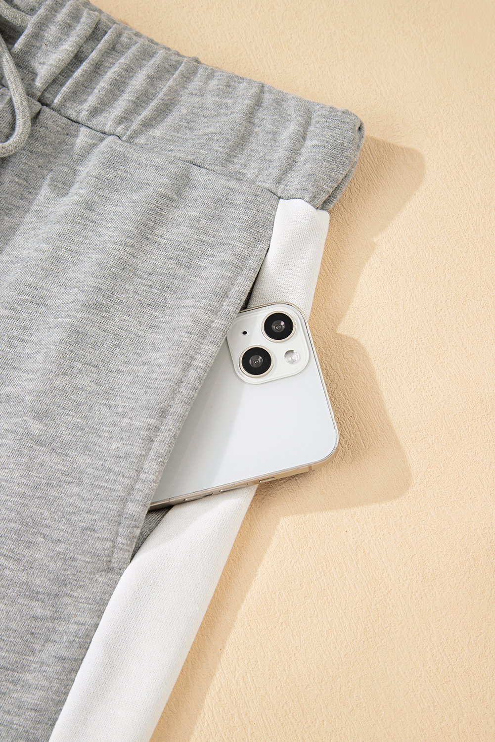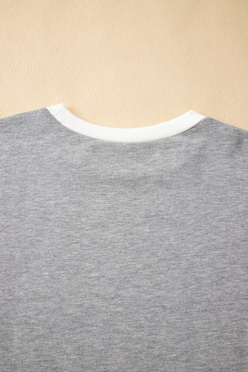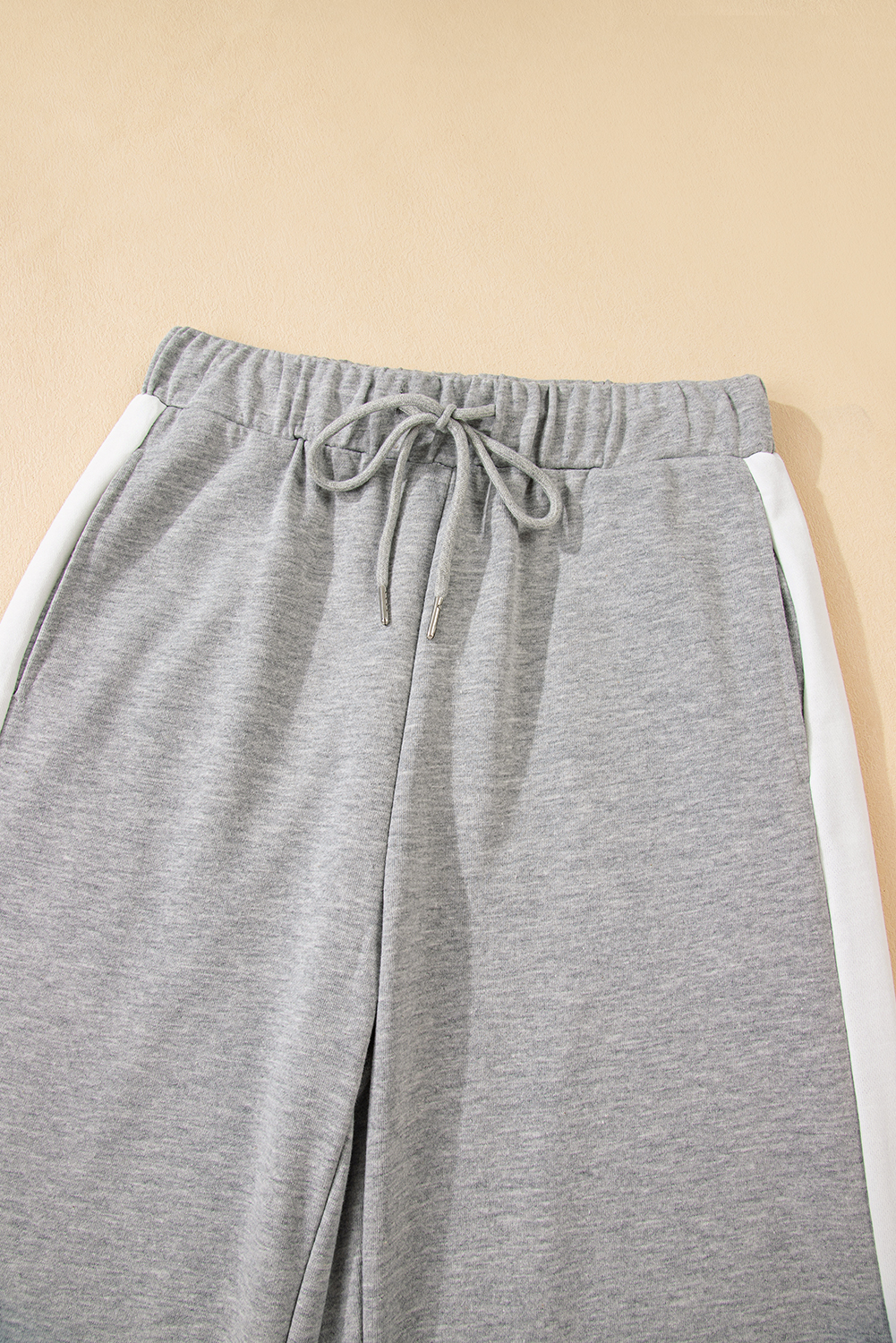 Women’s Gray Patchwork Puff Sleeve Pullover Set with Wide Leg Pants