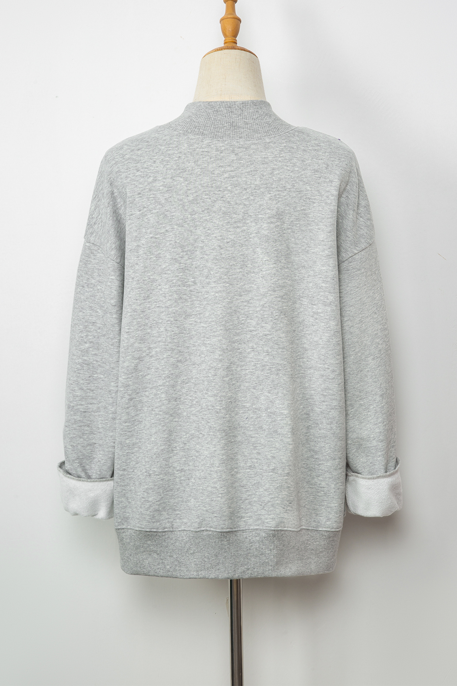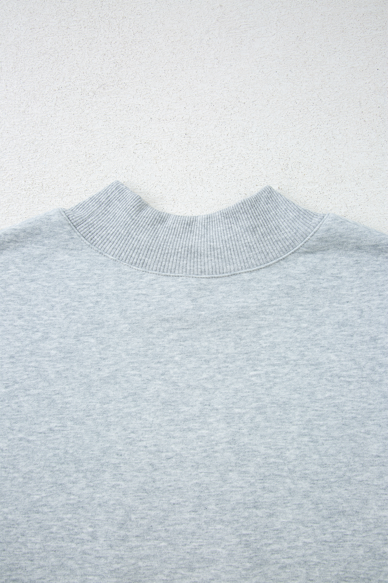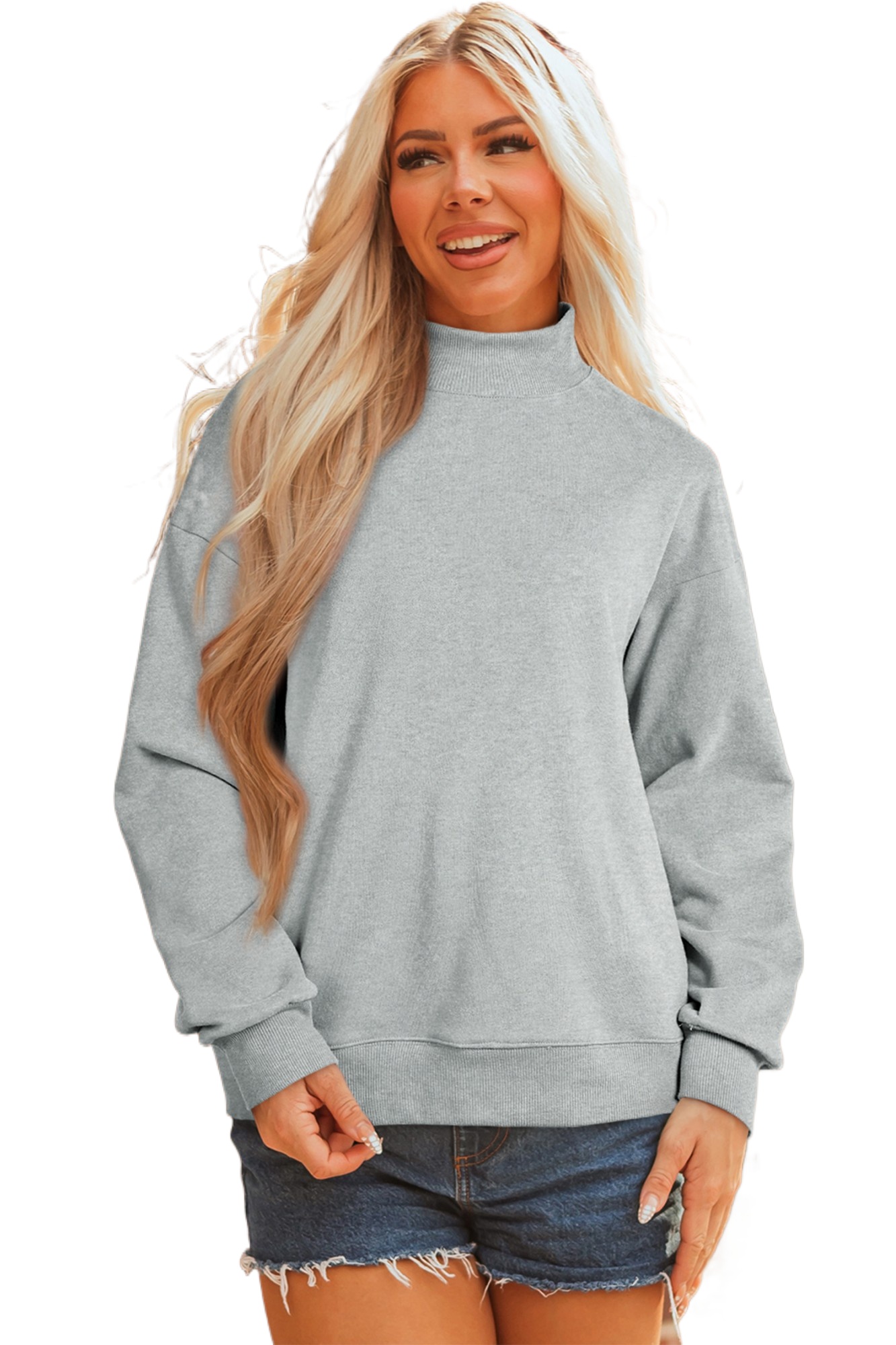 Women’s Gray Solid Color Oversized Mock Neck Sweatshirt – Casual Everyday Essential