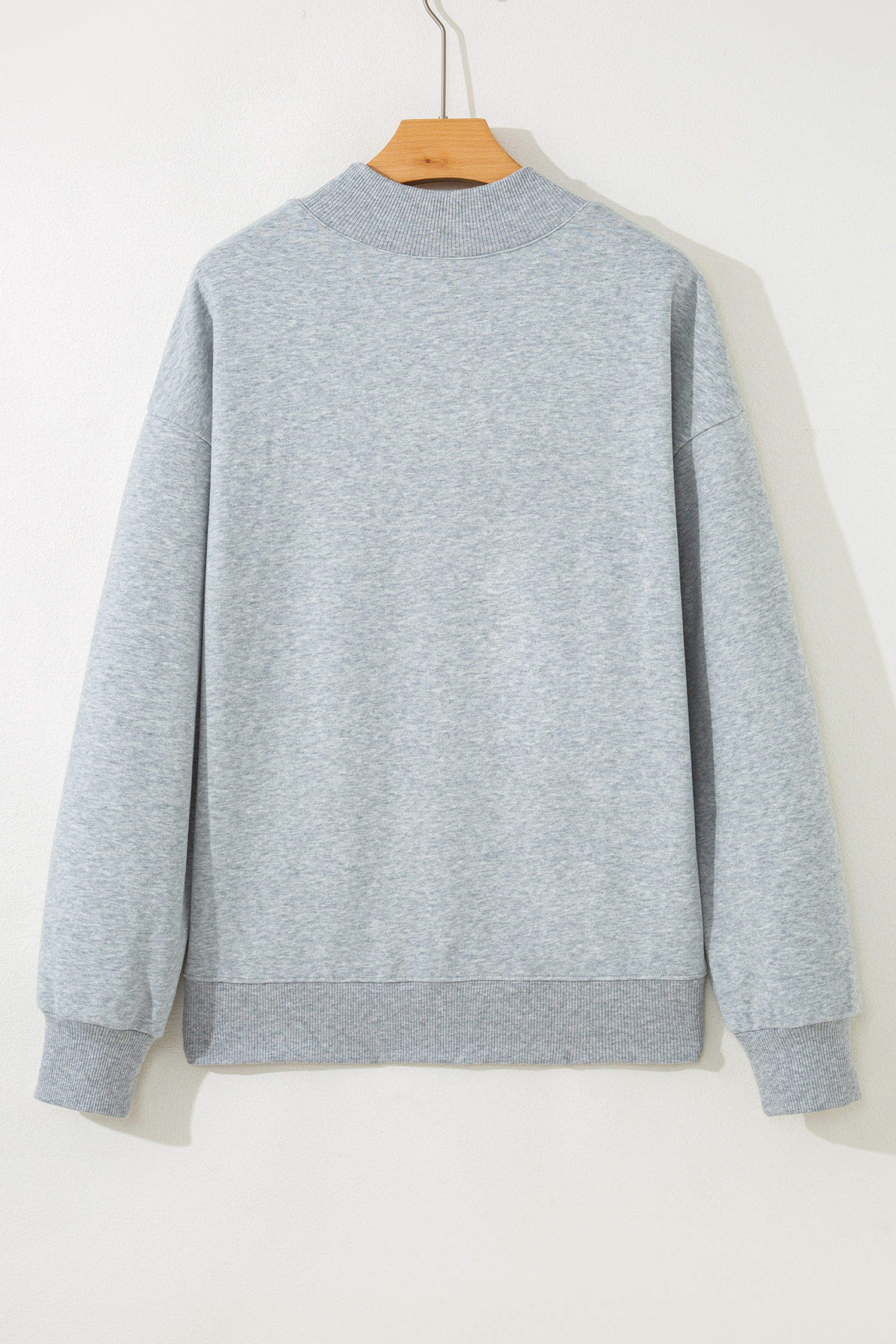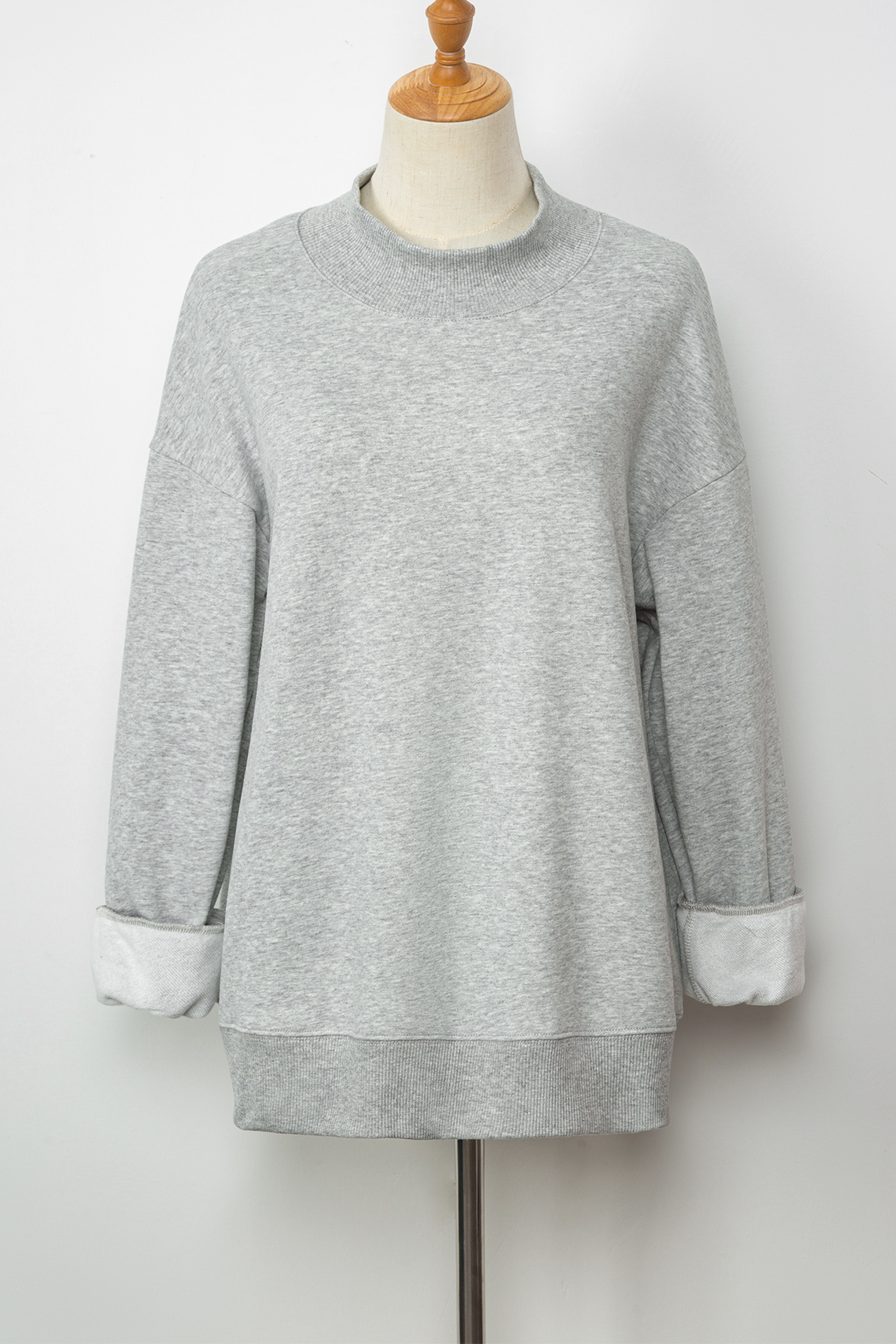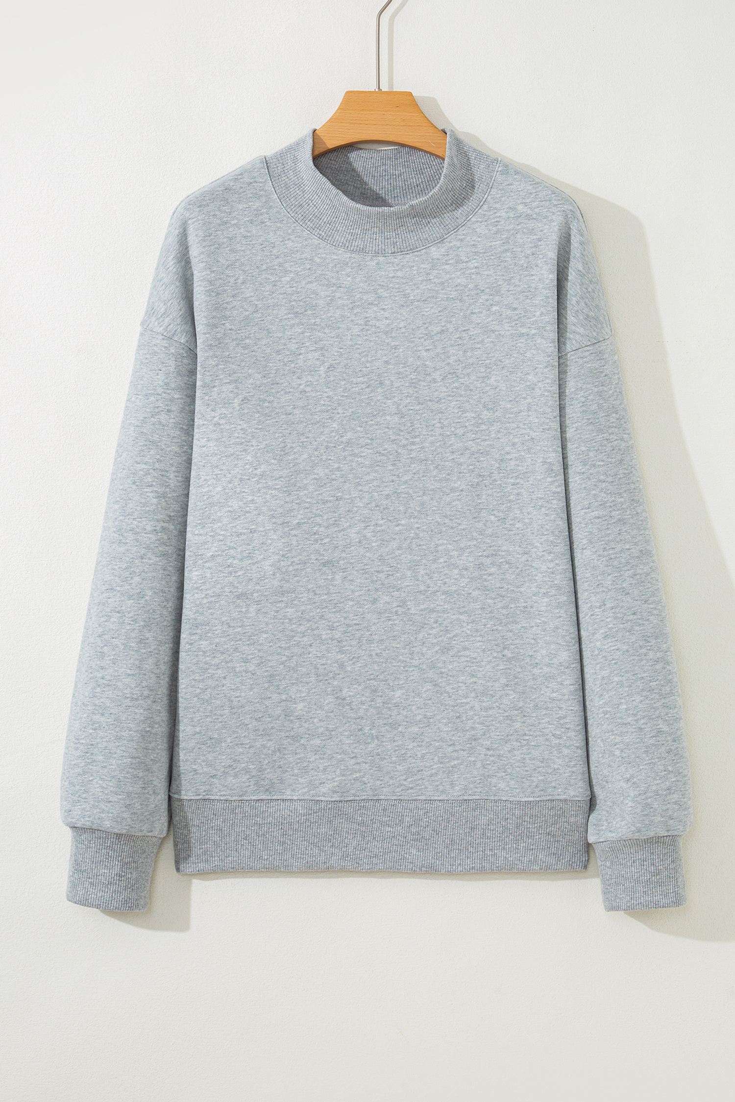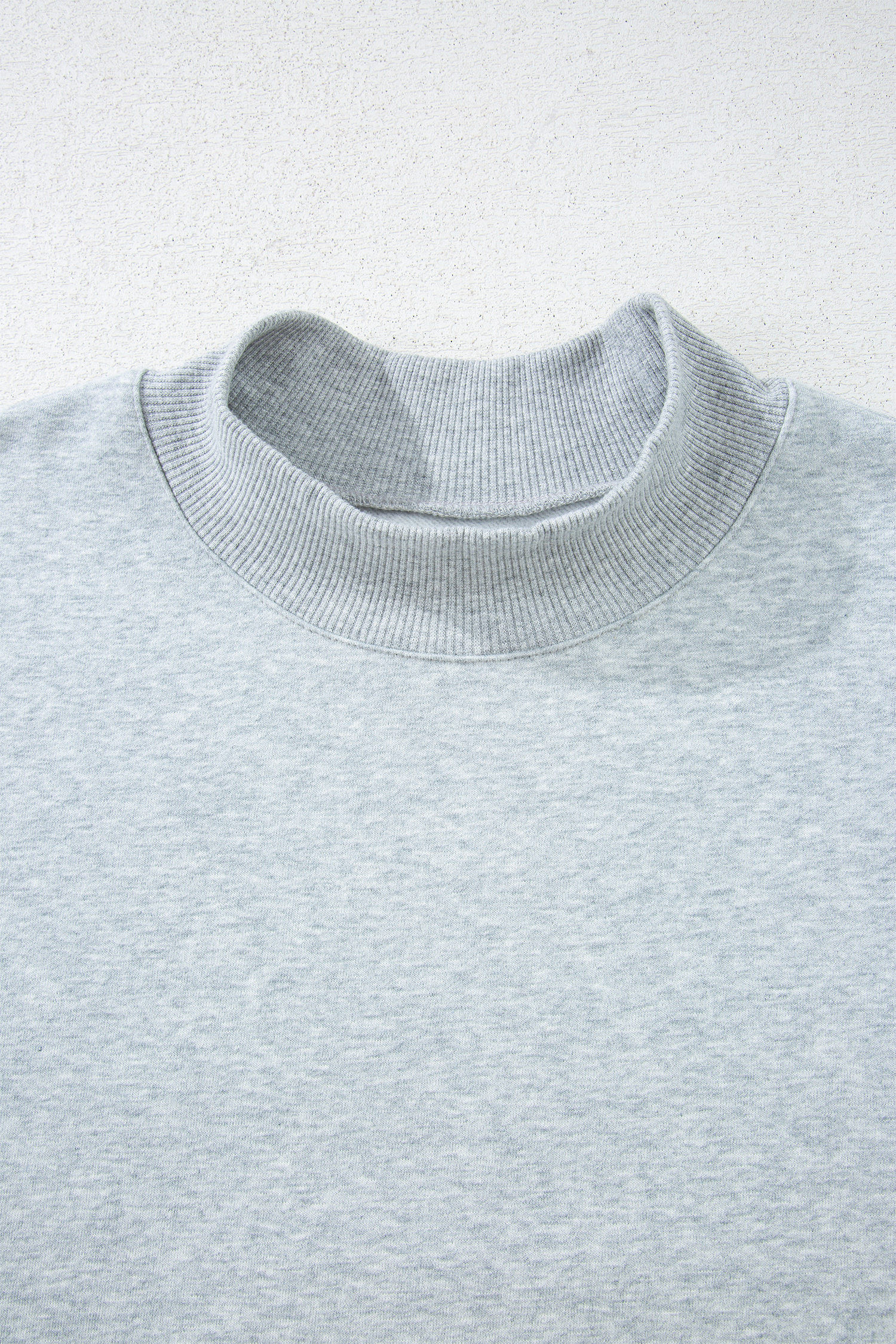 Women’s Gray Solid Color Oversized Mock Neck Sweatshirt – Casual Everyday Essential