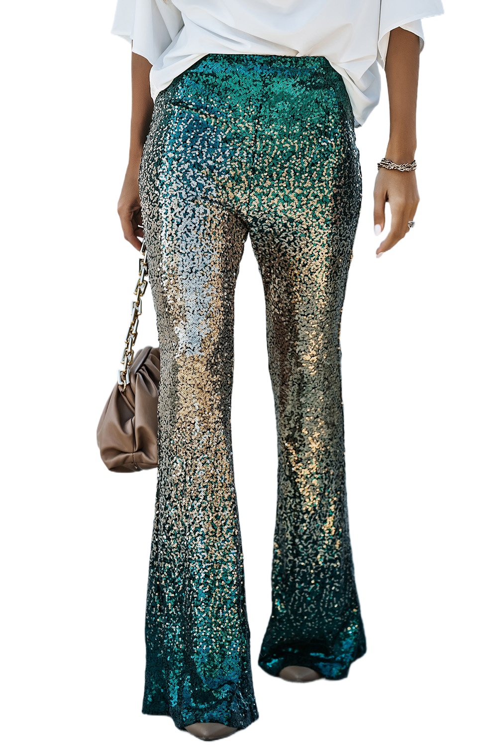 Women’s Green Black & Gold Gradient Sequined Flared Pants – Chic Party Style