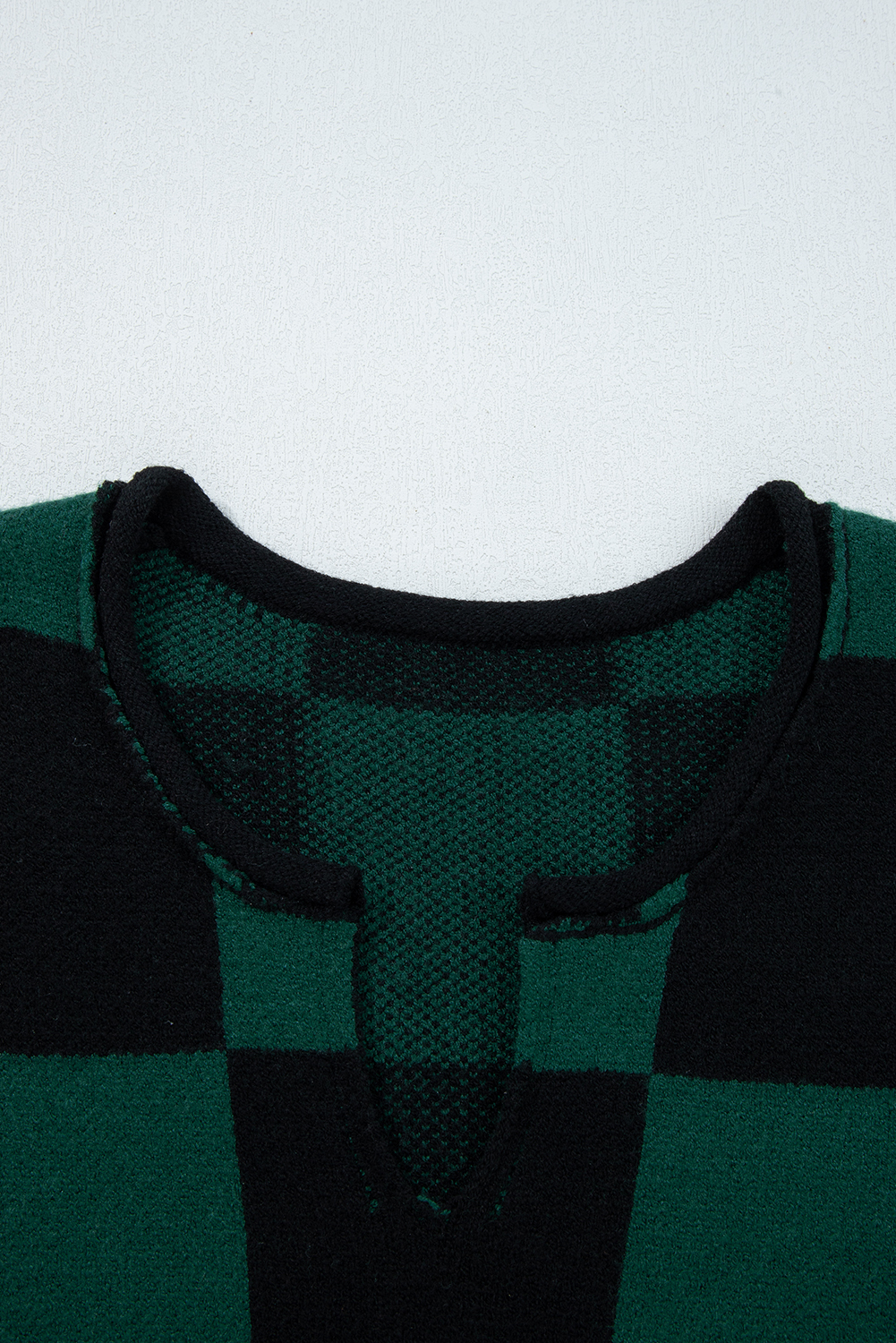 & Free Shipping1. Trendy Checked Pattern: The Green Checked Notched Neckline Drop Shoulder Knit Sweater features a stylish plaid design that adds a chic touch to your fall wardrobe, perfect for casual outings.