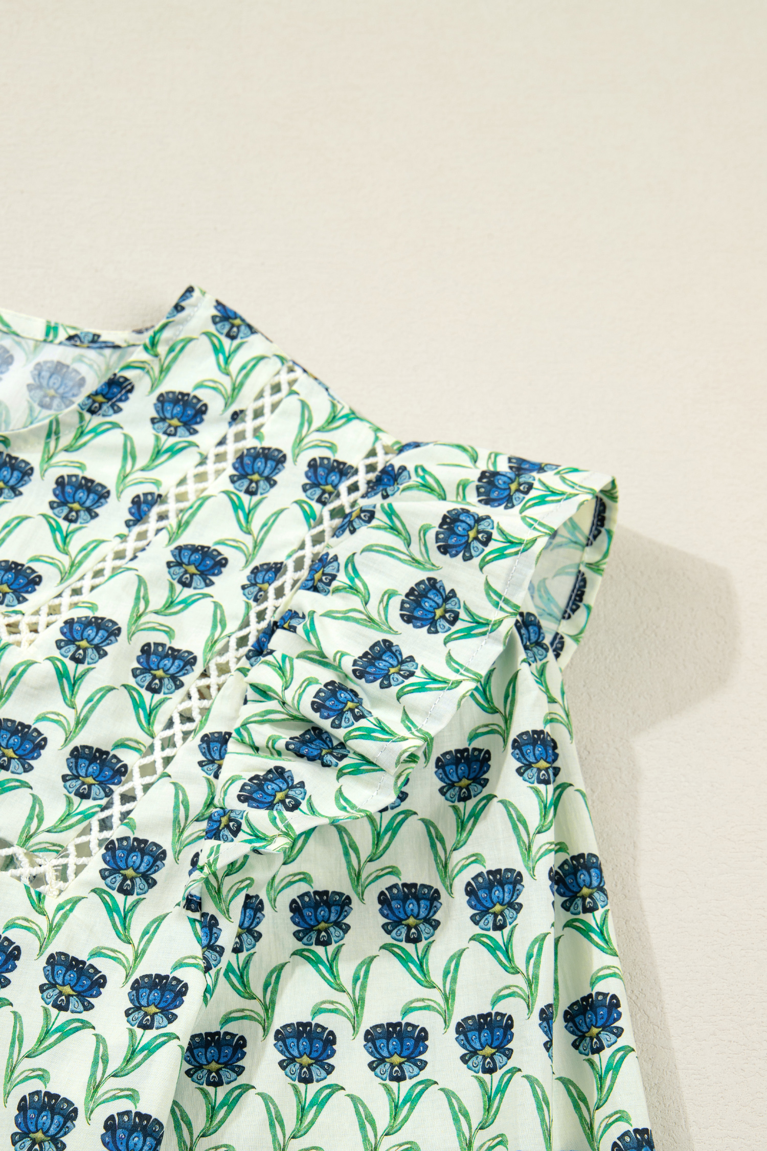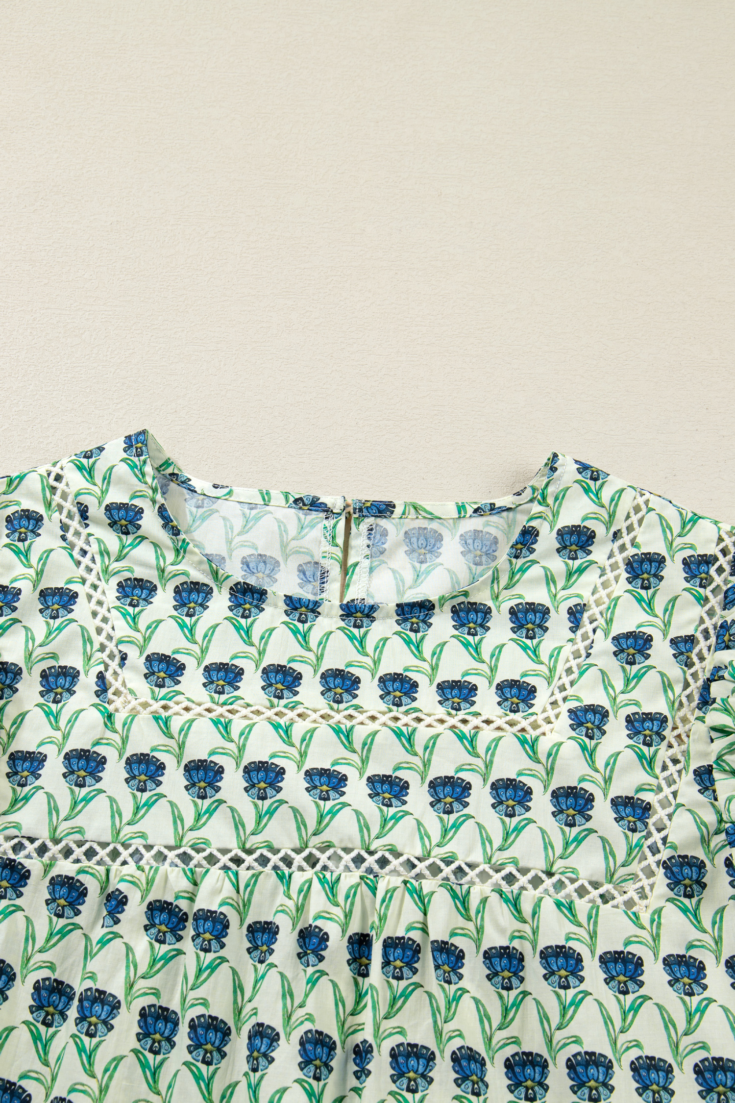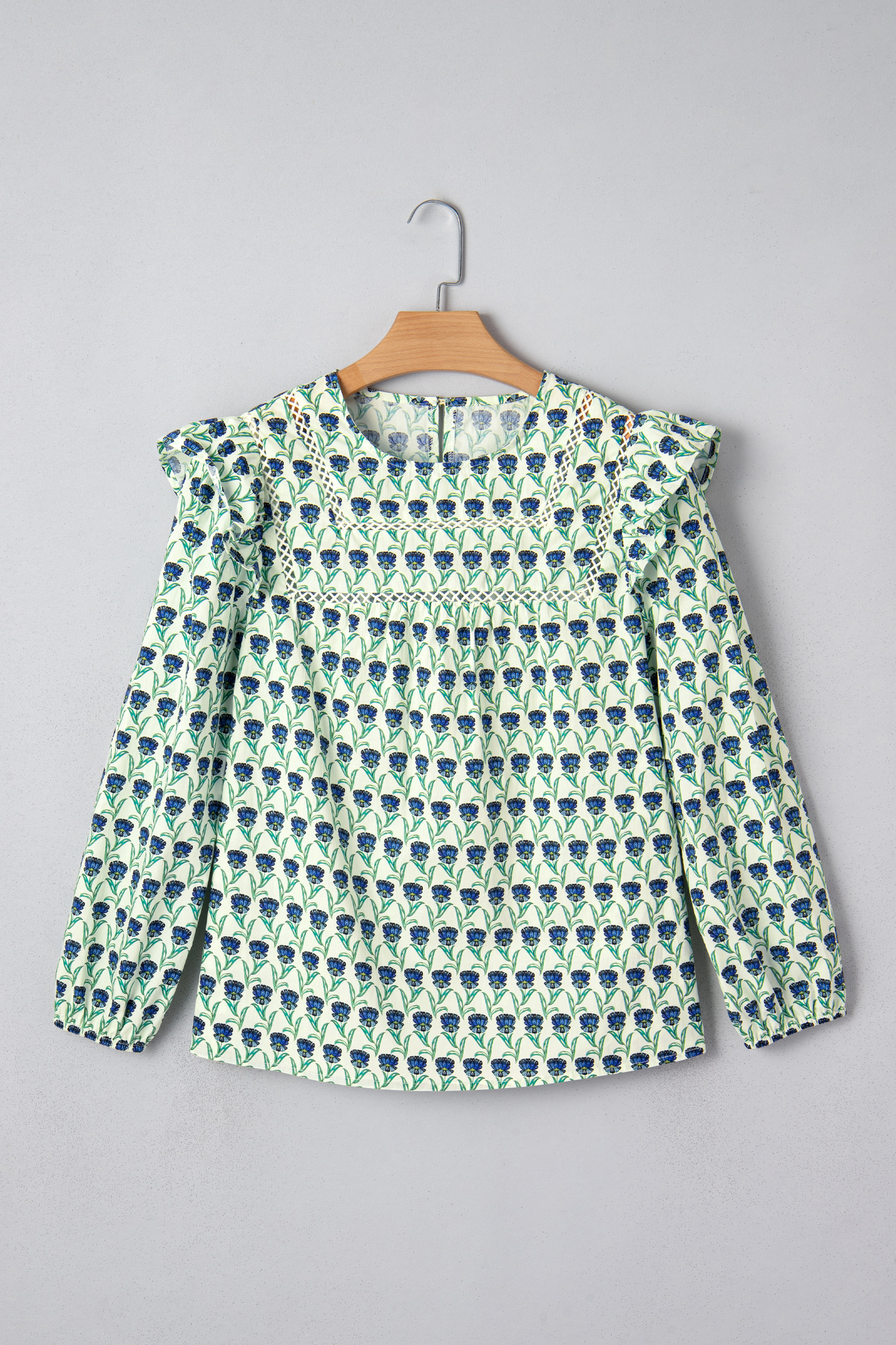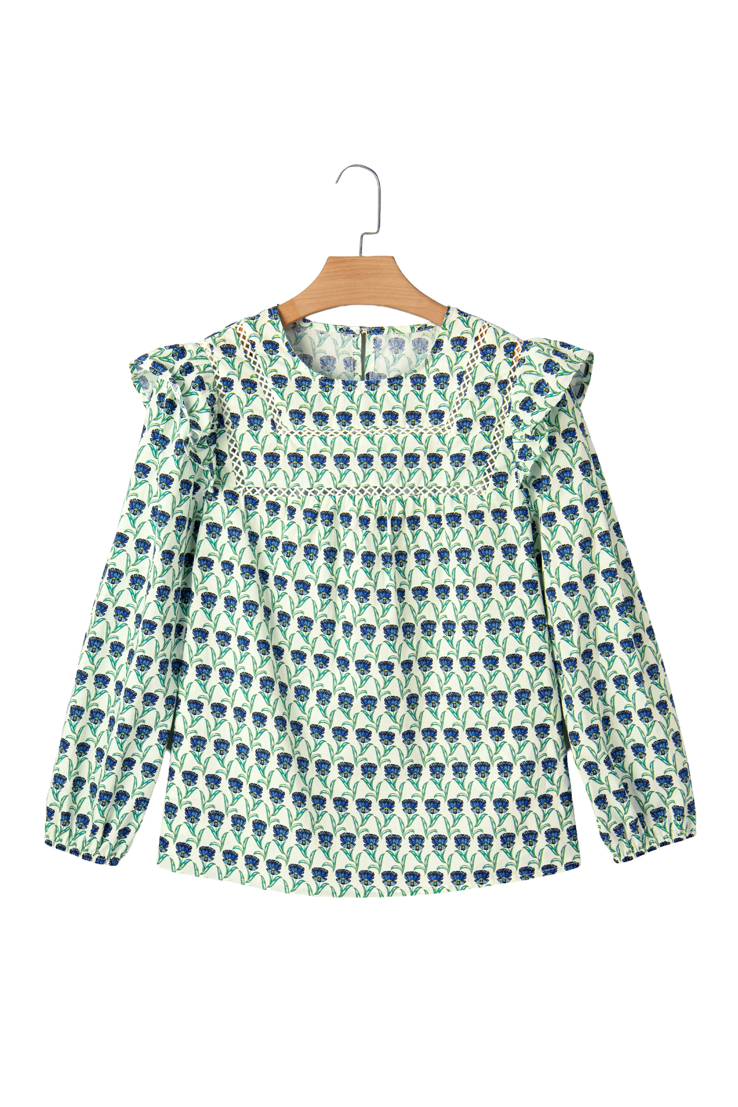 Women’s Green Floral Print Blouse with Lace Detail – Ideal for Casual Spring Outings