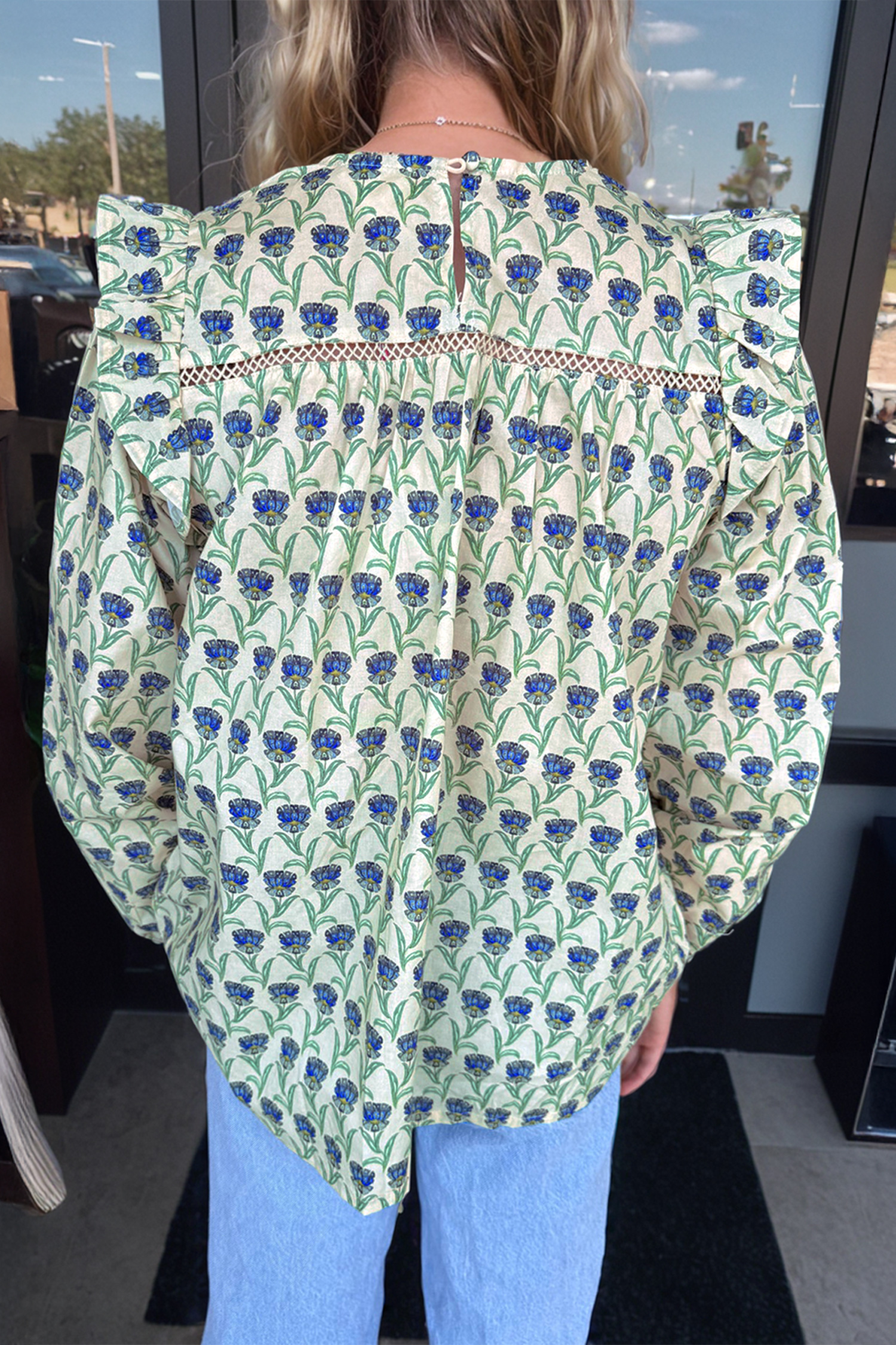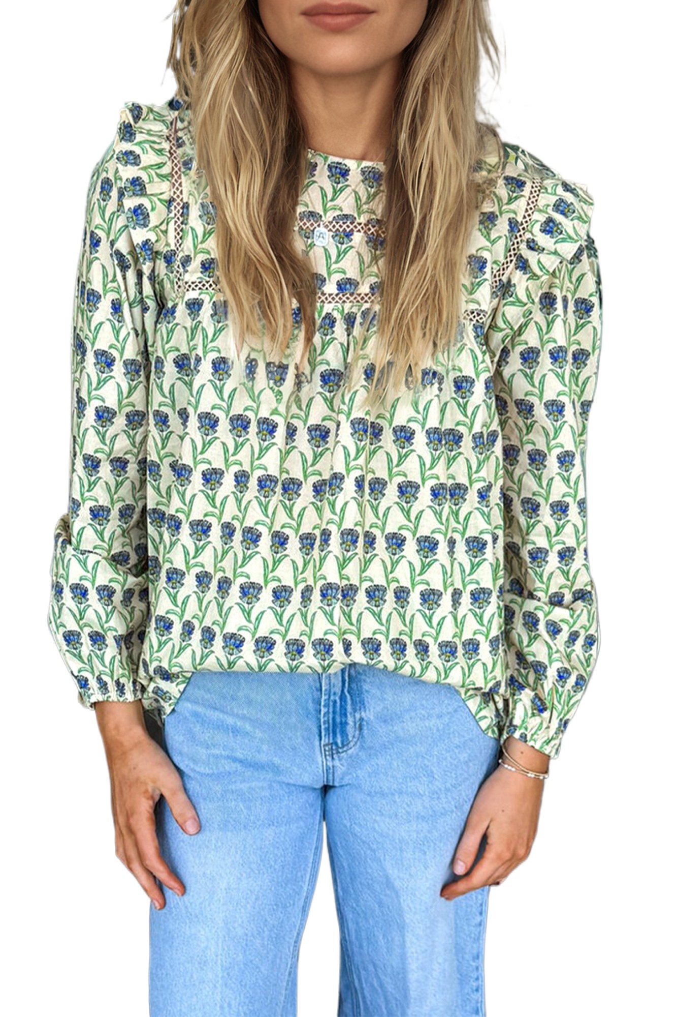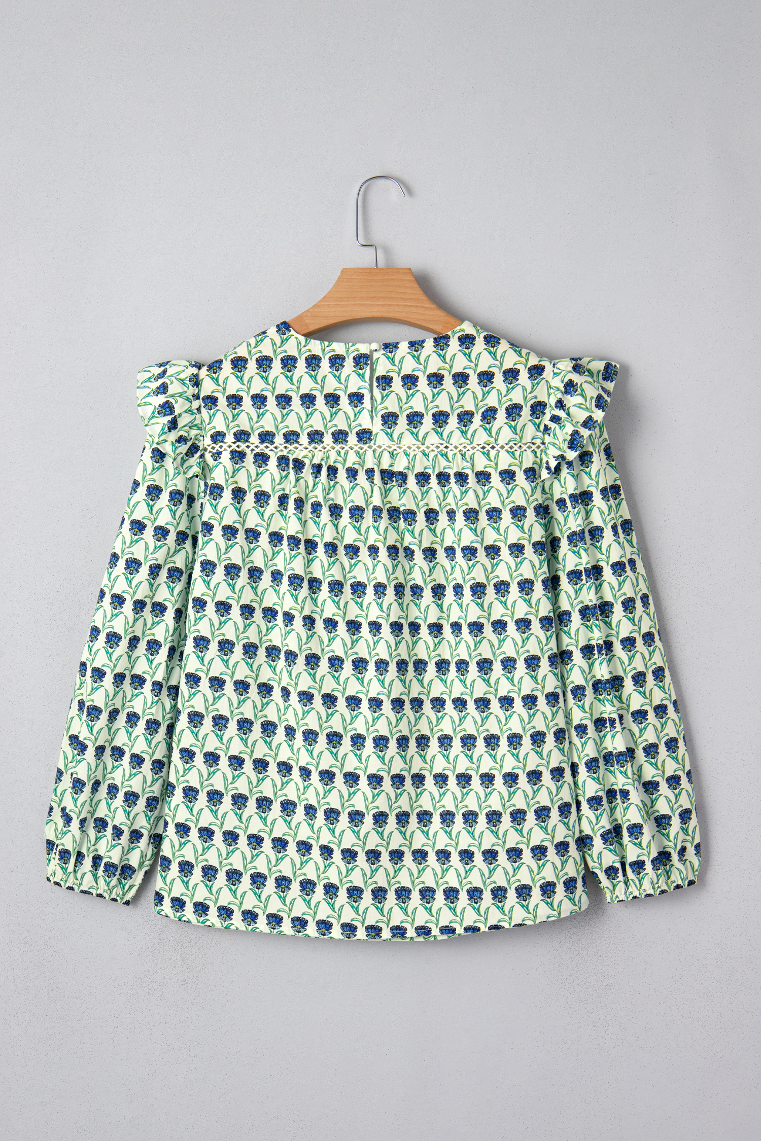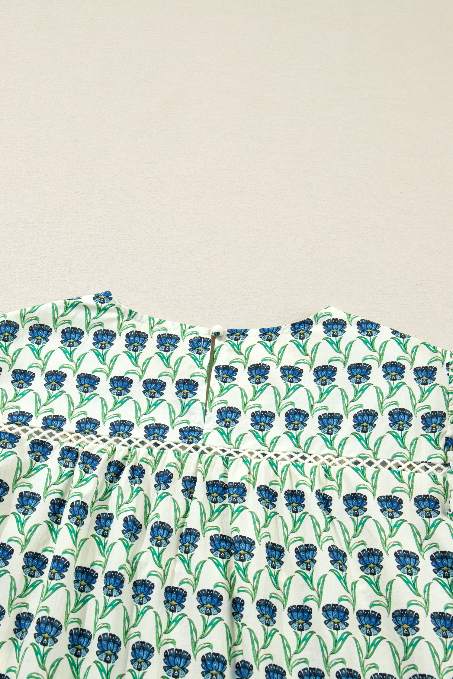 Women’s Green Floral Print Blouse with Lace Detail – Ideal for Casual Spring Outings