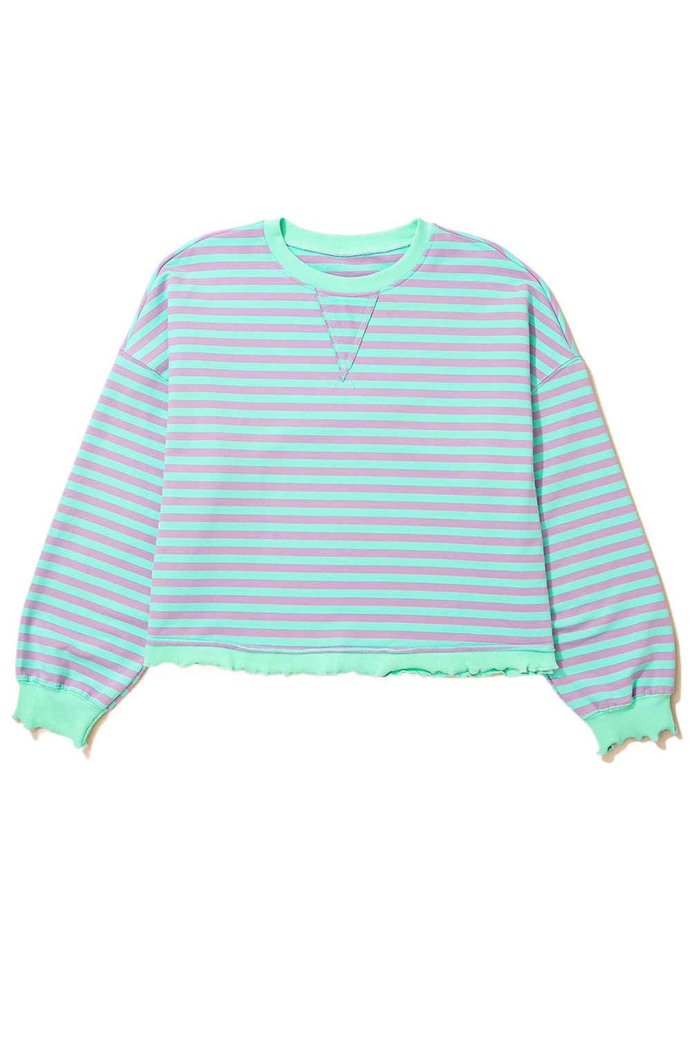 Women’s Green Stripe Oversize Sweatshirt with Exposed Seams and Ribbed Trim – Casual Daily Wear for Fall Comfort