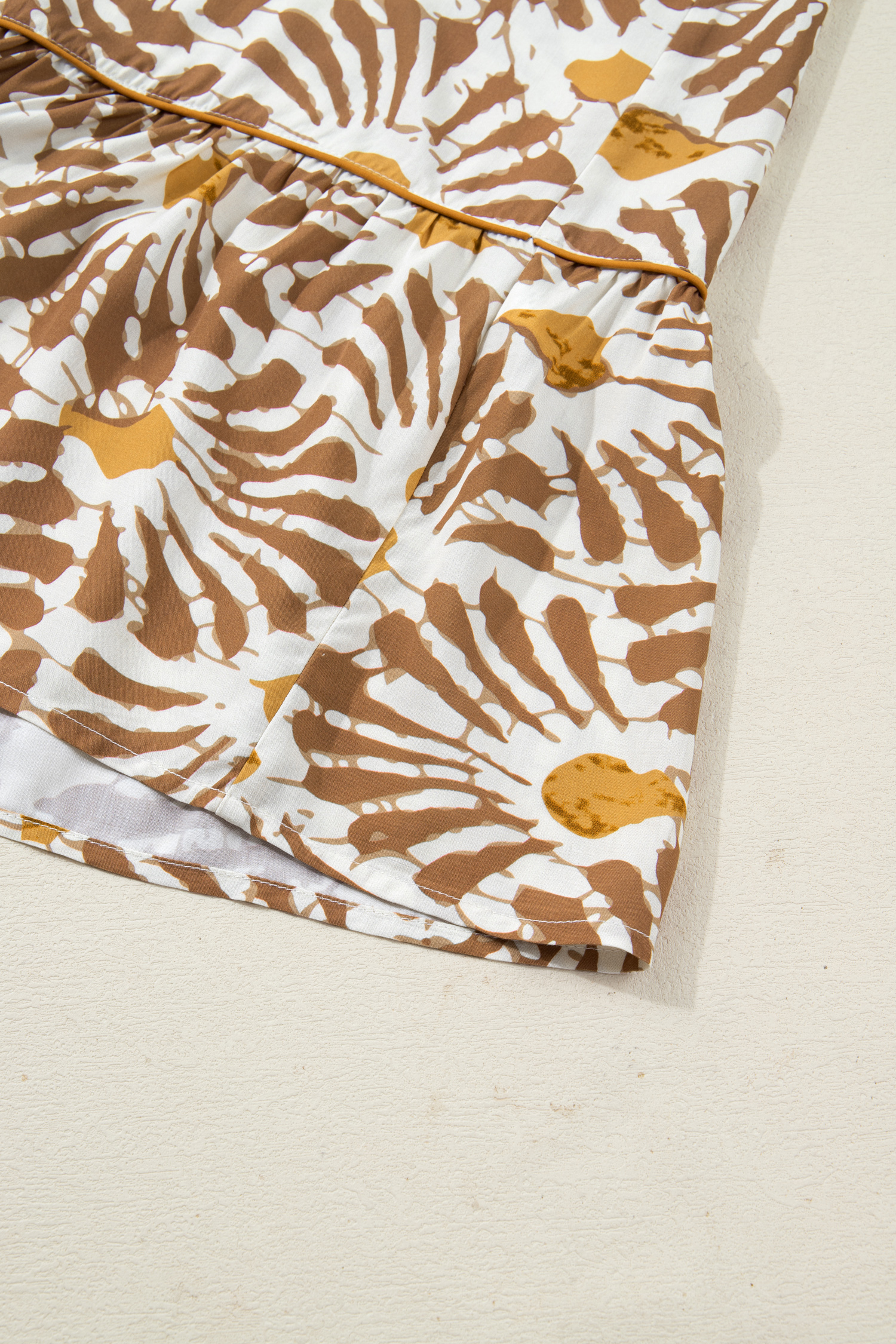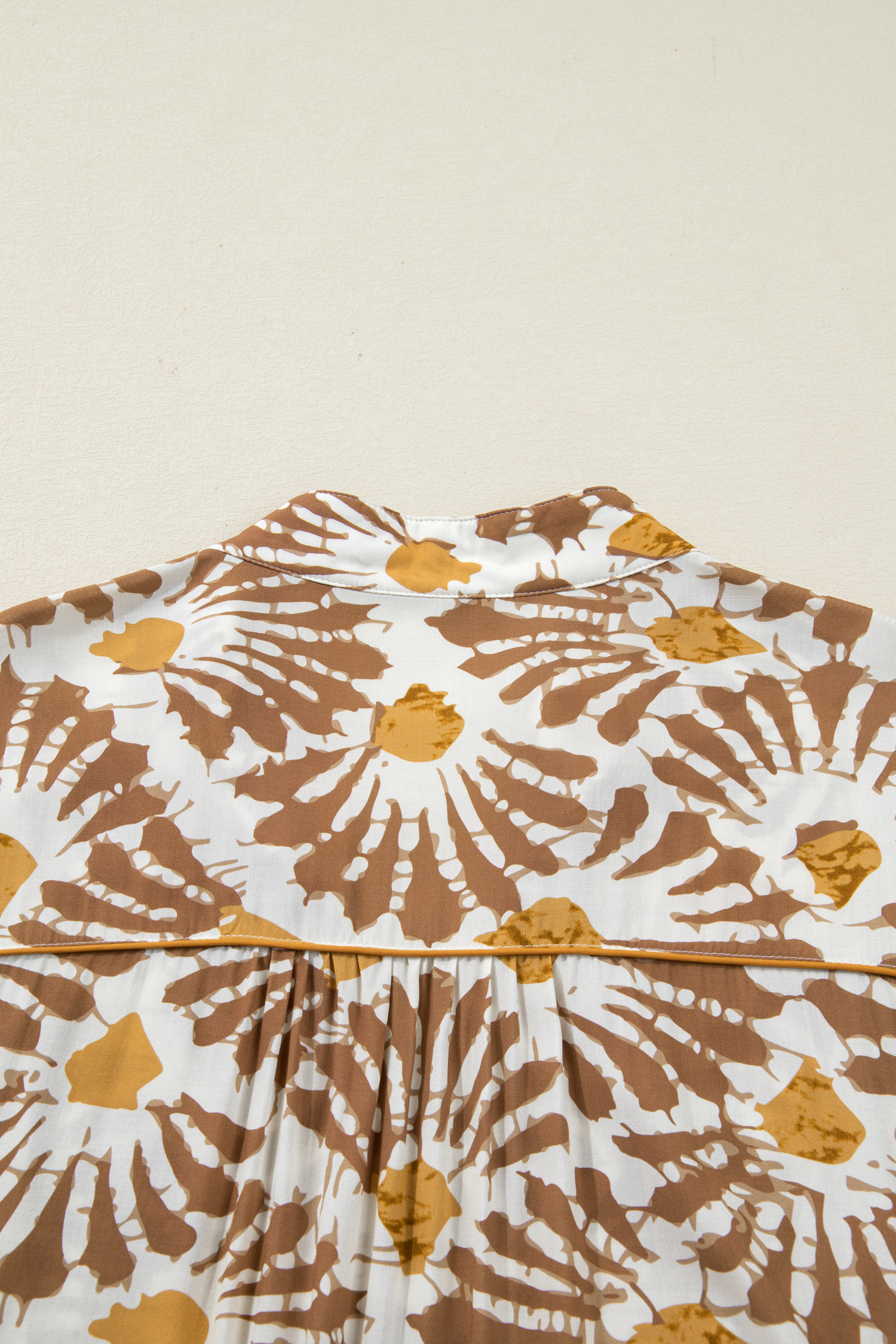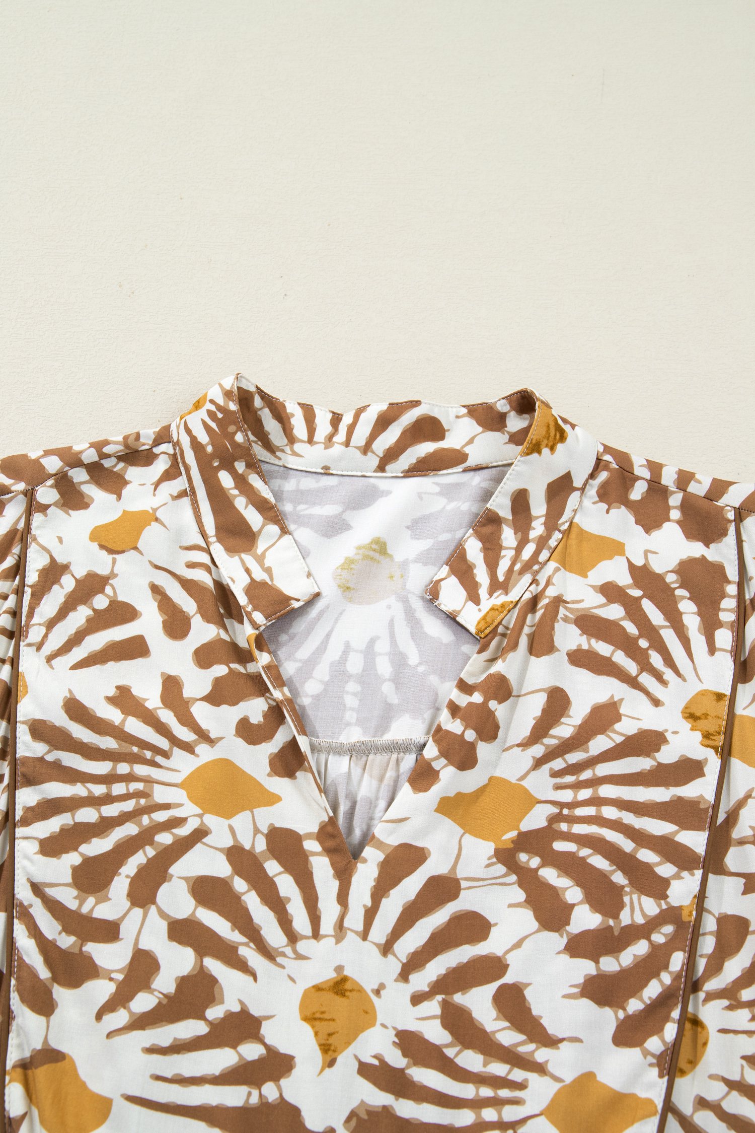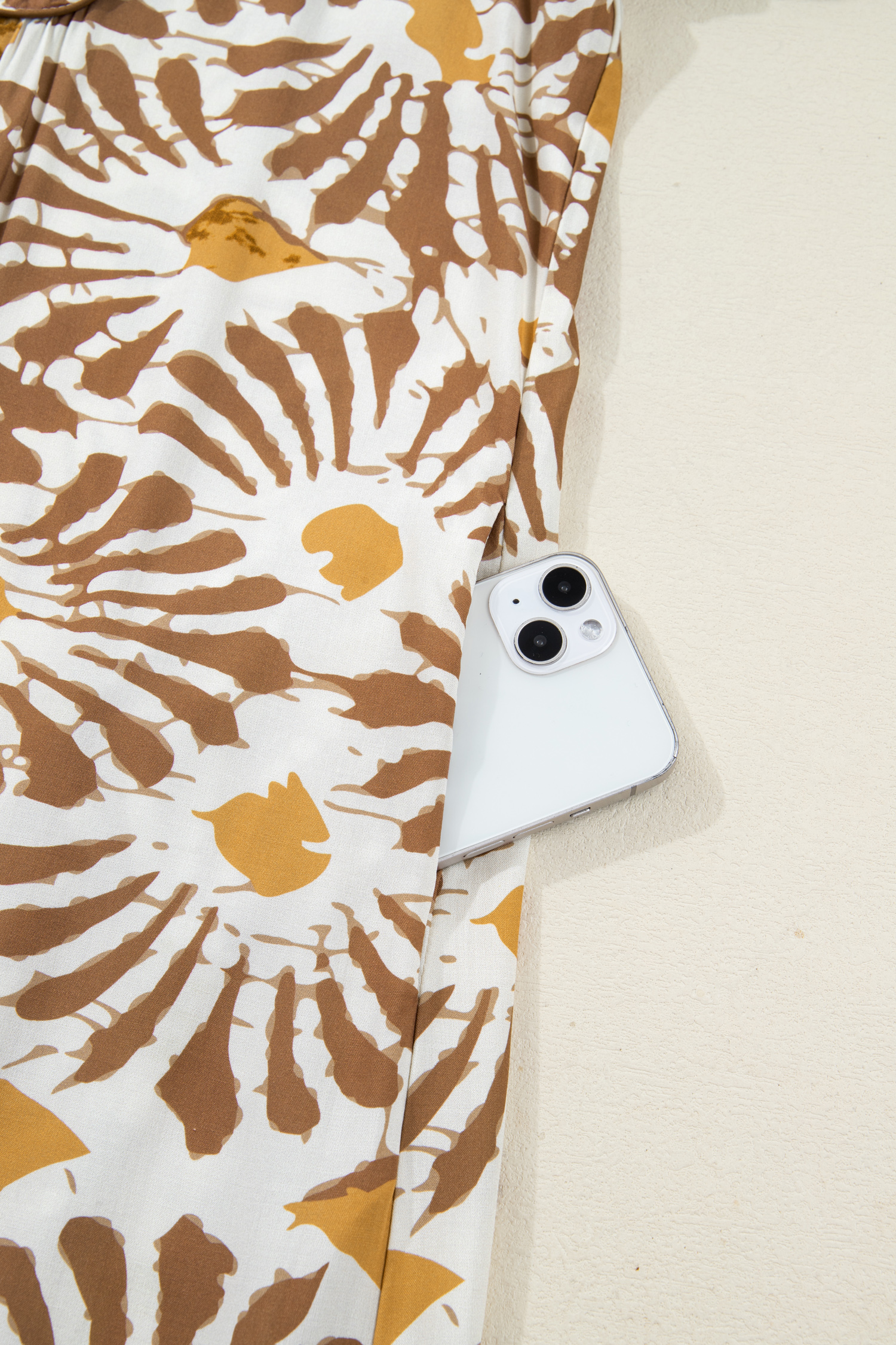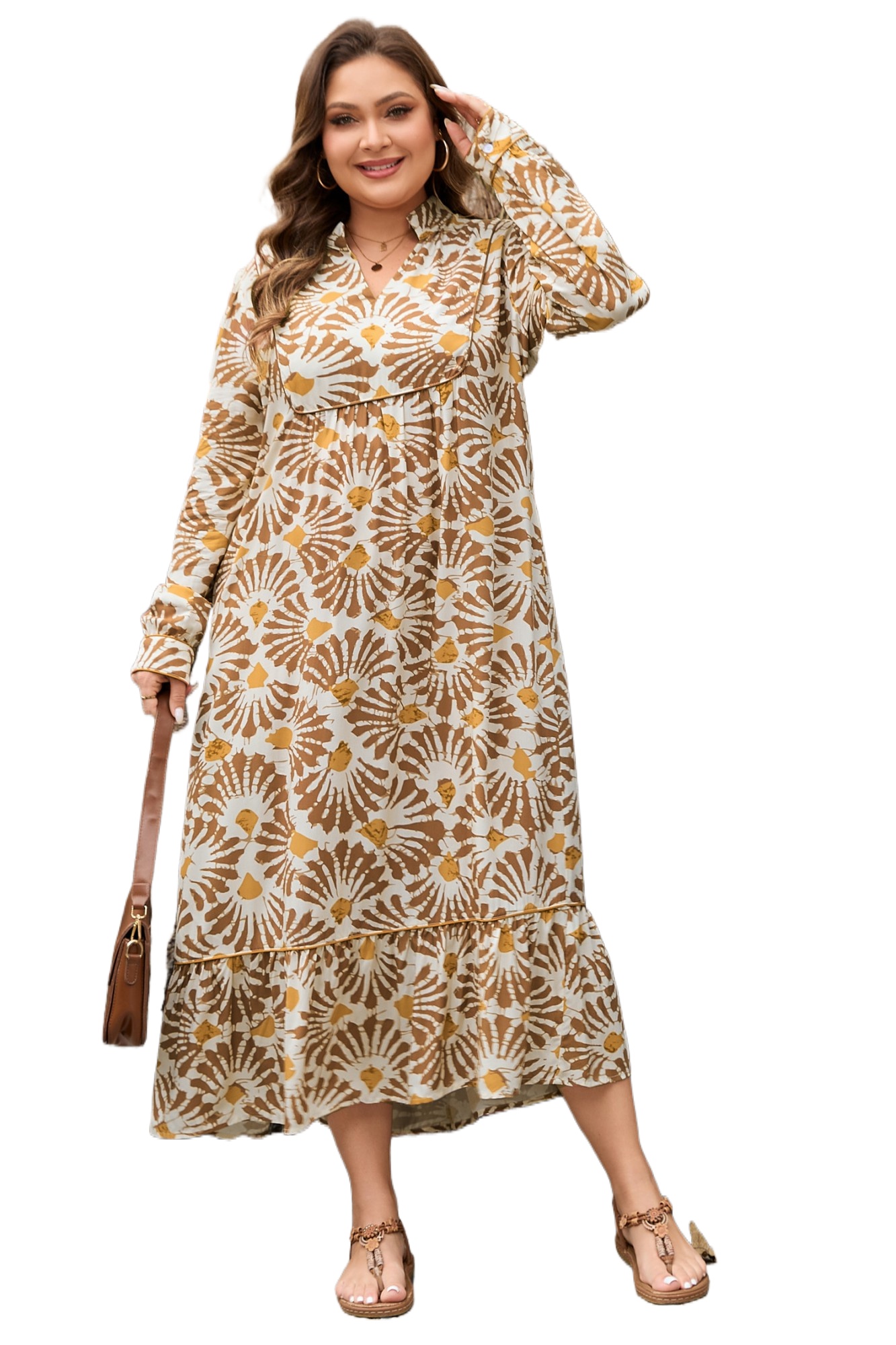 Women’s Khaki Abstract Plant Print Maxi Dress – Bohemian Style for Everyday Elegance