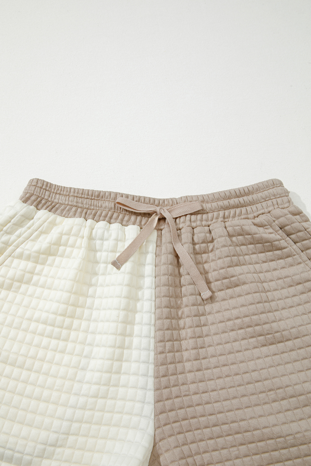 Women’s Khaki Color Block Long Sleeve Top & Short Set – Casual Fall Ensemble for Daily Wear