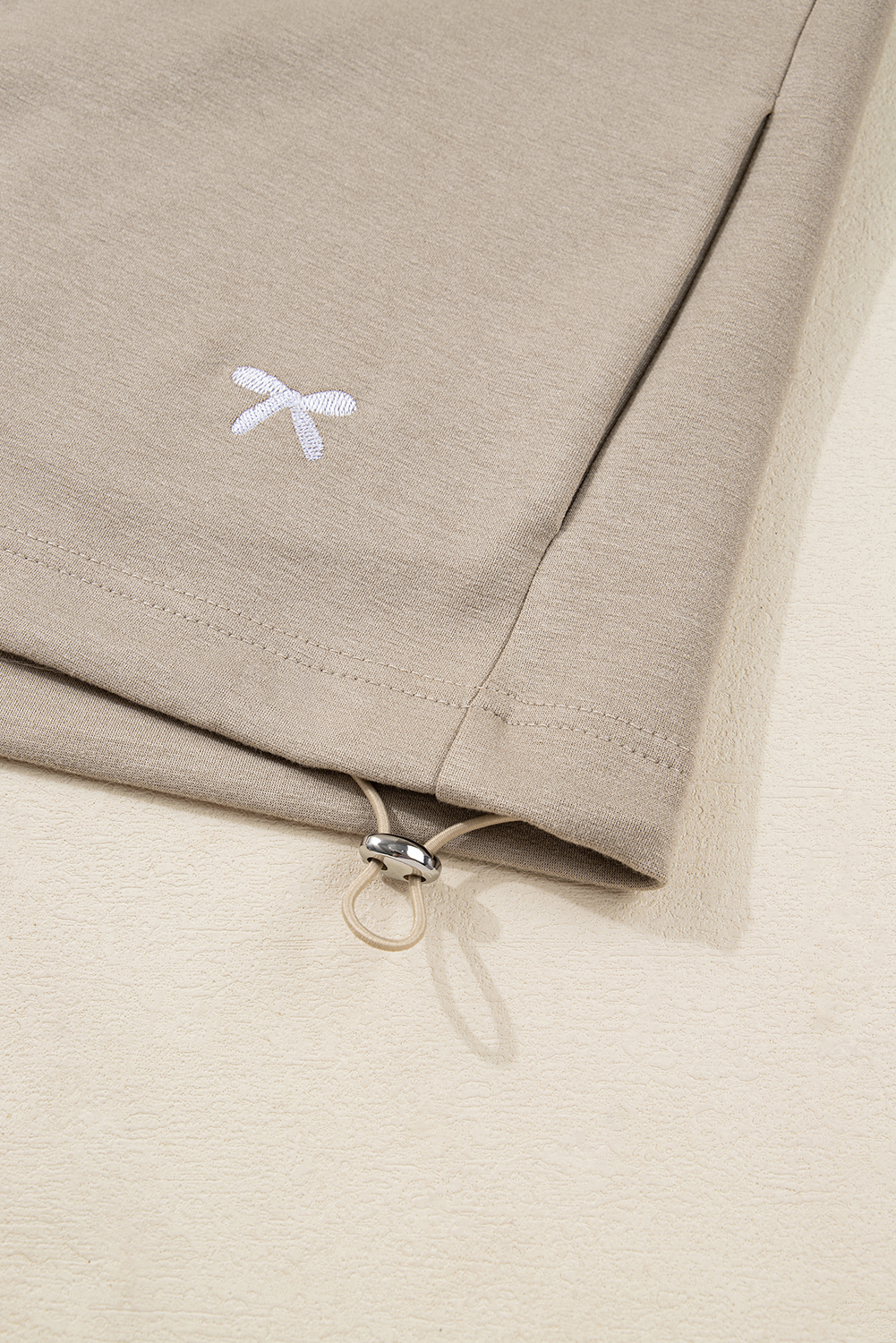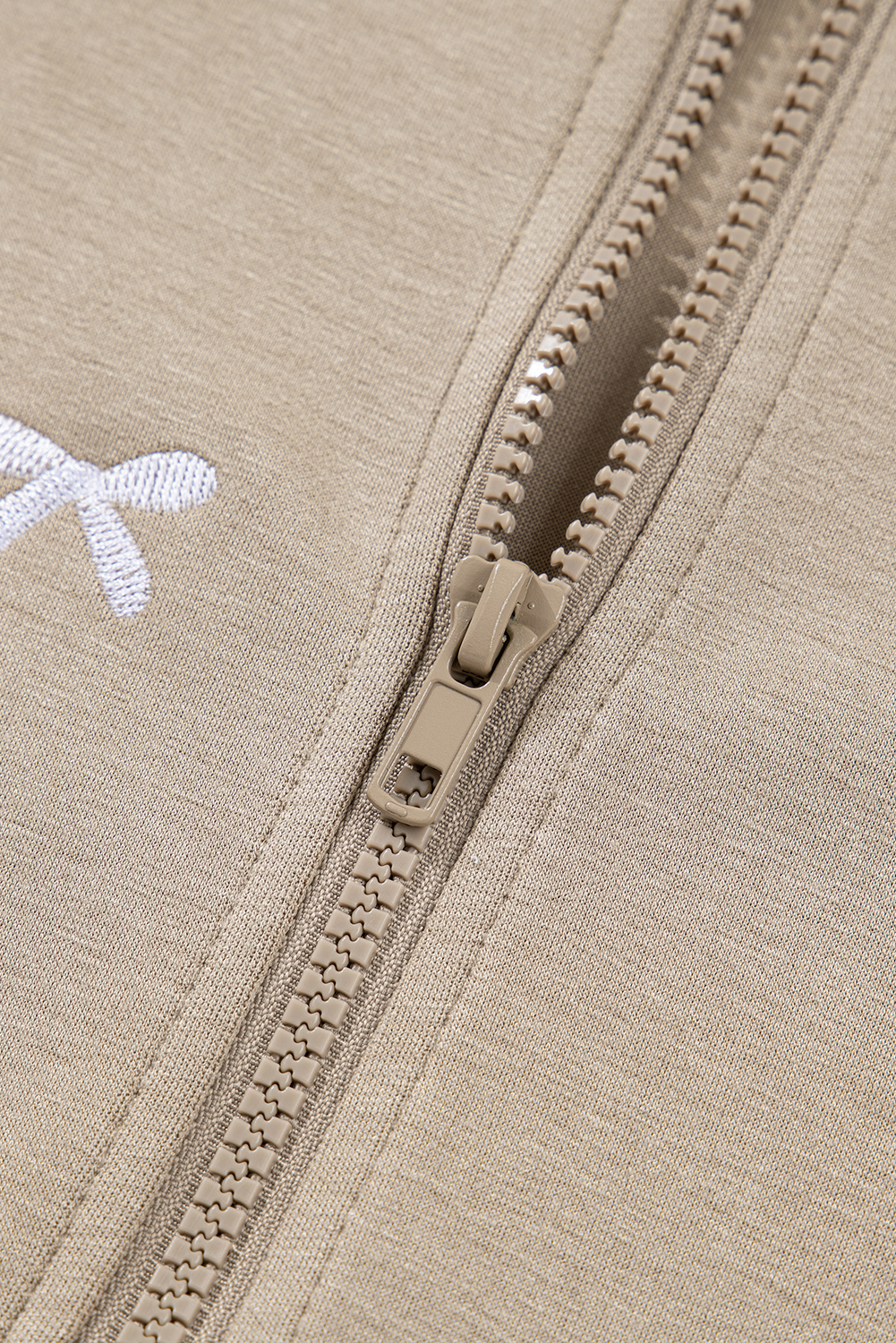 Women’s Khaki Goat Contrast Bow Embroidered Zip Up Hoodie – Casual Fall Essential