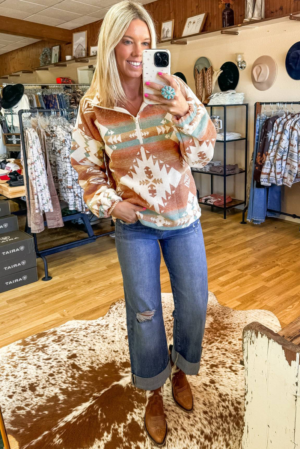 2. Unique Western Print: The eye-catching Aztec print adds a stylish and trendy flair to your casual wardrobe, making this sweatshirt a standout piece for daily wear.
